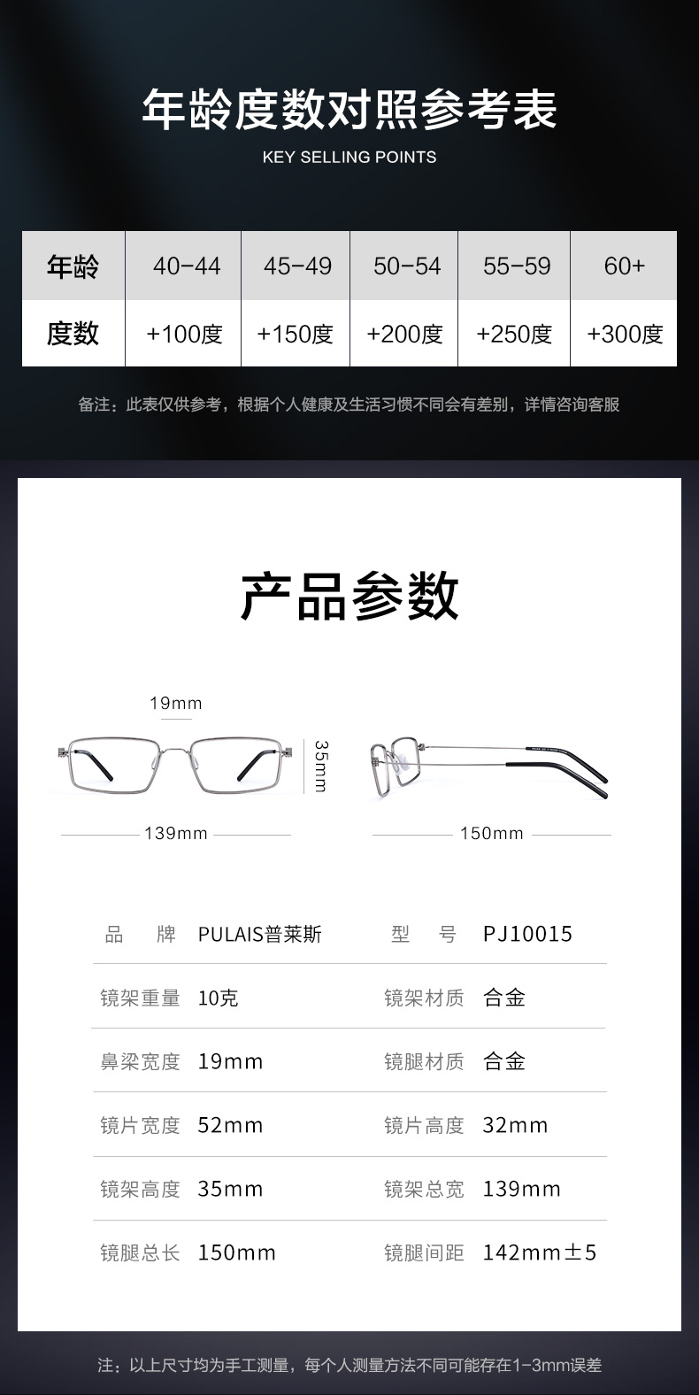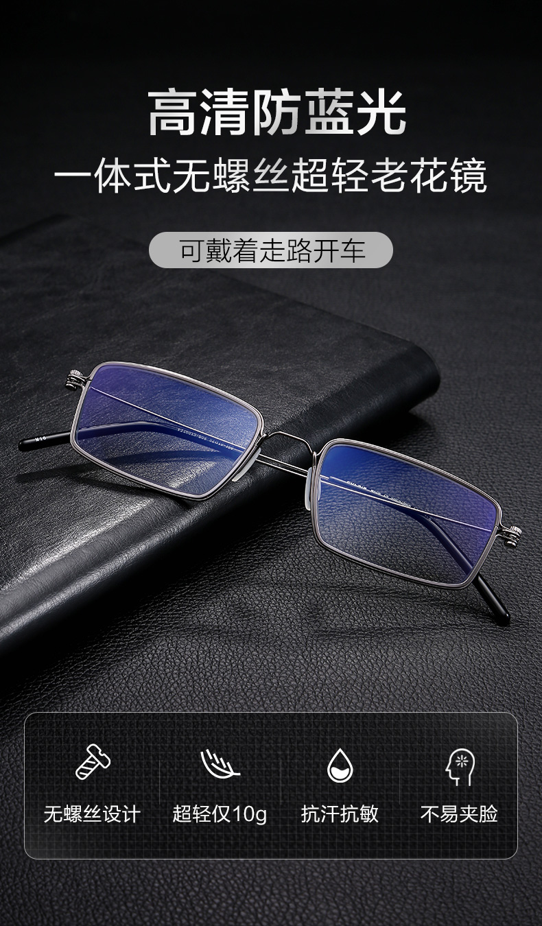 【特价秒杀款】普莱斯PJ10015 老花镜 一体式无螺丝超轻老花镜 大脸不夹小脸不掉 合金材质 三色可选