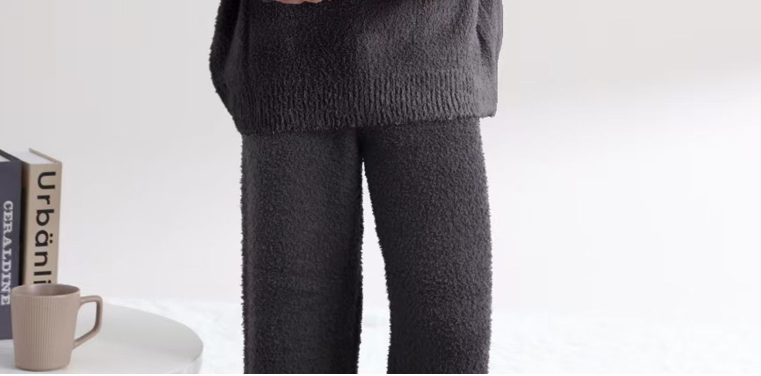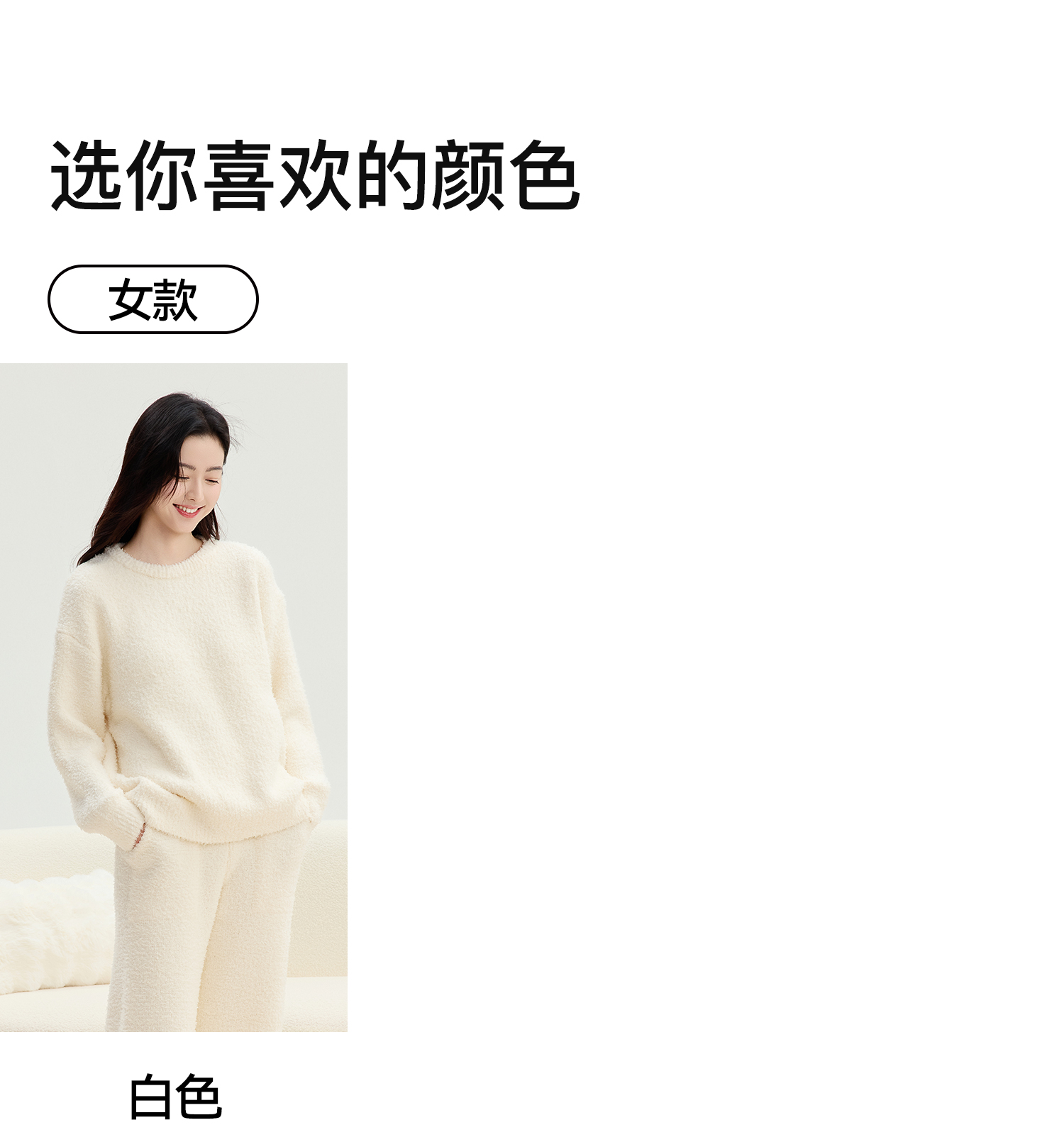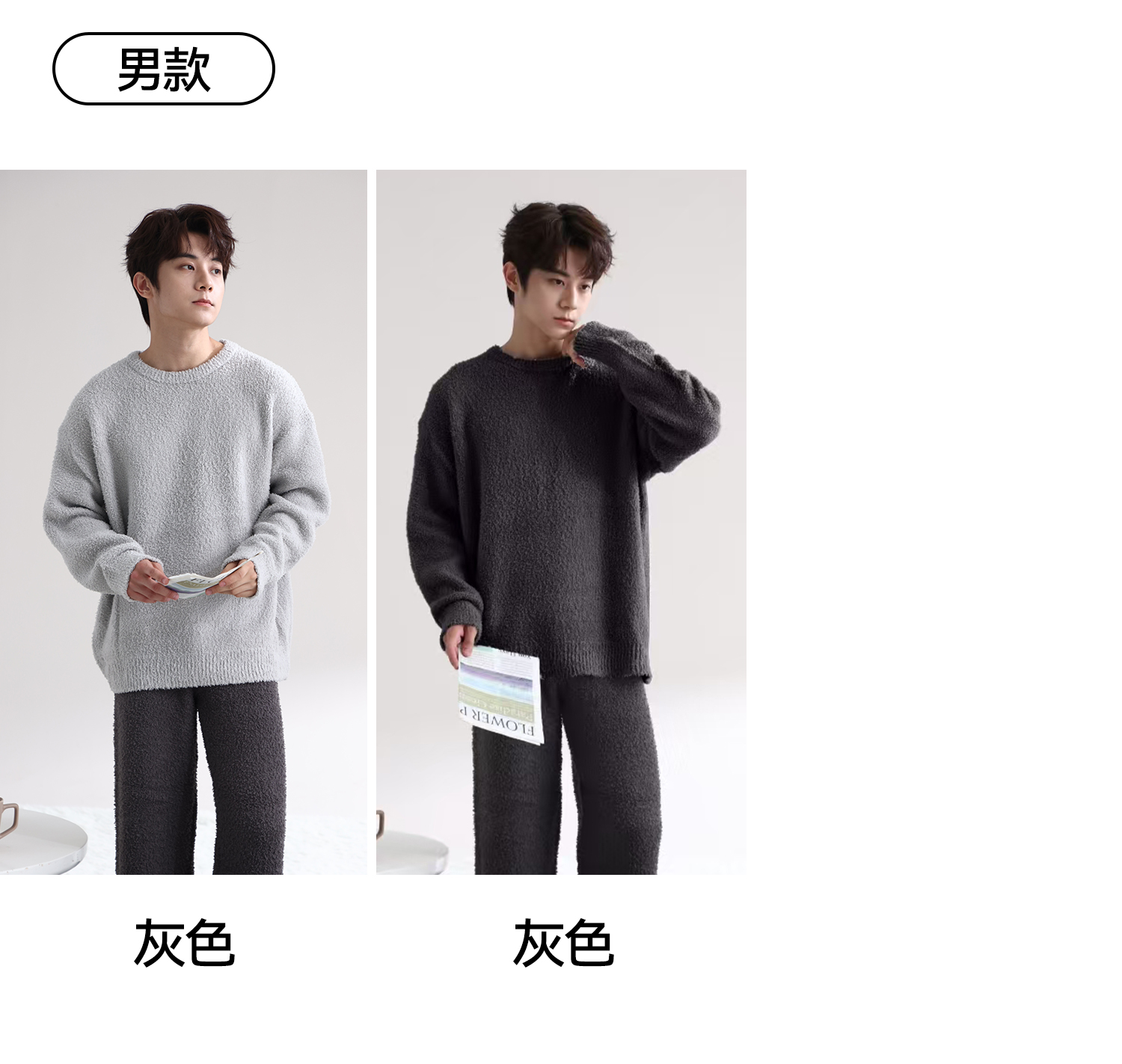 内茵丨情侣款半边绒纯色保暖家居服套装