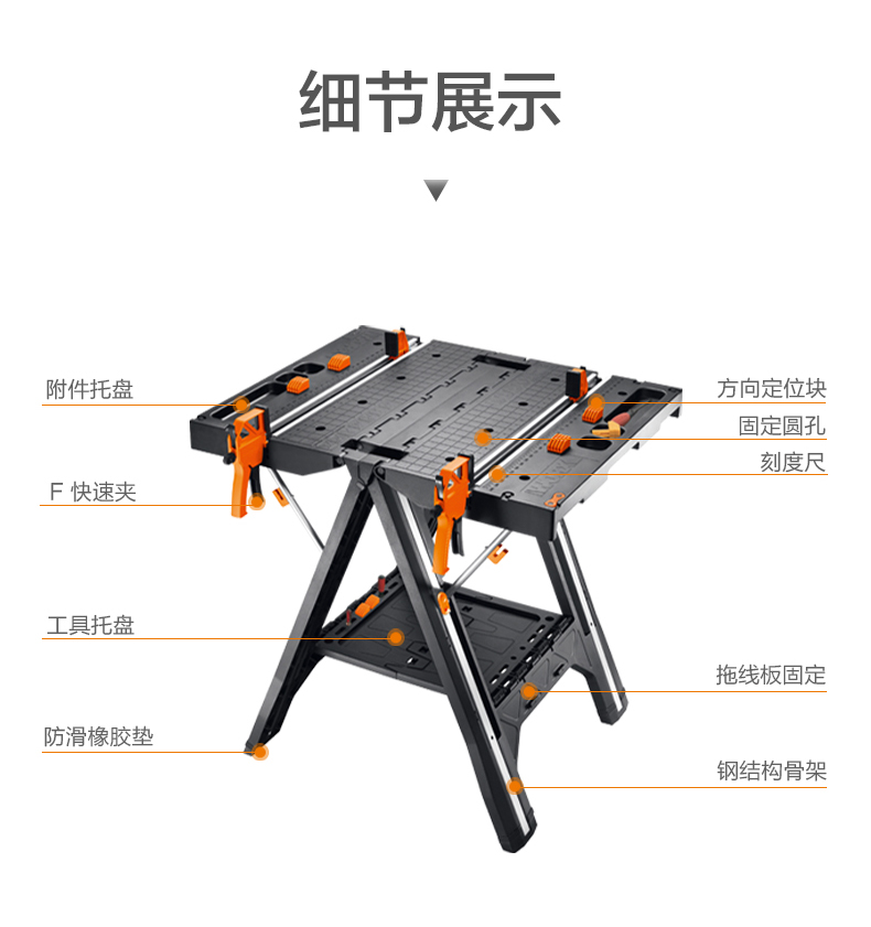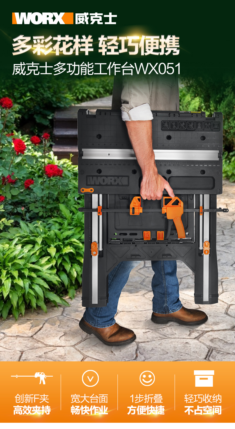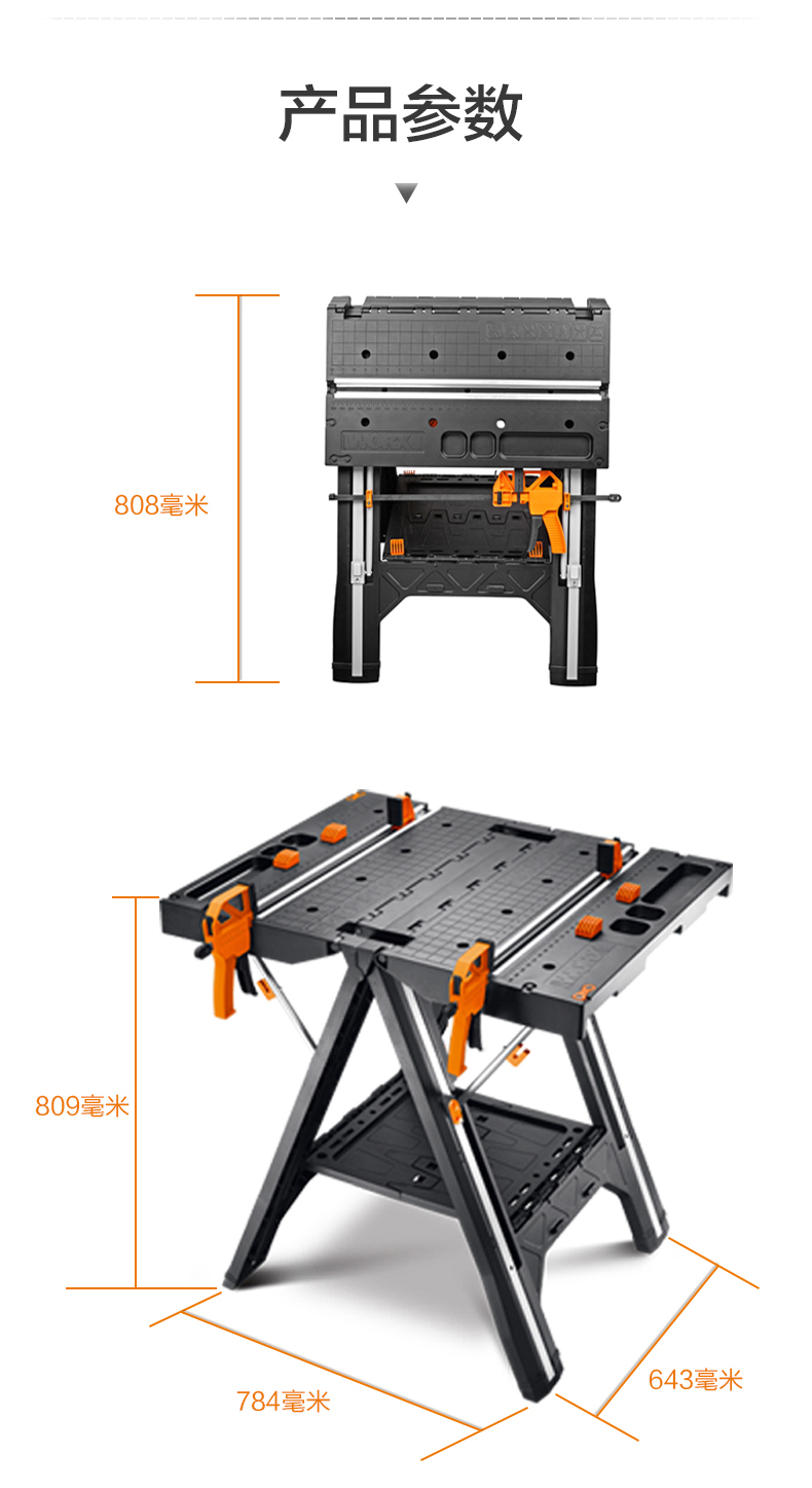 威克士多功能工作工具台WX051移动便携式木工操作台锯台折叠工具