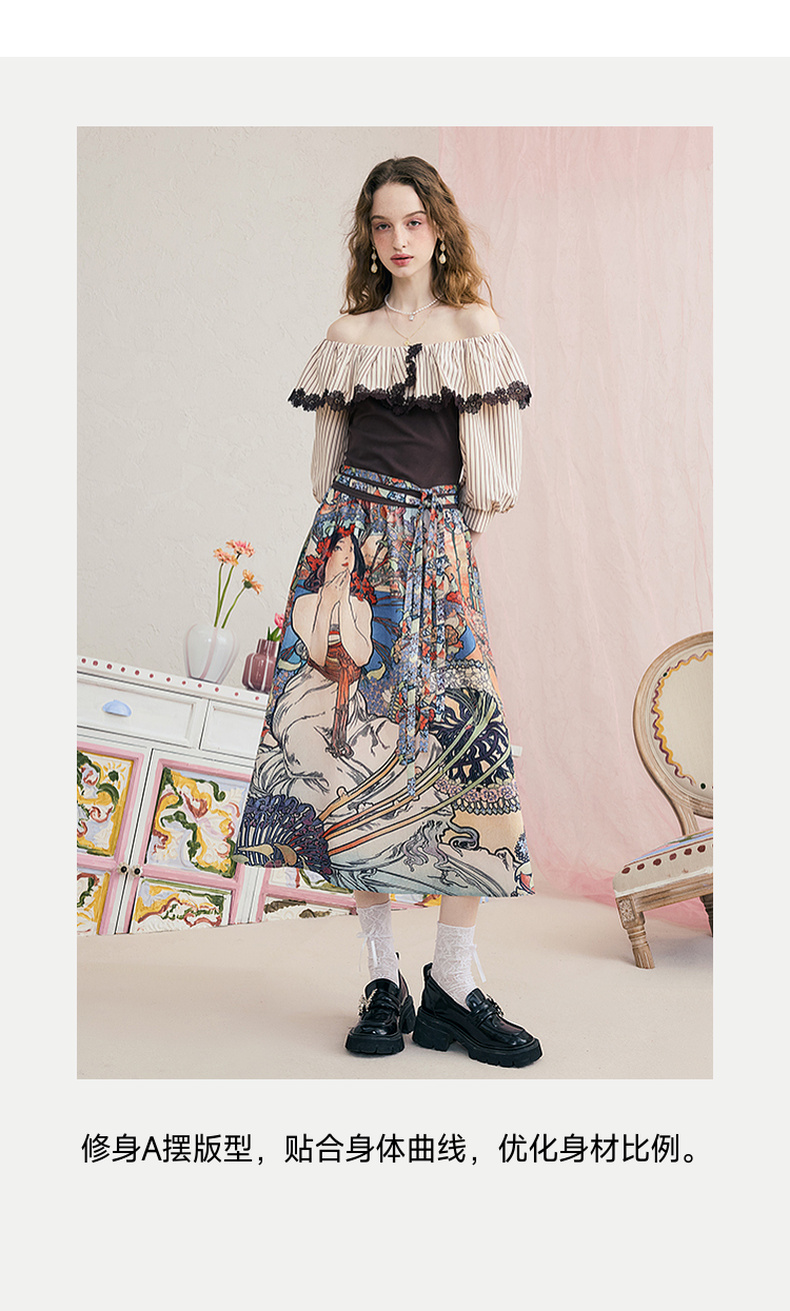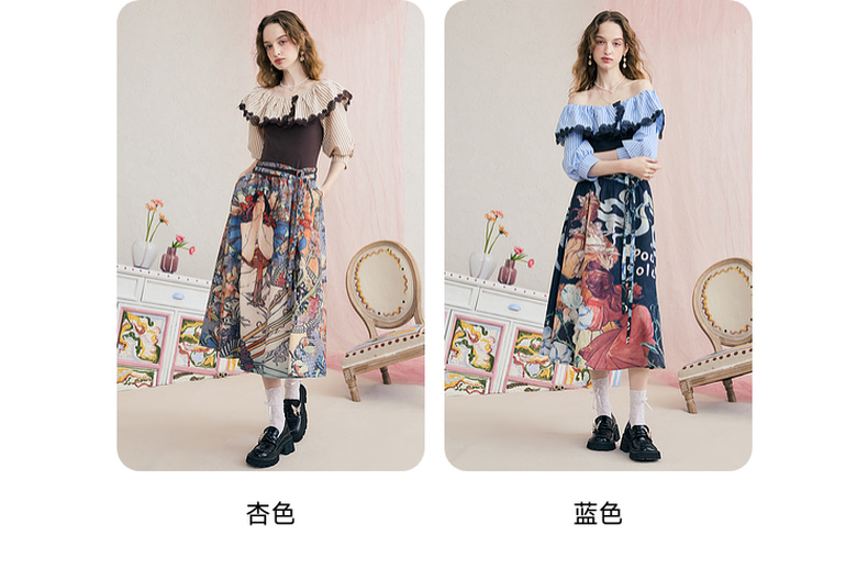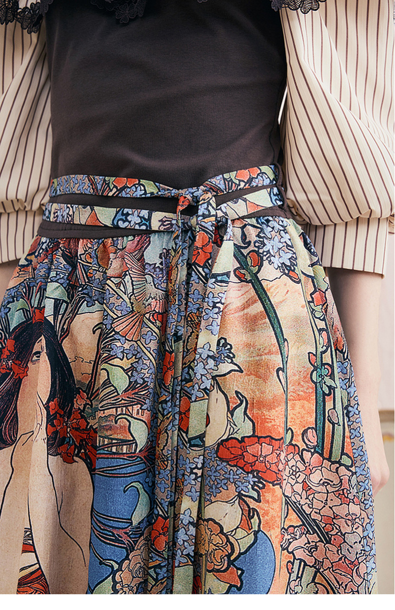 两三事自在如风 春季新款复古公主袖褶皱v领两件套连衣裙长裙