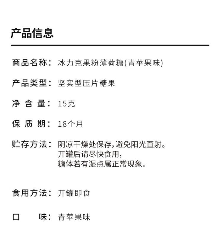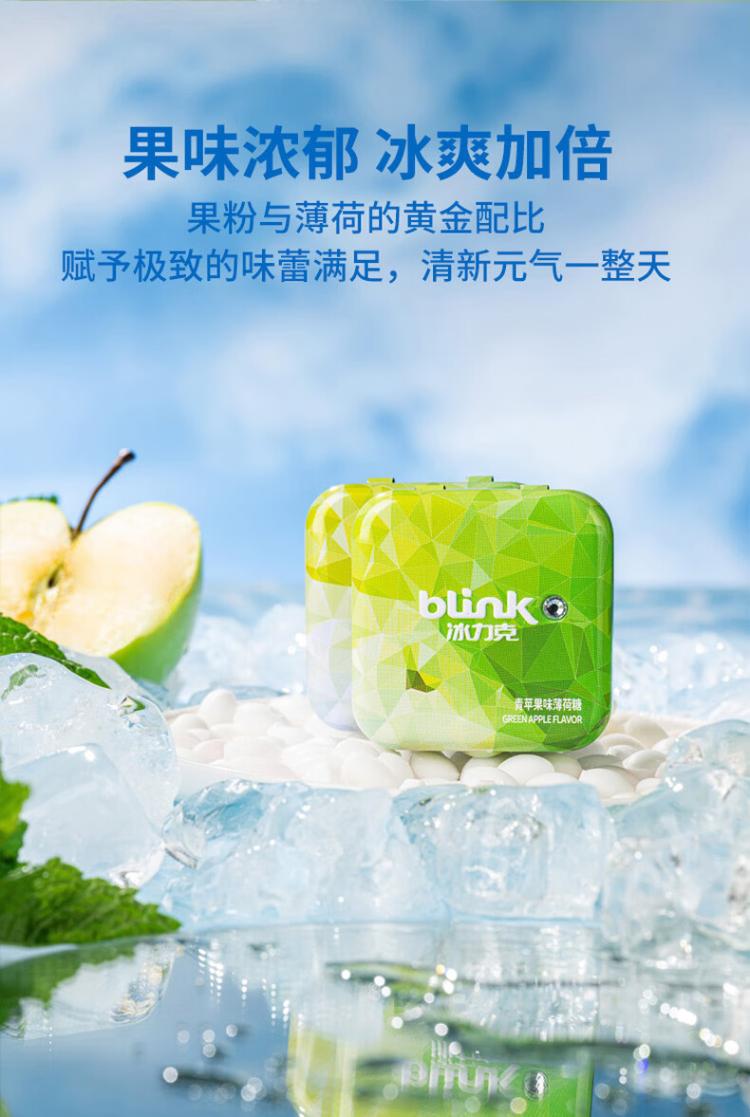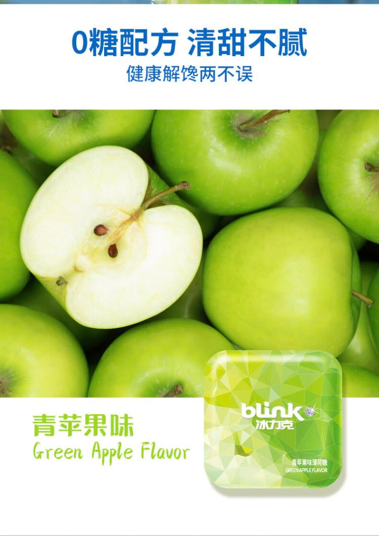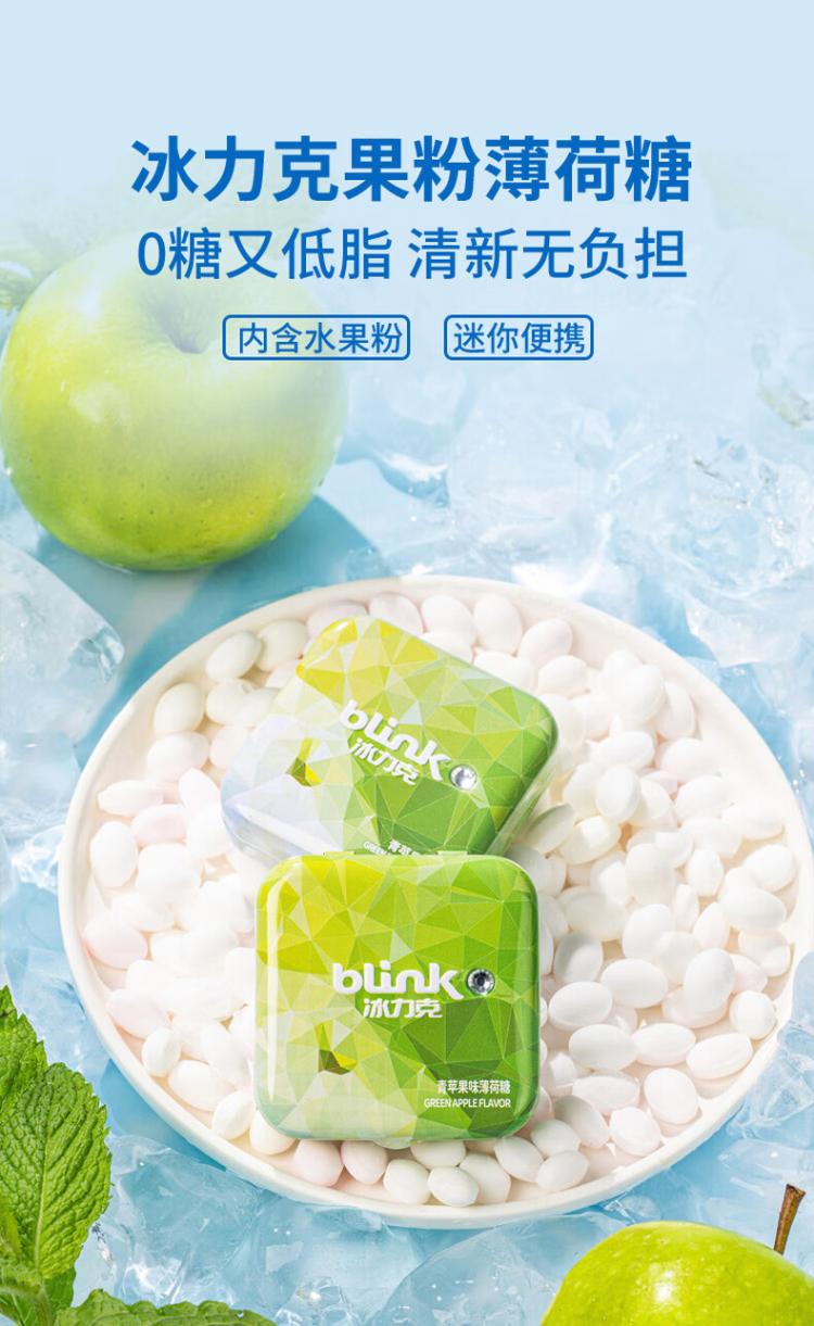 冰力克(Blink)水果果粉无糖薄荷糖 青苹果15g/2盒 清口糖味