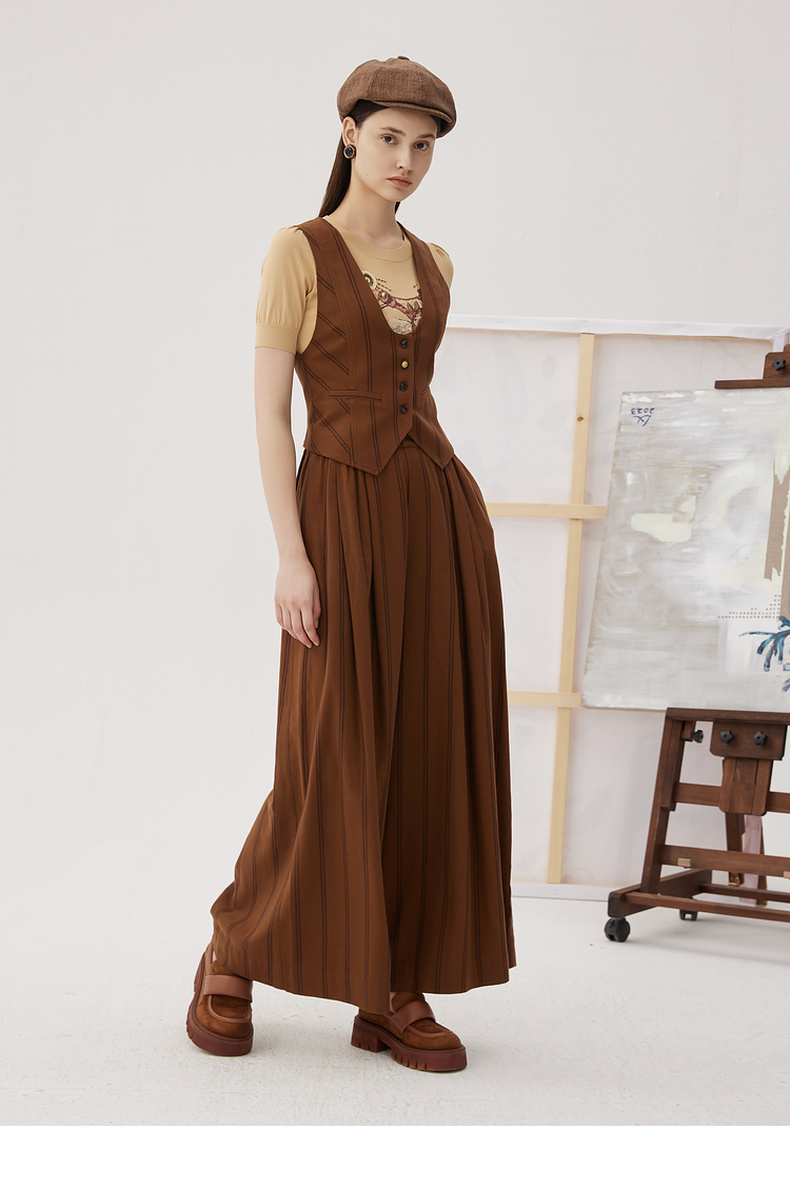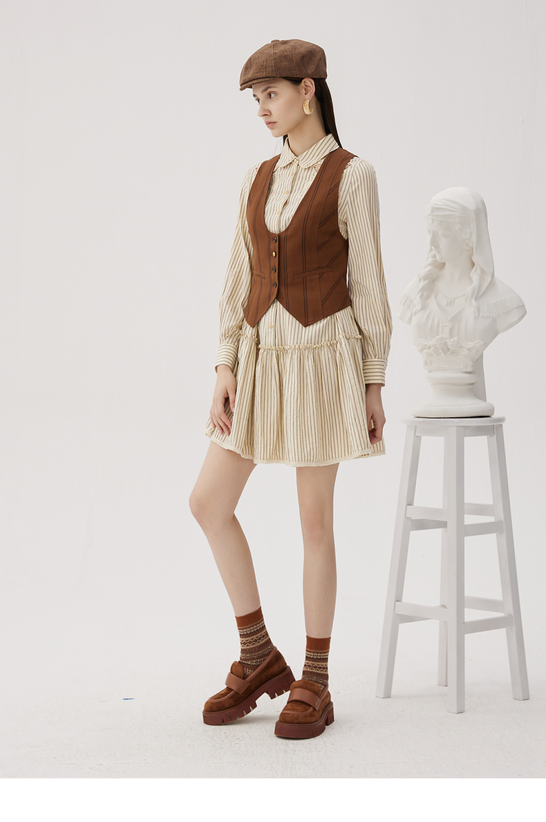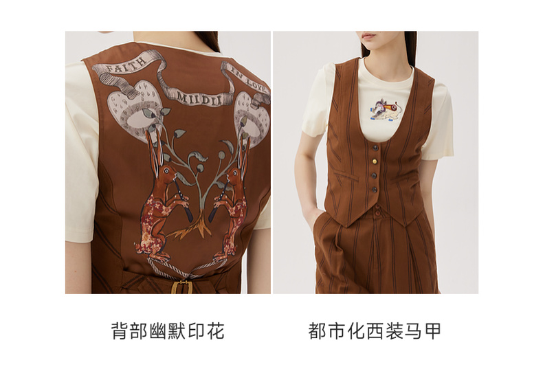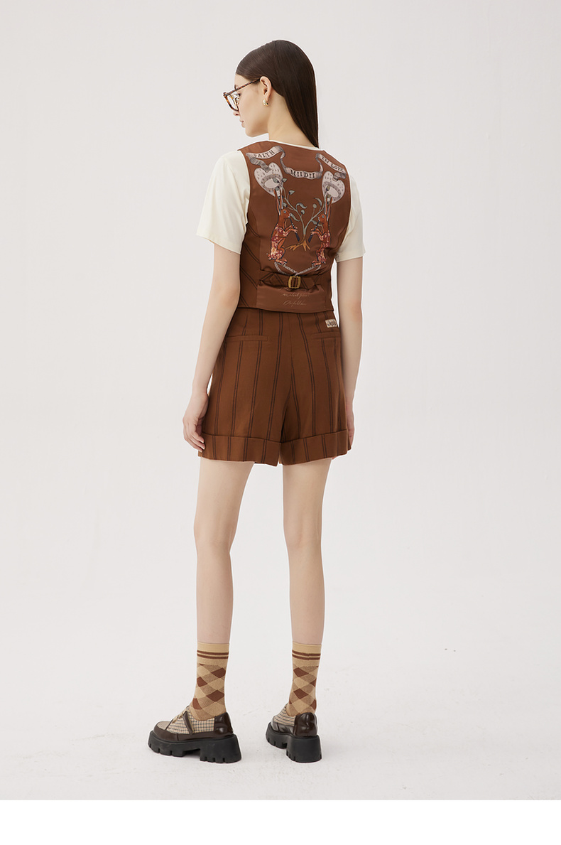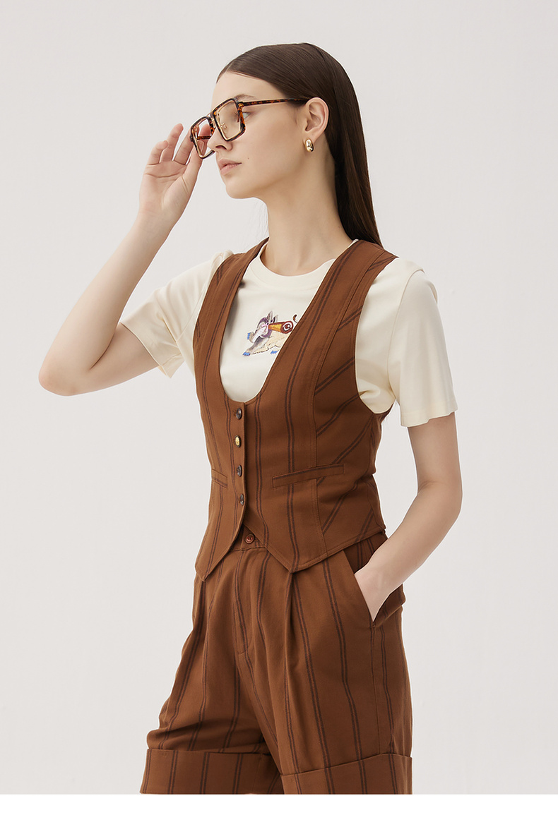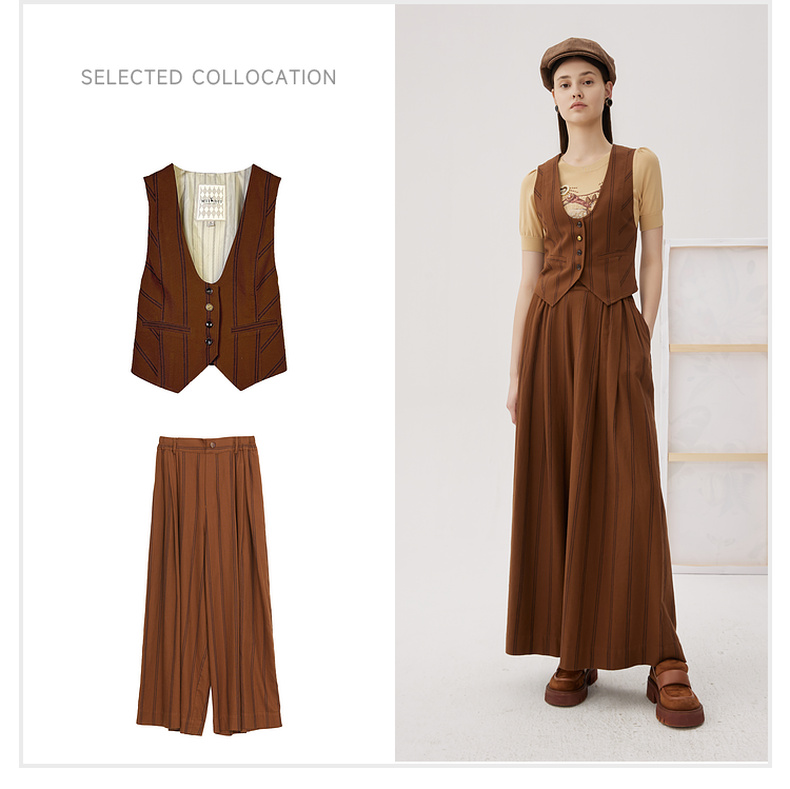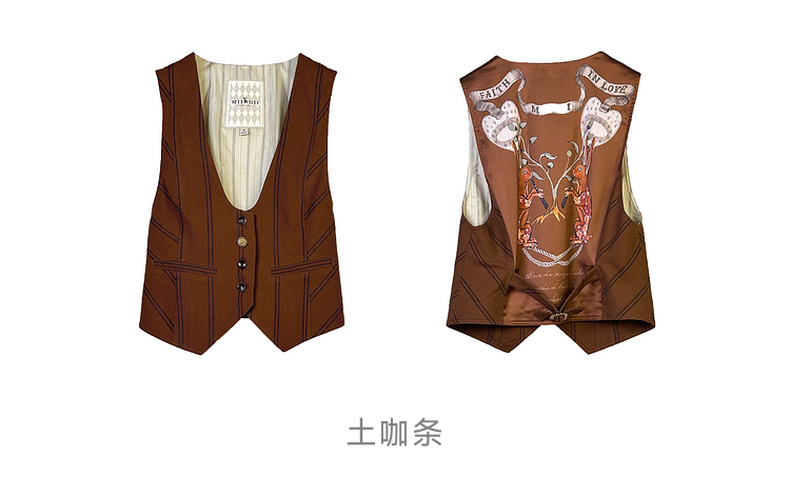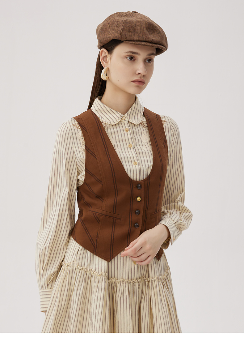 谜底西装马甲女2024秋款复古优雅后背绣花条纹修身马夹243MM1052