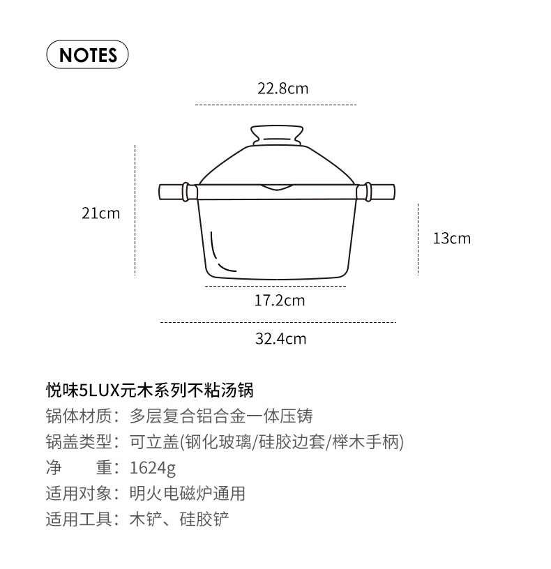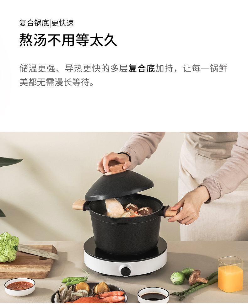 悦味大容量汤锅不粘锅 家用高汤炖锅拉面锅 电磁炉闷烧煮锅油炸锅