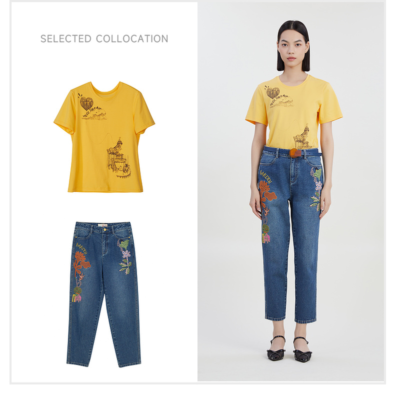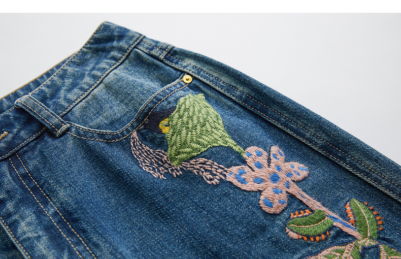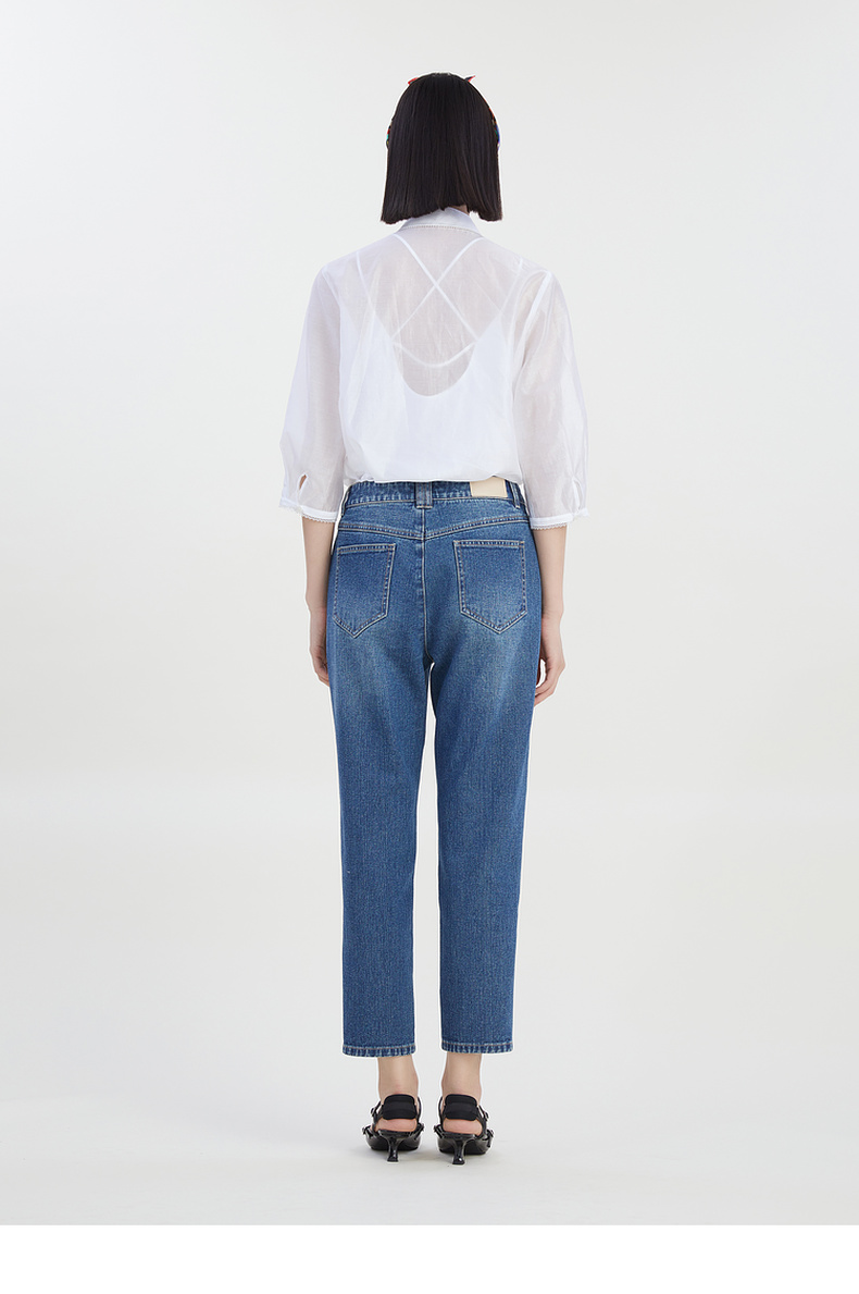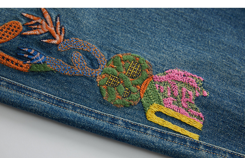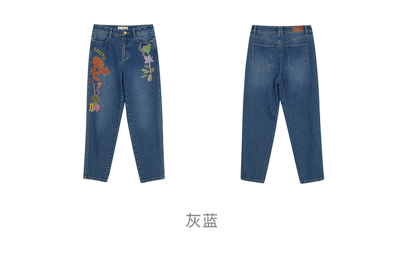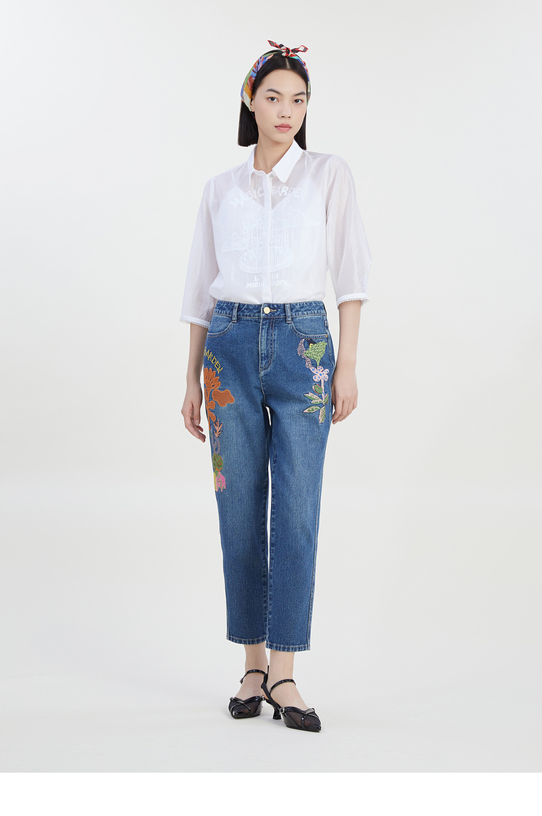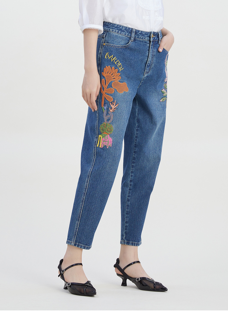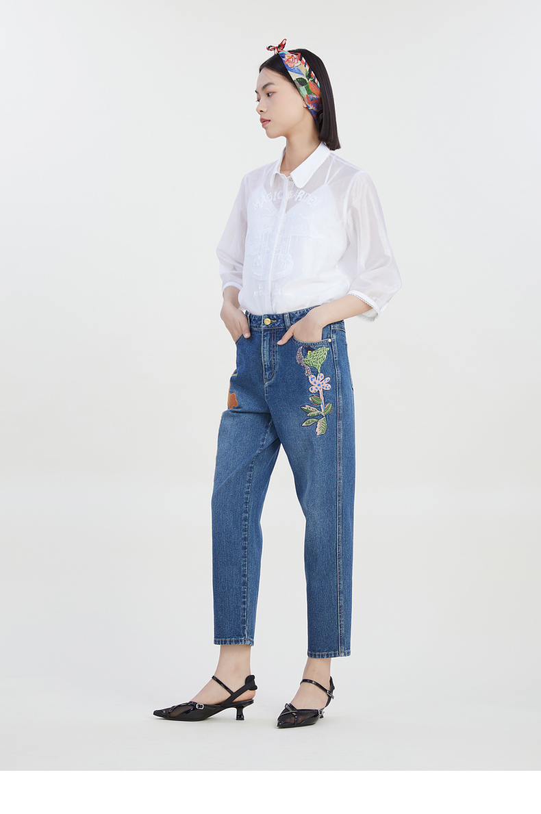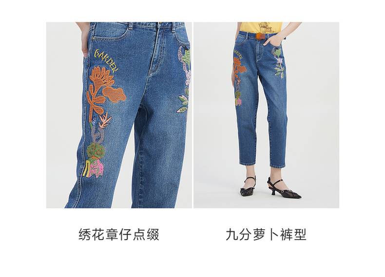 谜底2023夏季新款复古特色绣花萝卜裤百搭九分牛仔裤女232MK0684