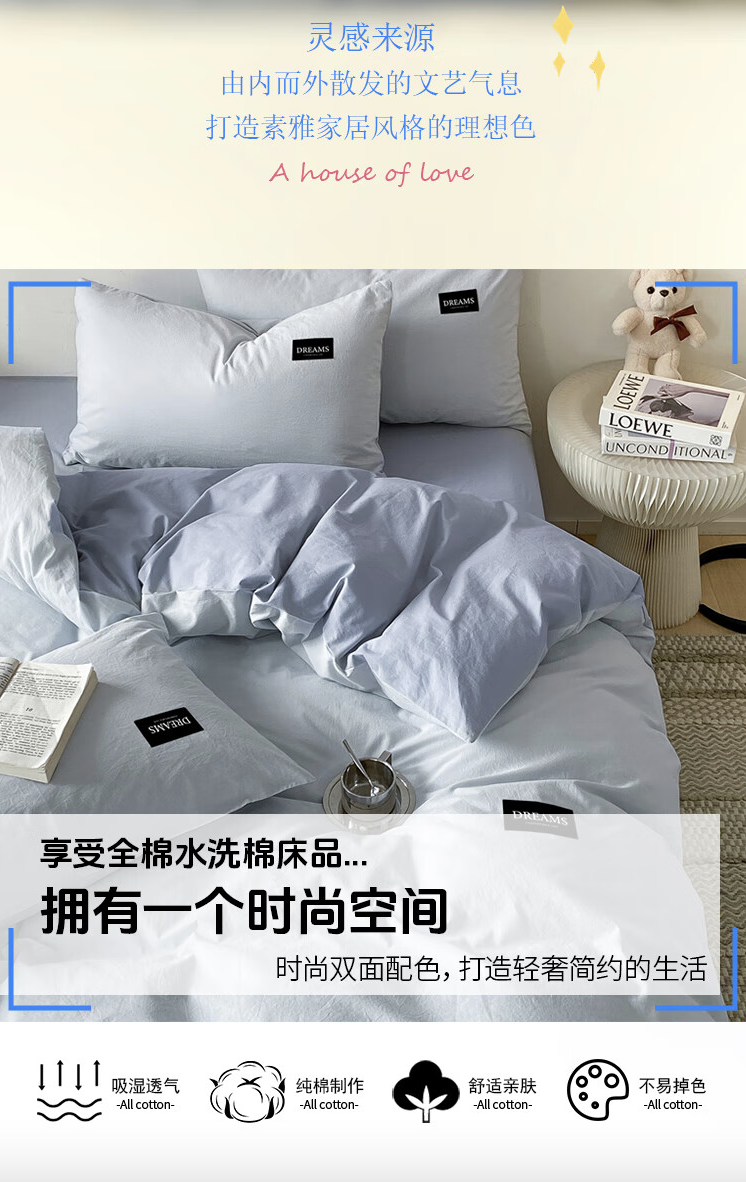 无印良品全棉四件套床上用品100%纯棉床单被套200*230cm1.5/1.8米床