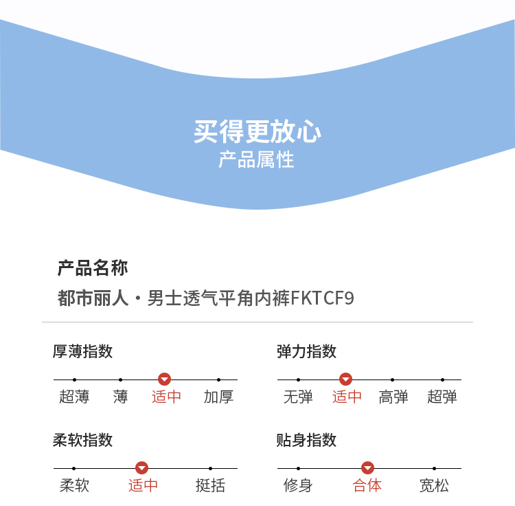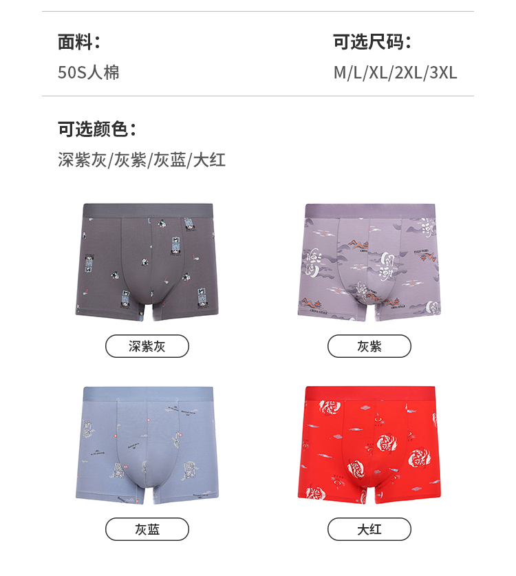 都市丽人都市锋尚内裤潮流时尚平角裤50S人棉男士内裤FKTCF9