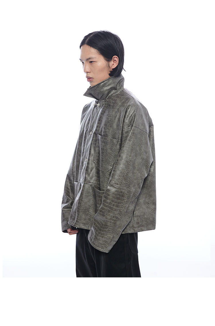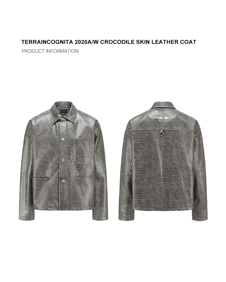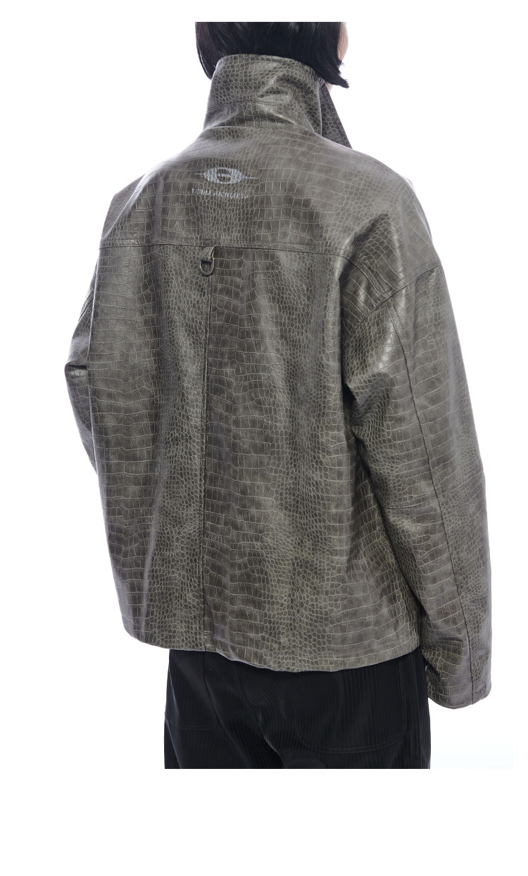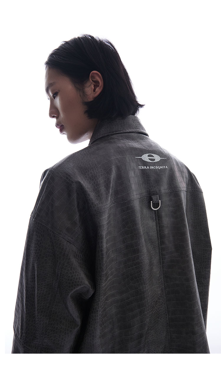 TERRAINCOGNITA原创PU皮短款鳄鱼纹皮衣宽松廓形百搭休闲外套男女
