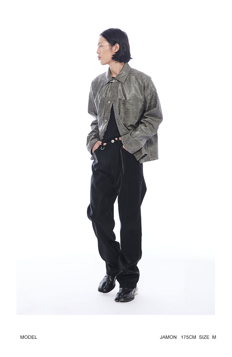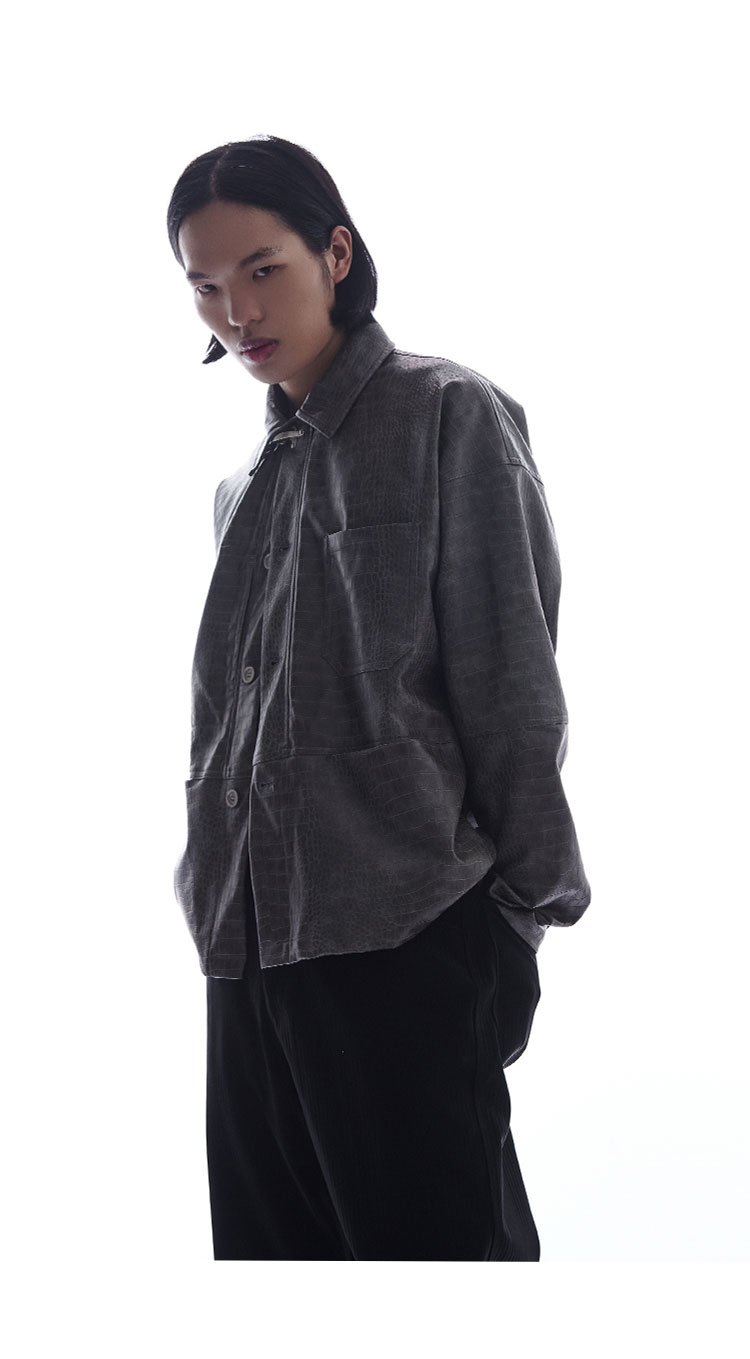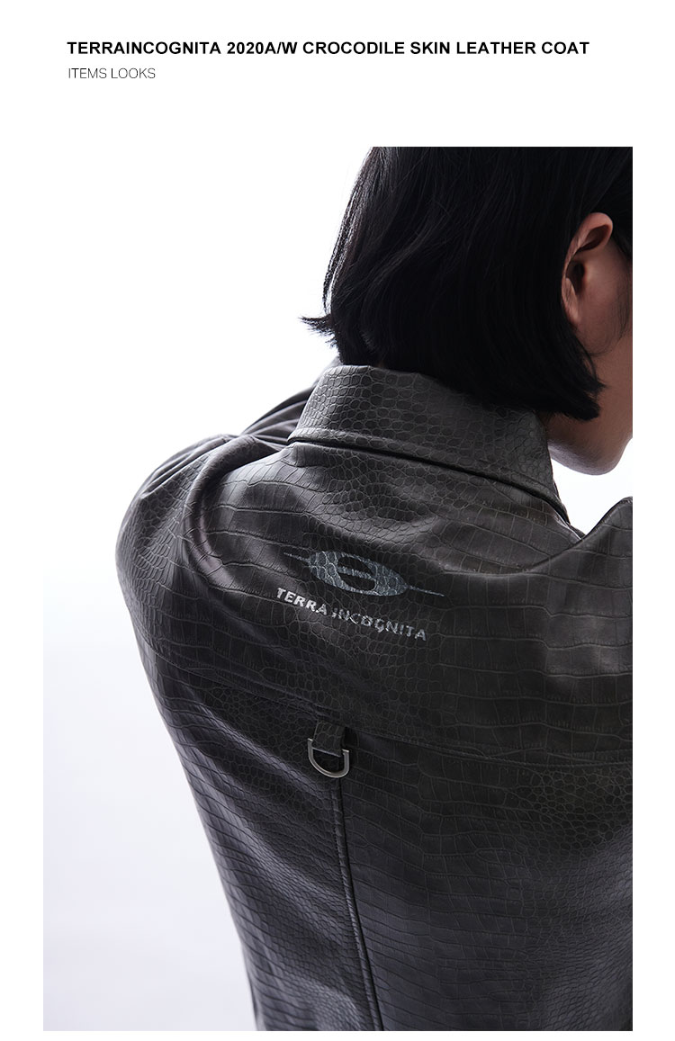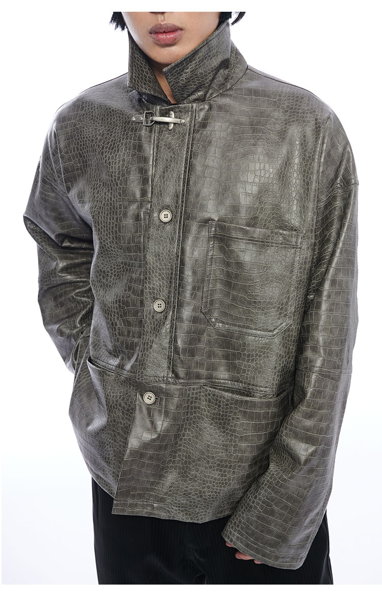 TERRAINCOGNITA原创PU皮短款鳄鱼纹皮衣宽松廓形百搭休闲外套男女
