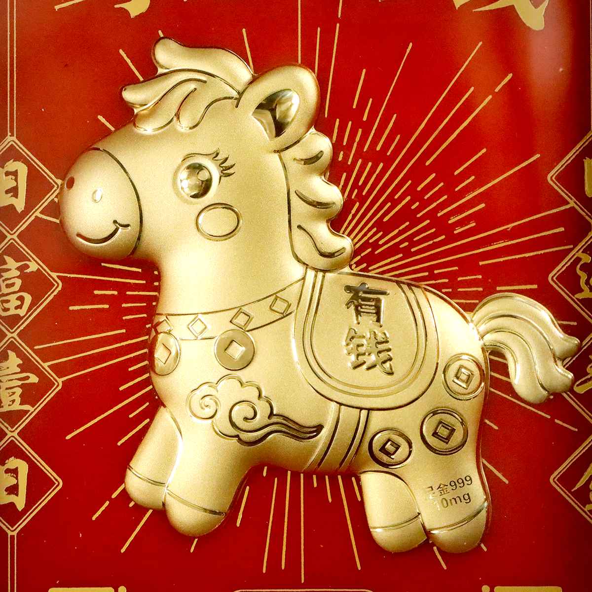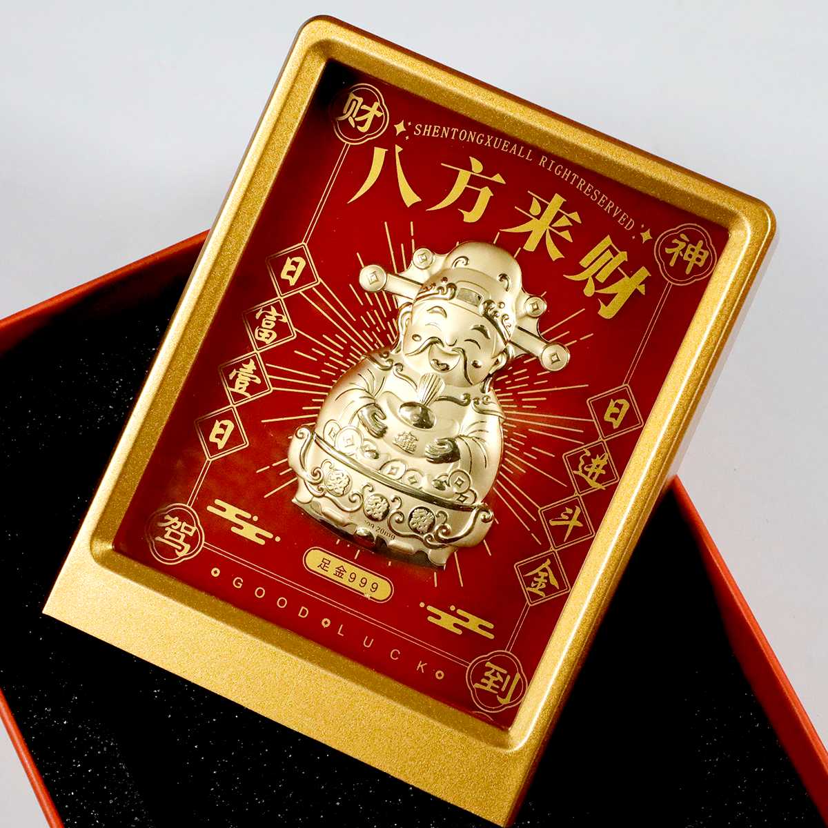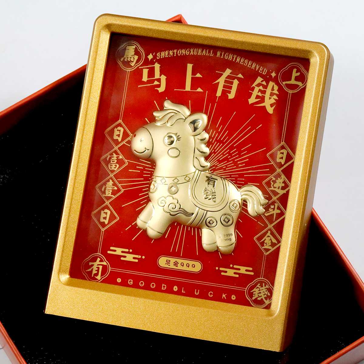 马上有钱摆件内含0.01克999足金,财神爷摆件内含0.02克999足金。