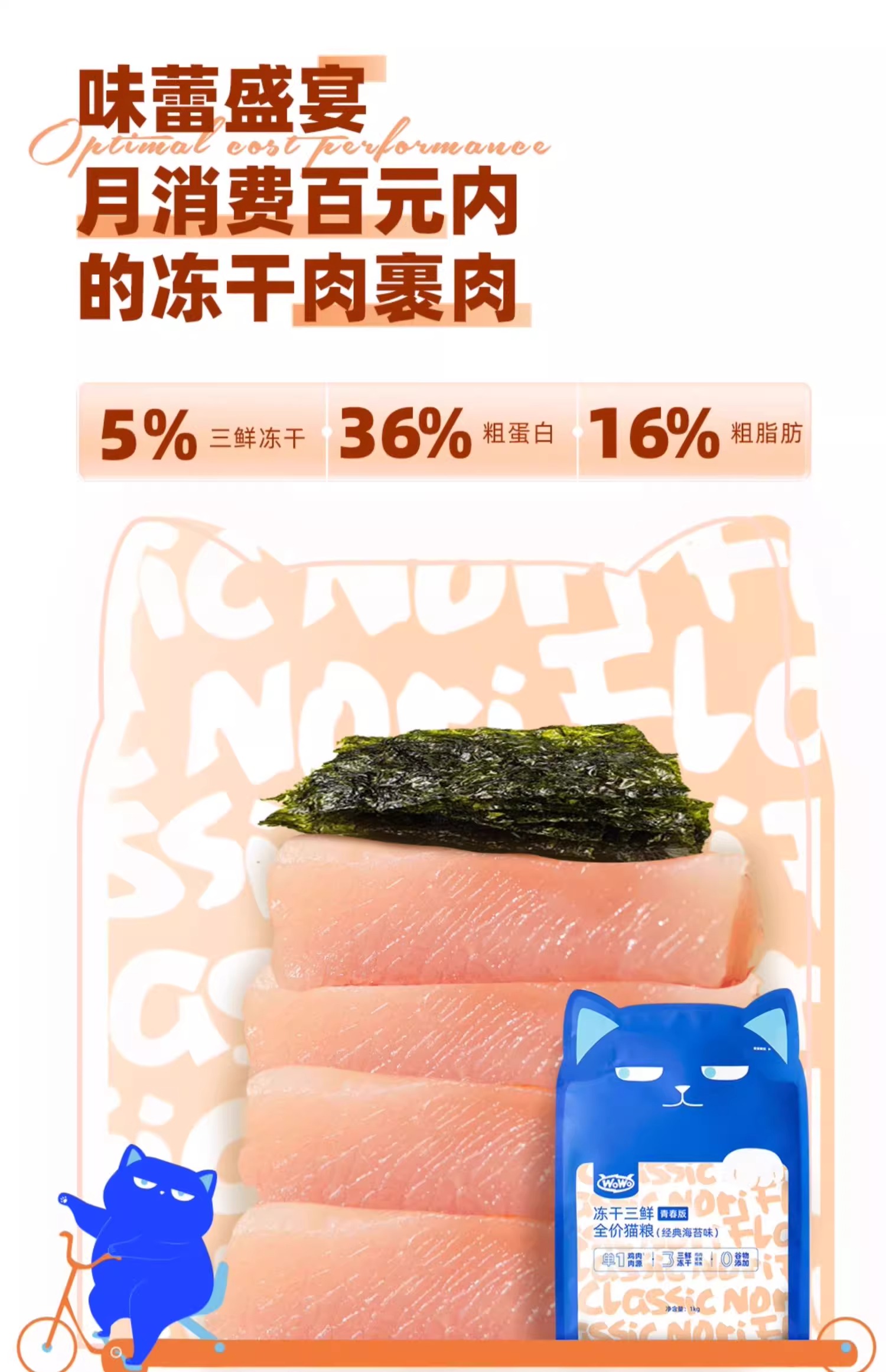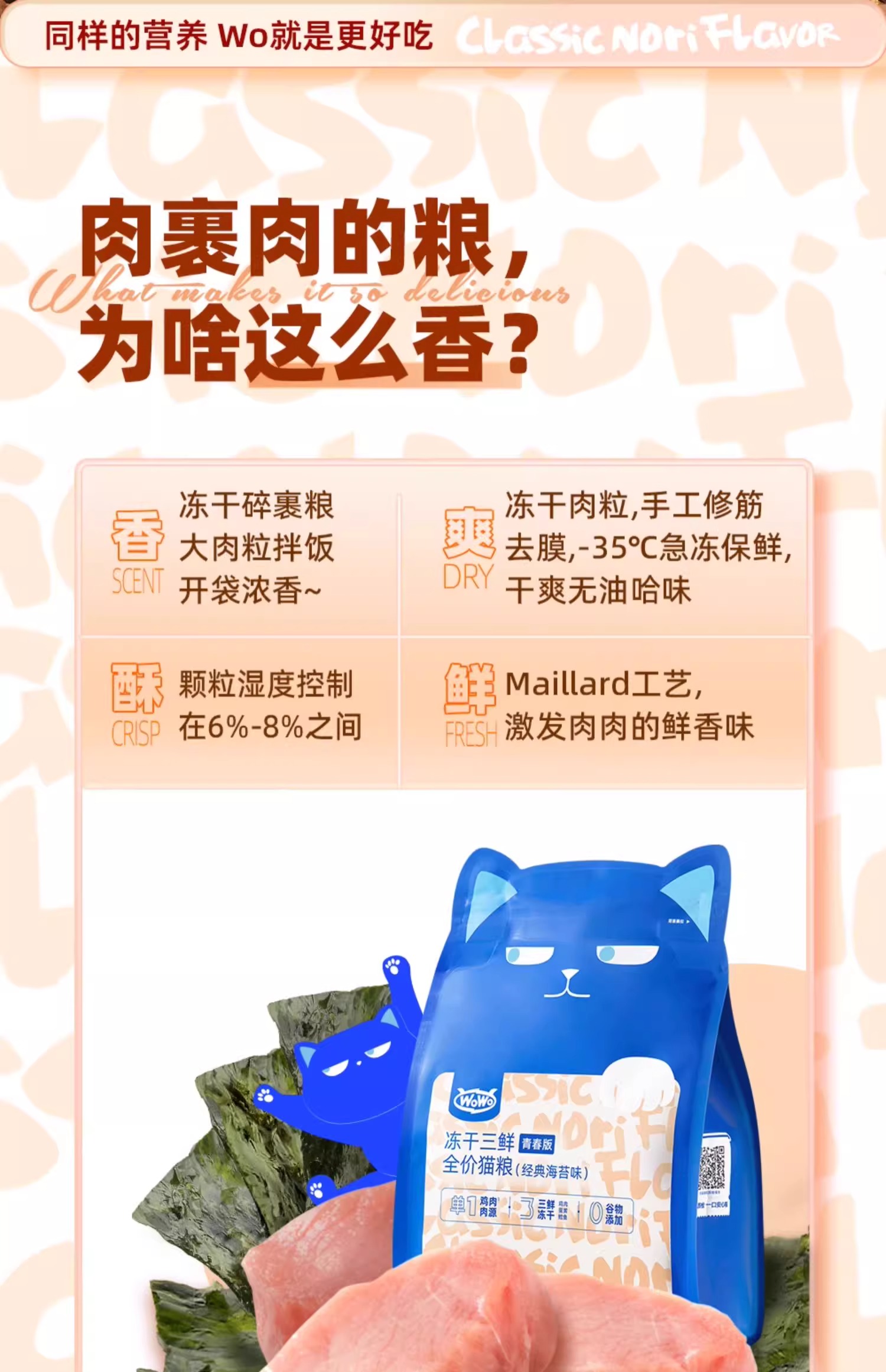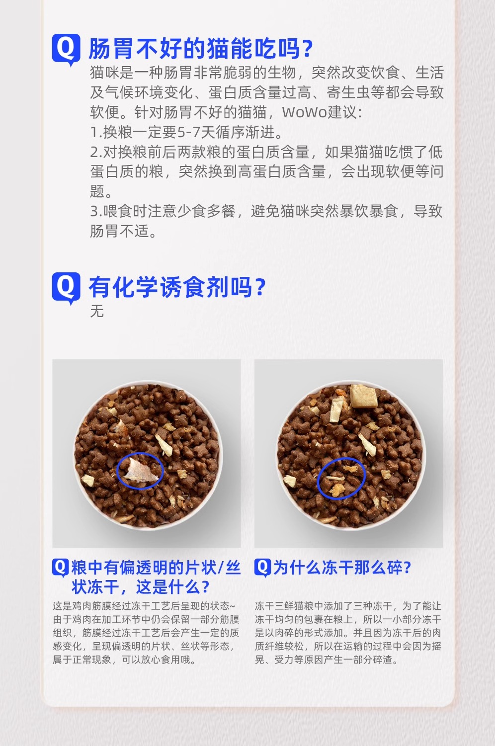 wowo喔喔冻干三鲜猫粮 呵护肠胃营养全价无谷官方旗舰店正品2斤