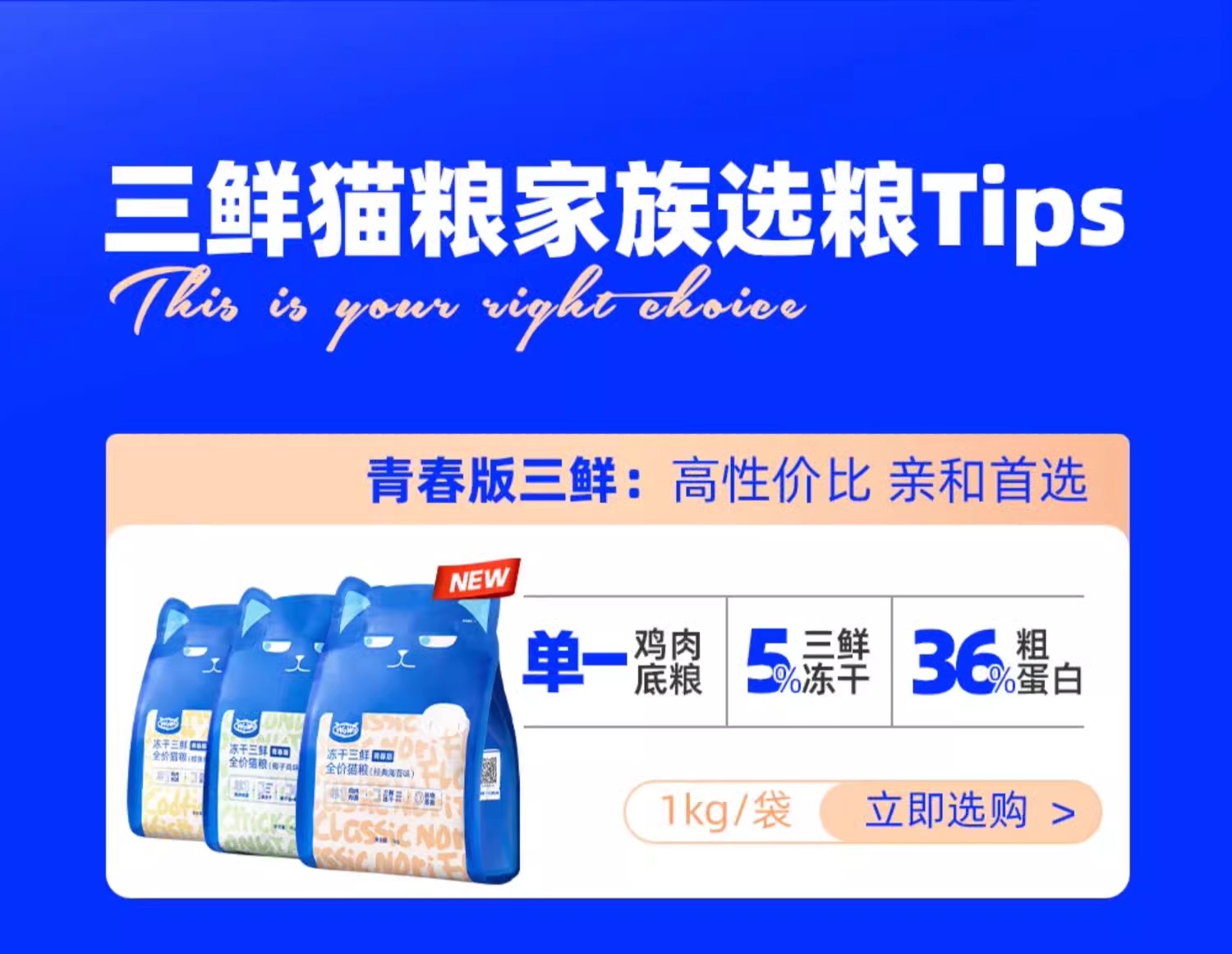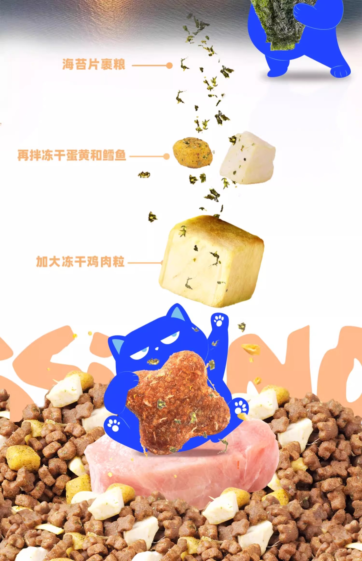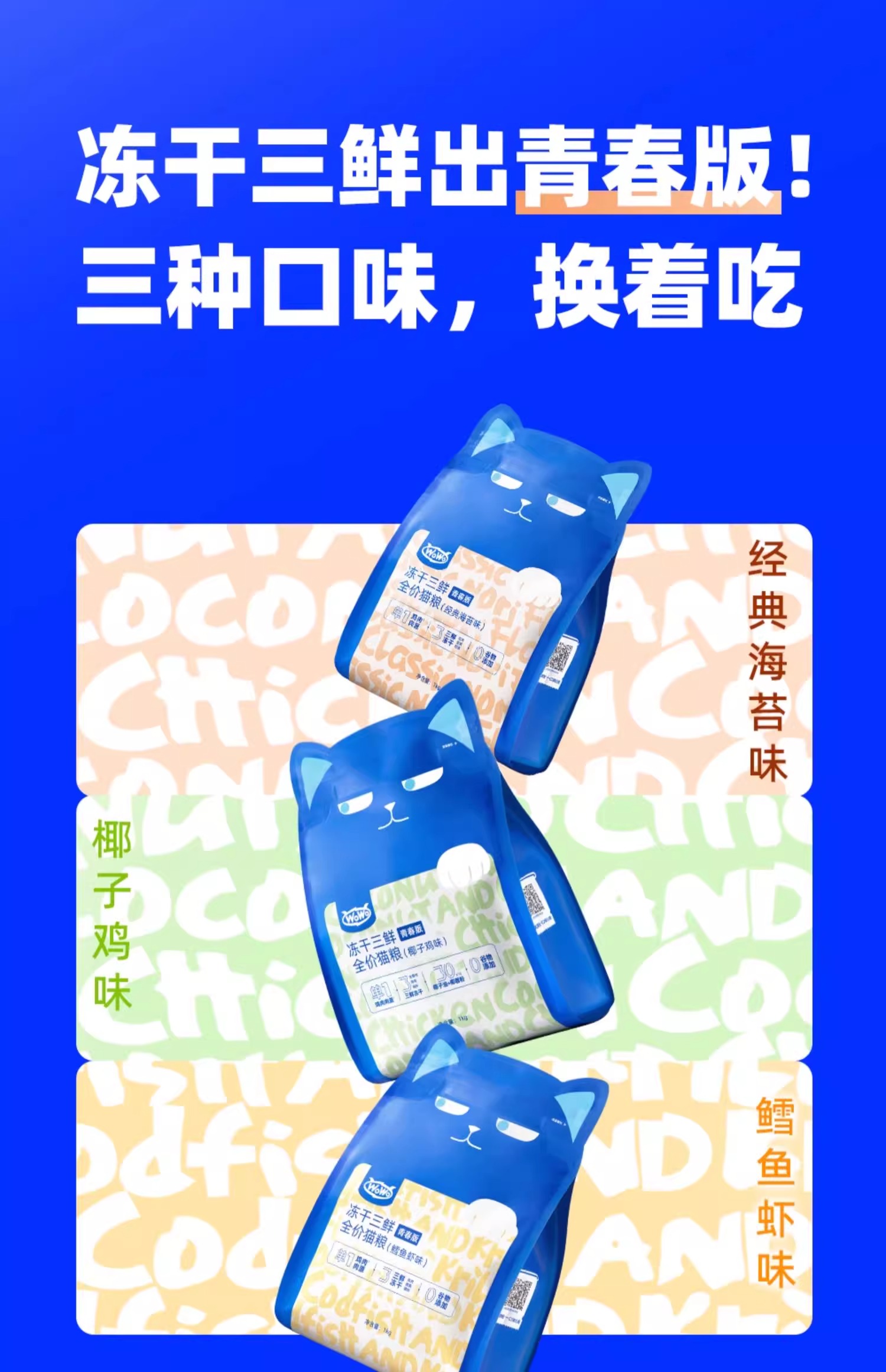wowo喔喔冻干三鲜猫粮 呵护肠胃营养全价无谷官方旗舰店正品2斤