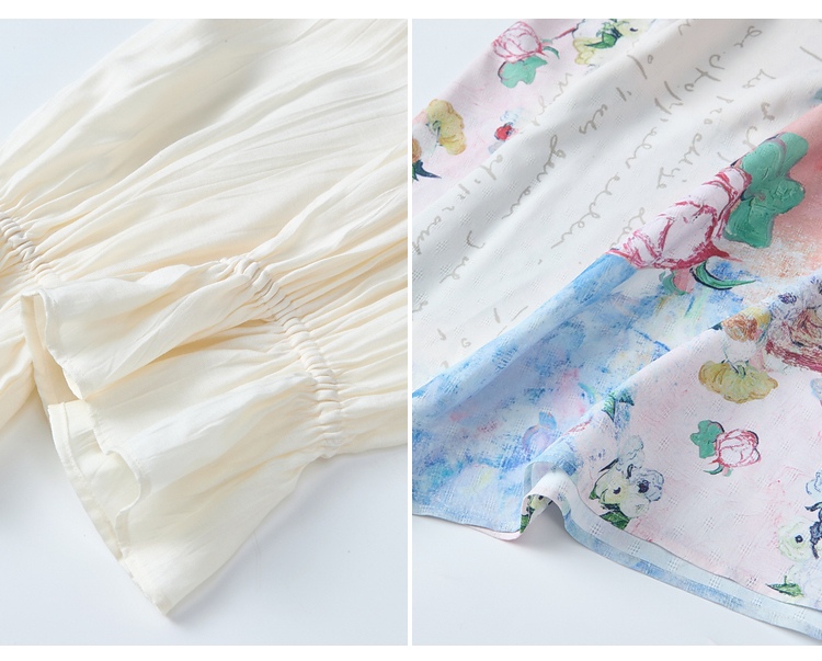 两三事 始夏蝉鸣 2026春季新款小清新蕾丝拼接印花花边吊带连衣裙