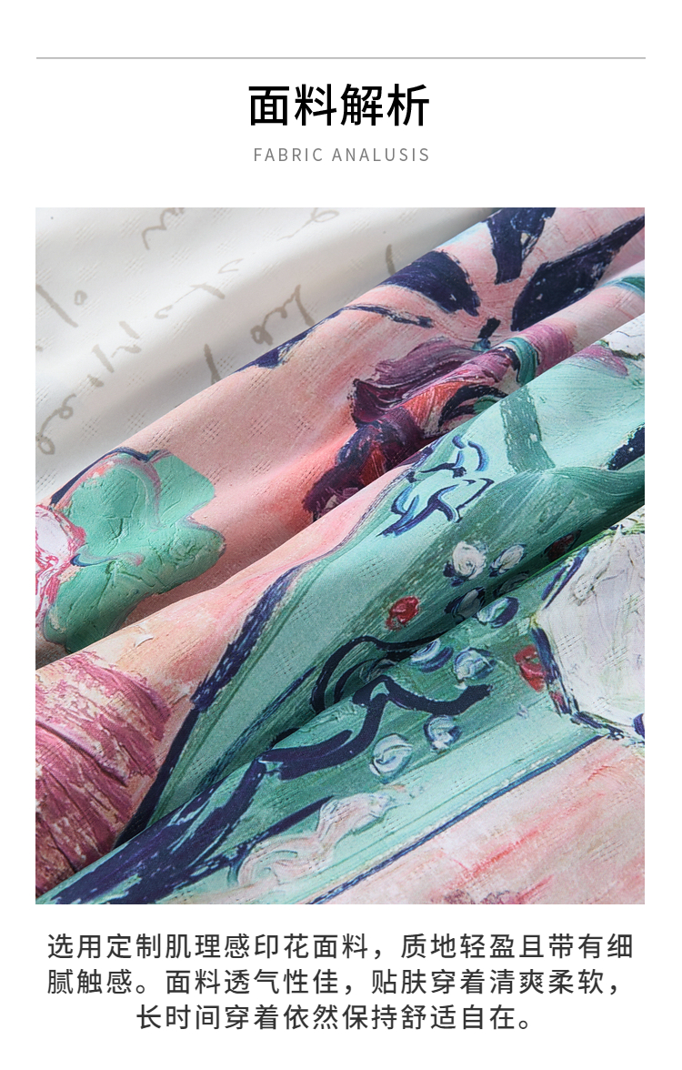 两三事梵高文艺永恒生机2025夏新款法式蕾丝拼接印花吊带裙连衣裙