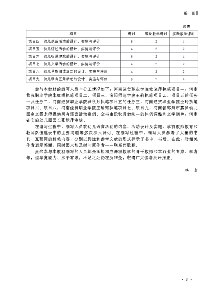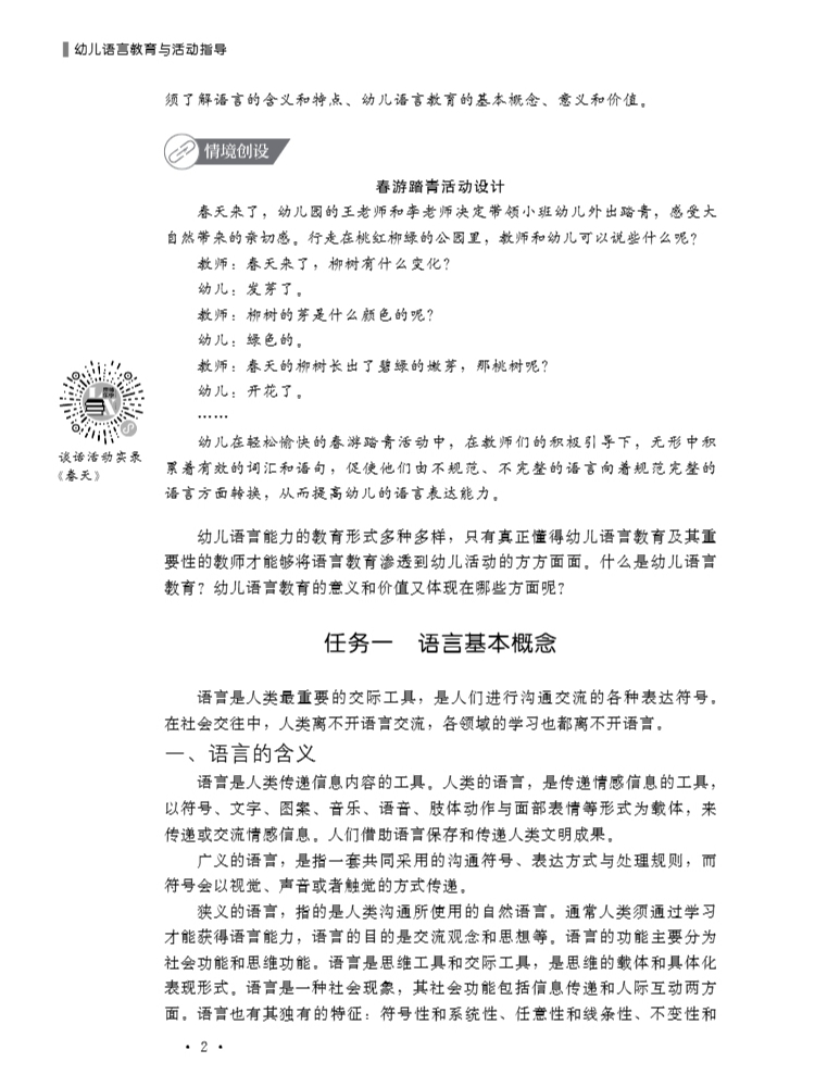 幼儿语言教育与活动指导是学前教育专业的核心课程,结合高职教育培养目标,教材内容为理实一体。主要内容包括幼儿语言教育概述,幼儿语言发展过程,幼儿语言教育活动的设计、组织和实施等十章。