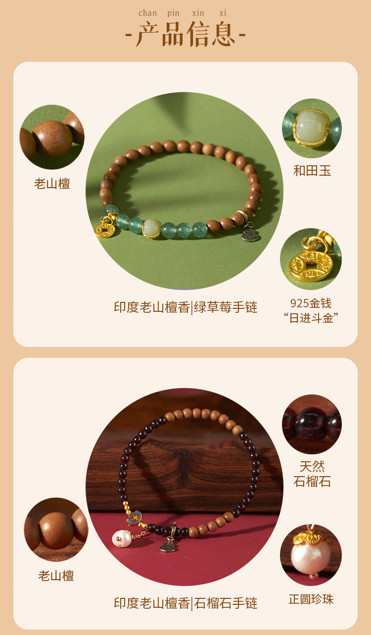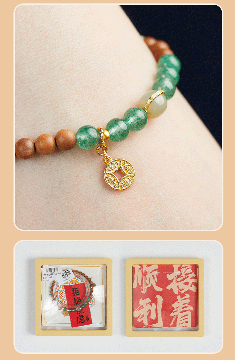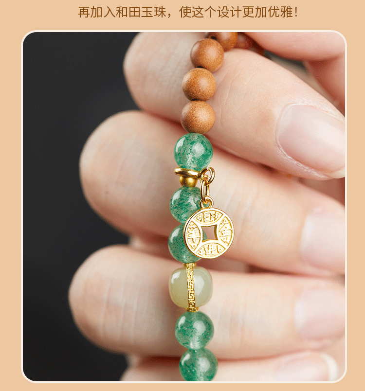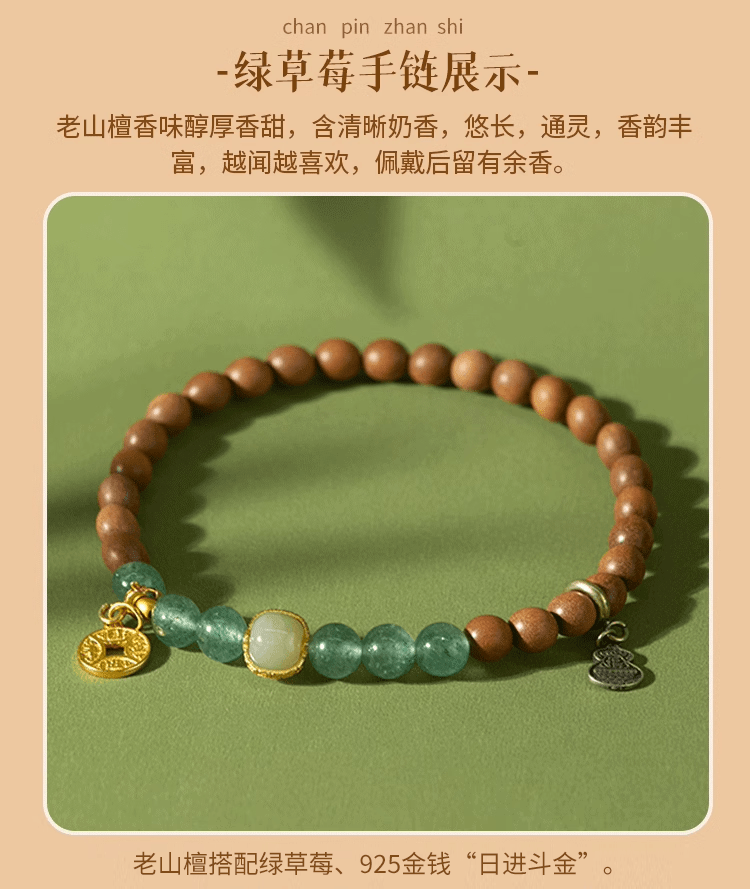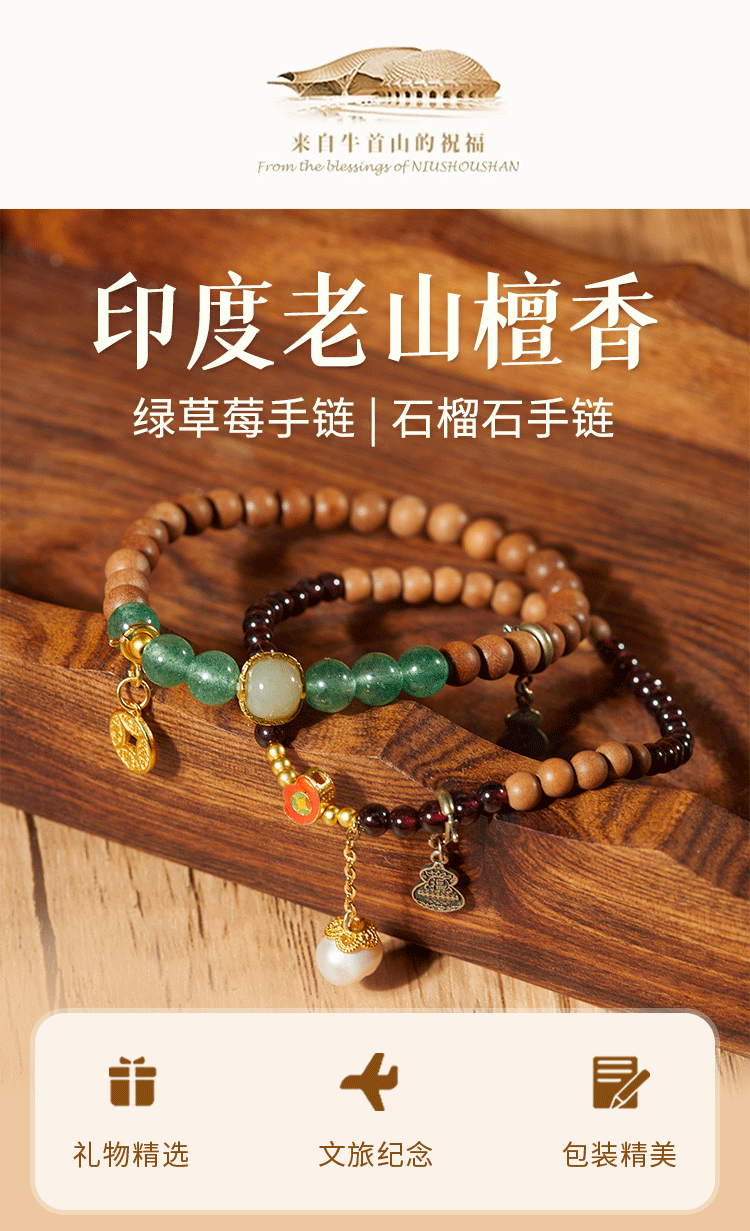 牛首山文创印度老山檀香绿草莓石榴石水晶白玉珠手串手链毕业礼物
