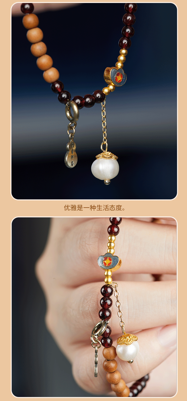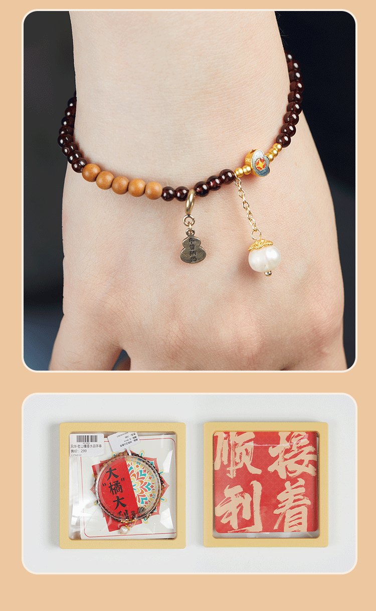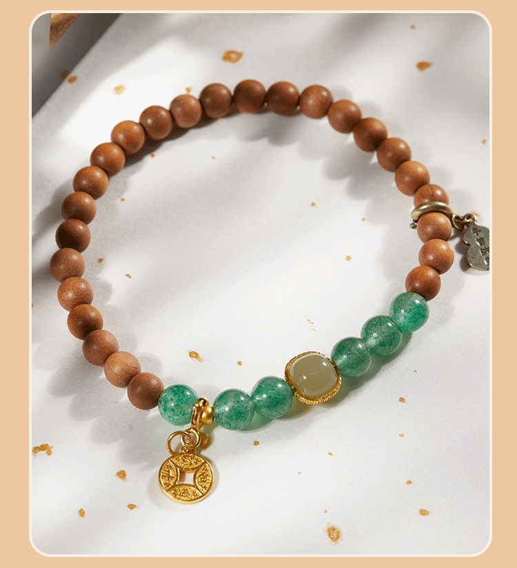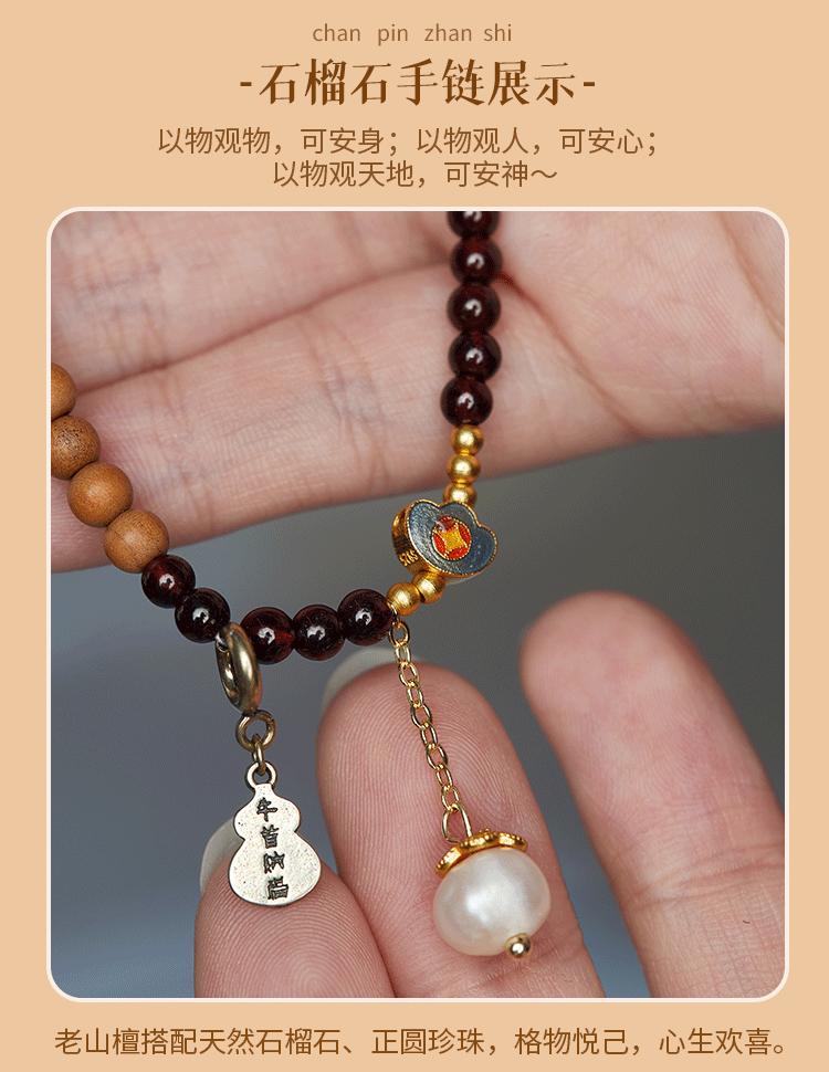 牛首山文创印度老山檀香绿草莓石榴石水晶白玉珠手串手链毕业礼物