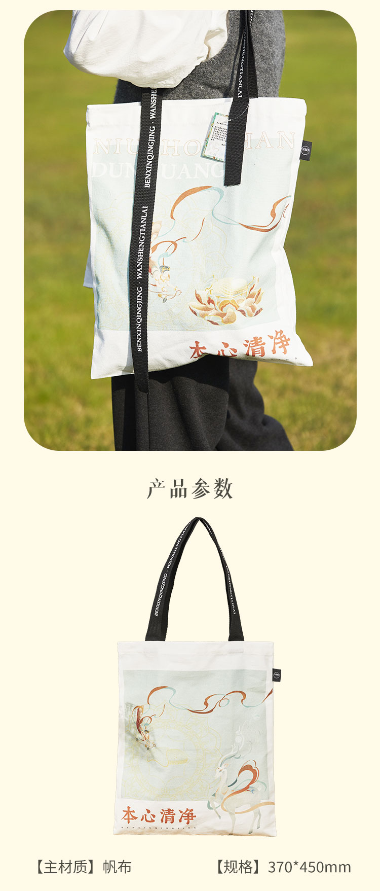 牛首山本心清净帆布包敦煌风上班通勤户外慵懒风松弛感百搭单肩袋