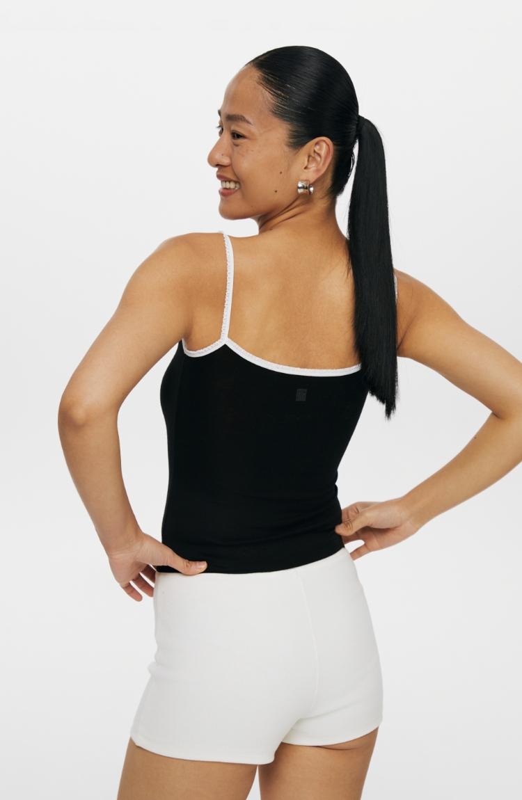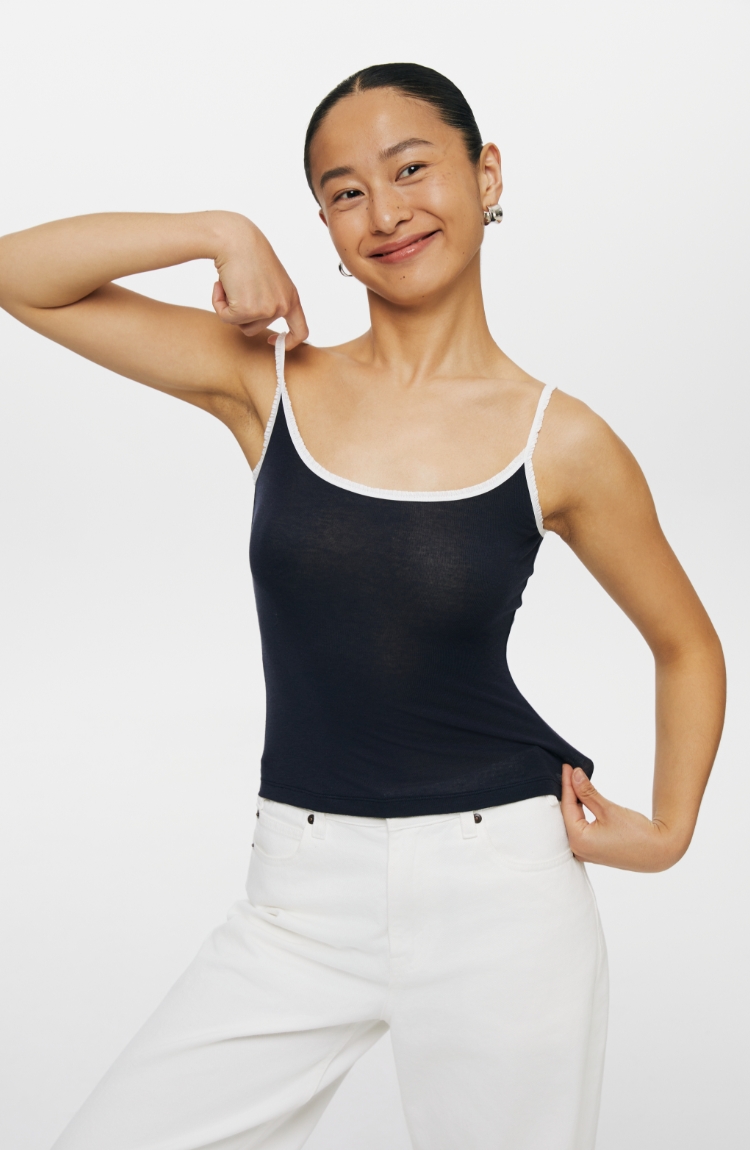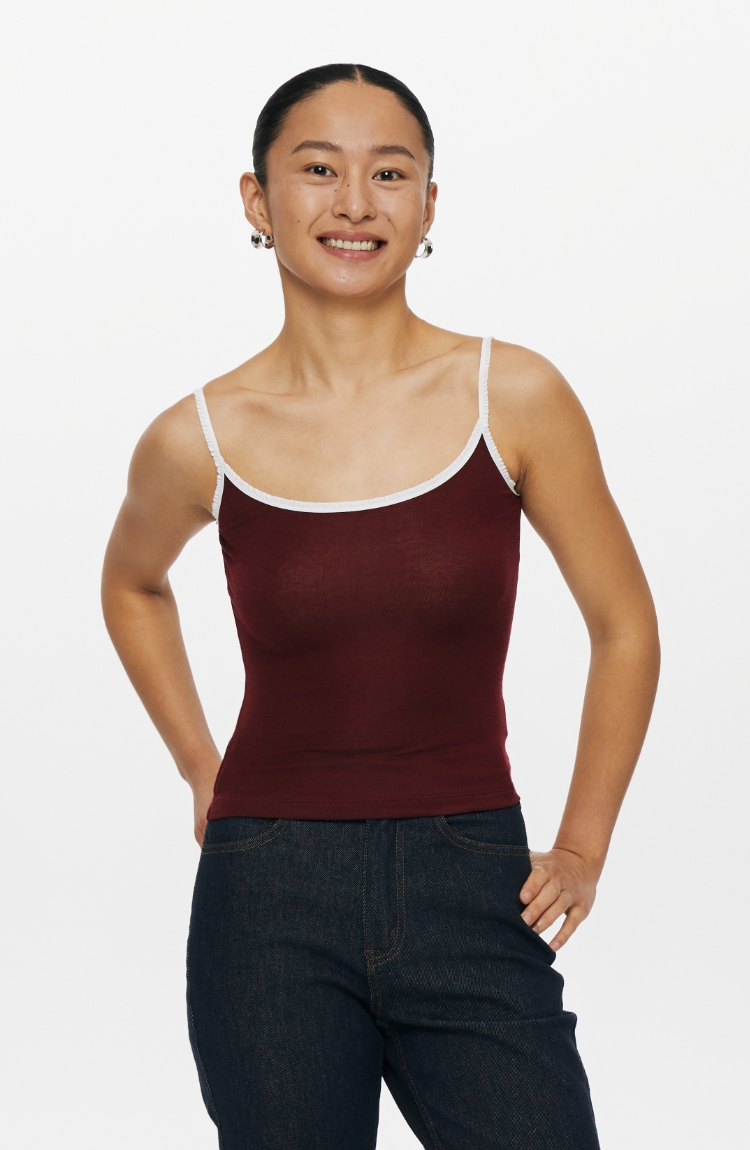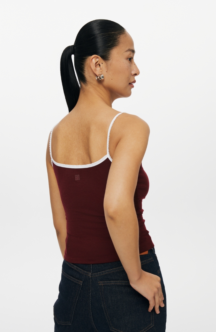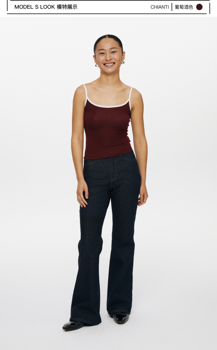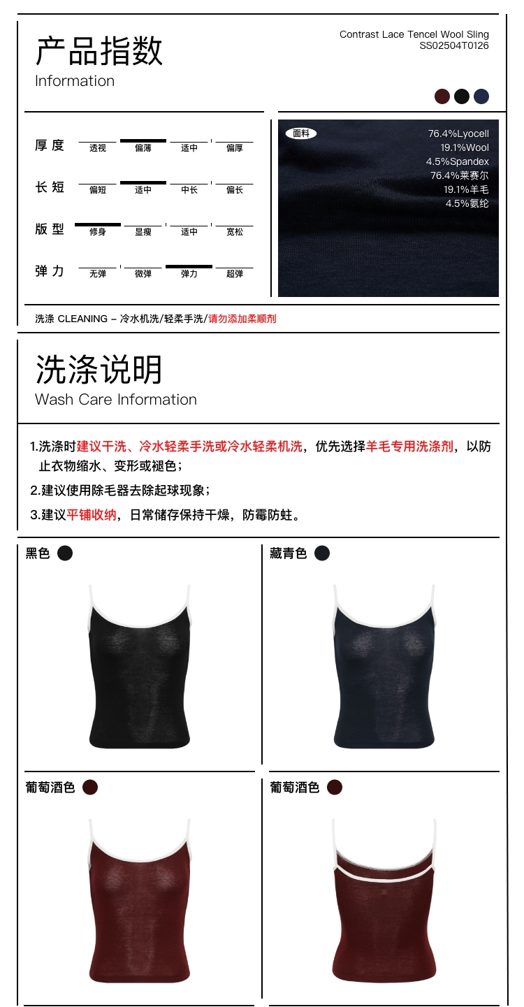 oneup撞色花边天丝羊毛吊带