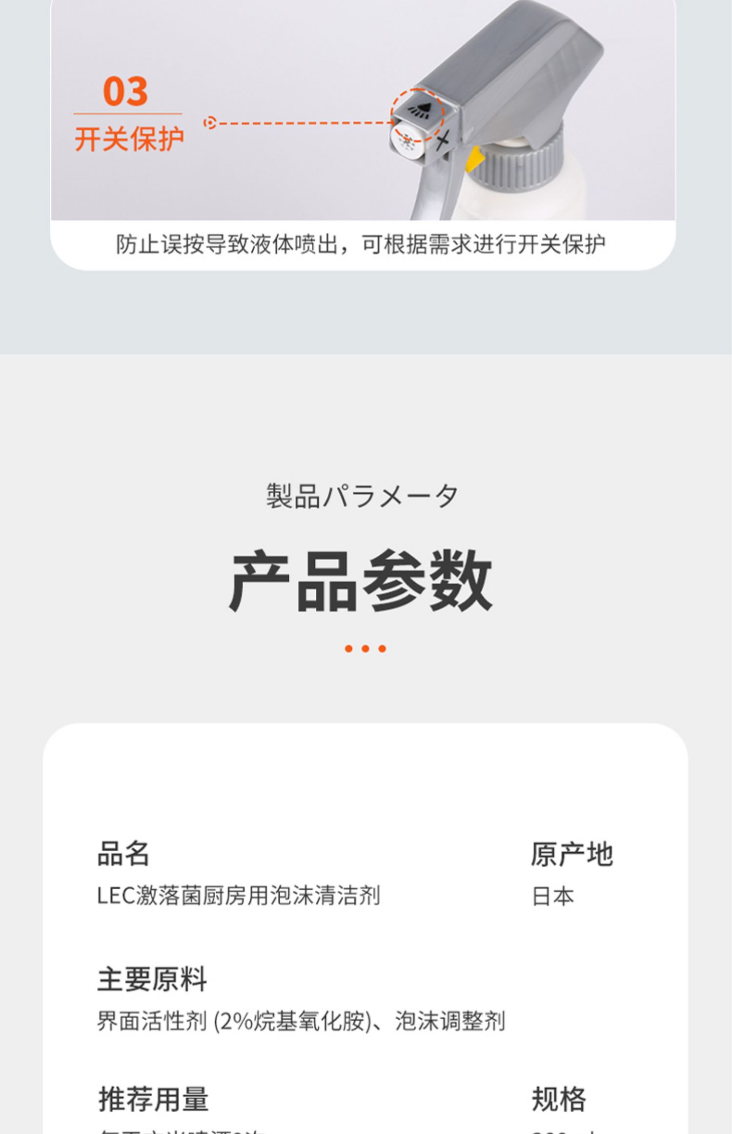 日本进口LEC激落君厨房电器烤箱油烟机微波炉祛油污油膜泡沫清洁剂