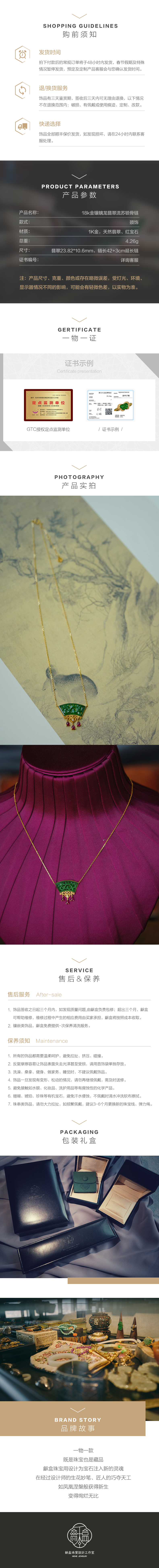 龢盒原创 18k金镶螭龙翡翠流苏锁骨链 项链