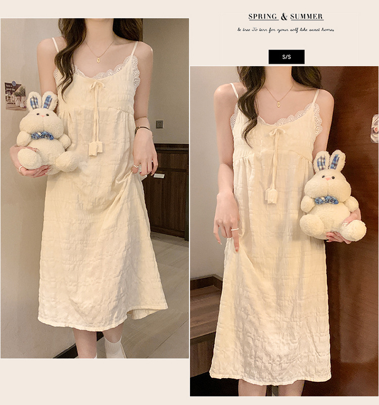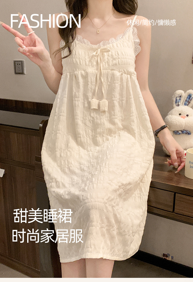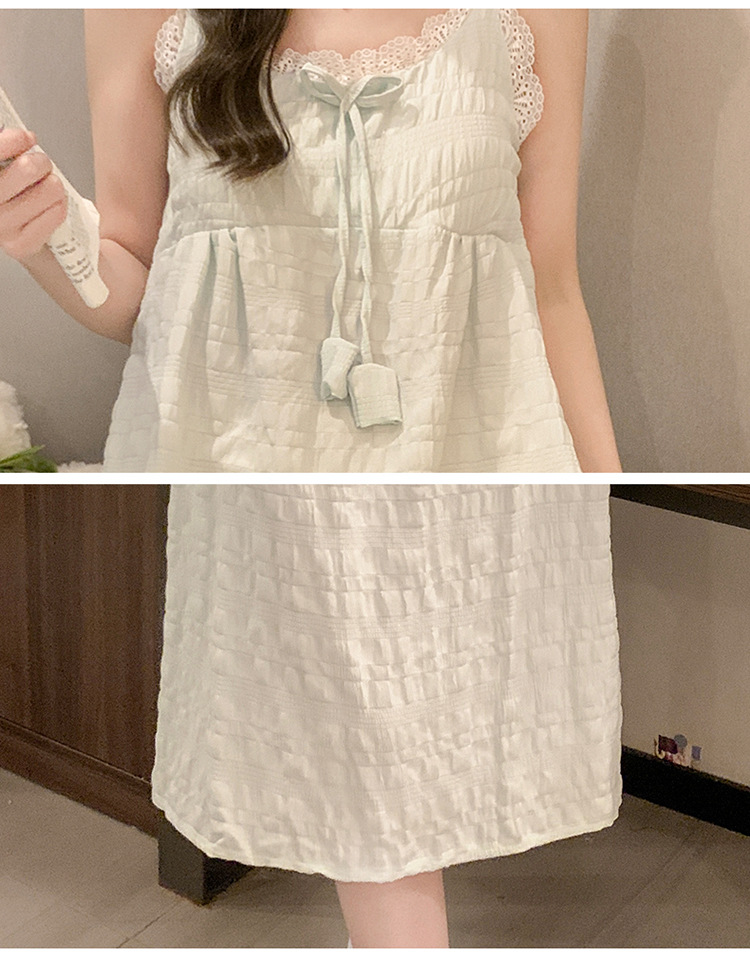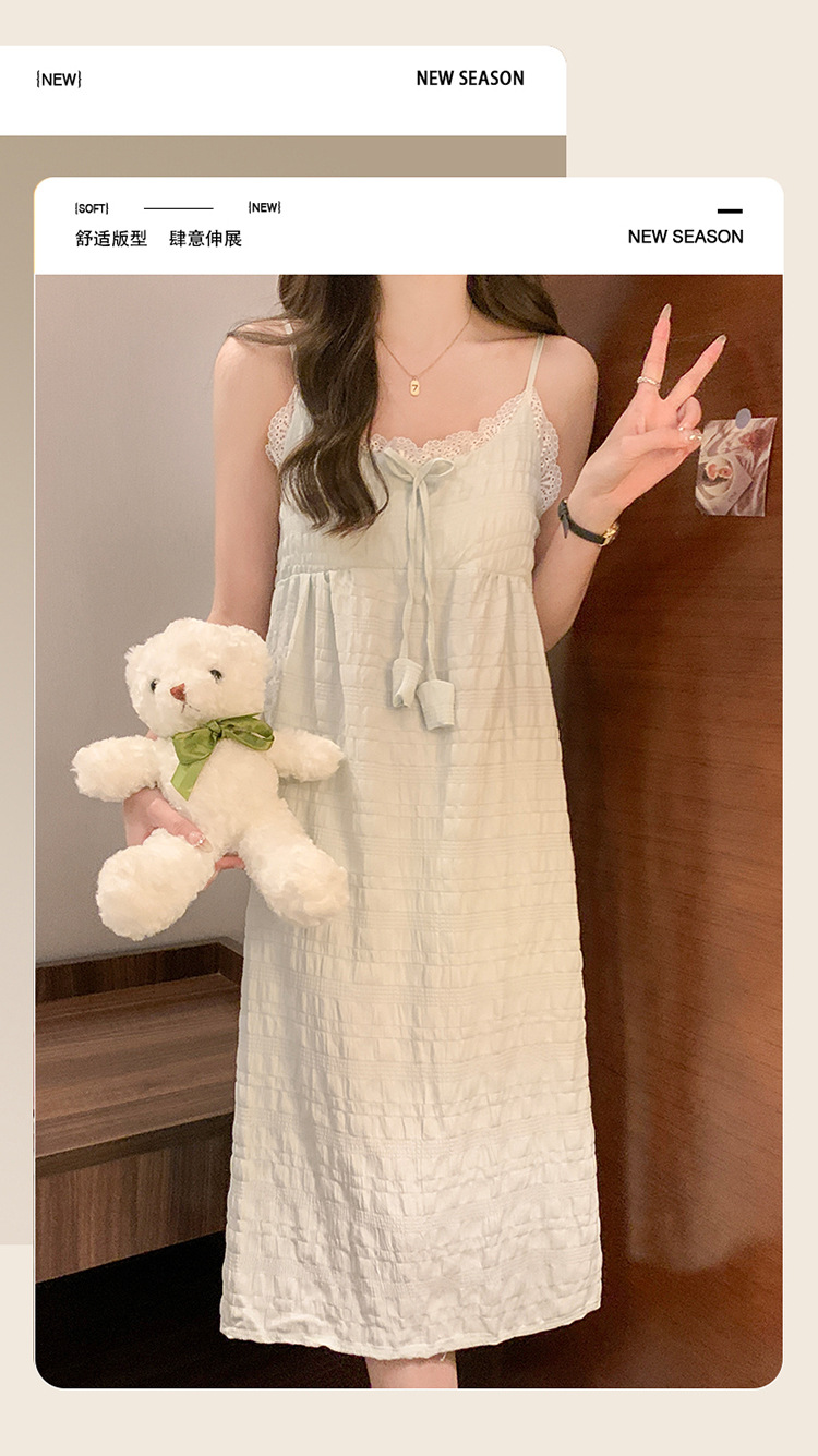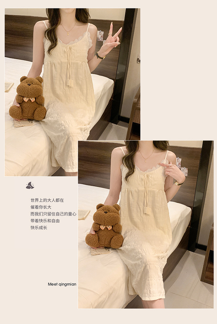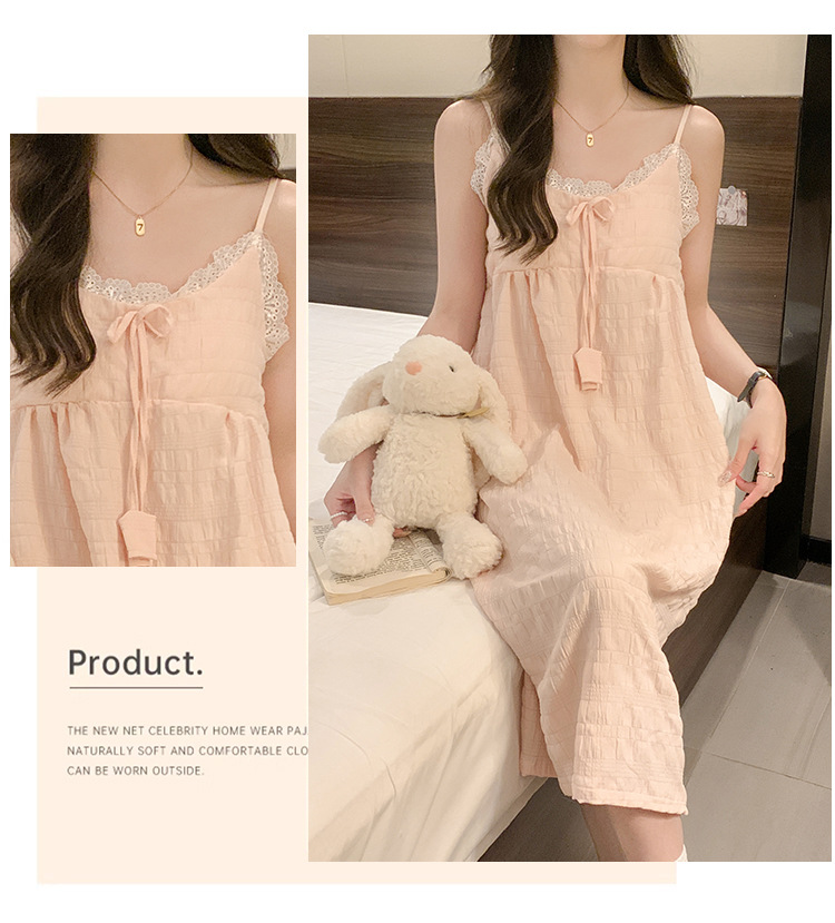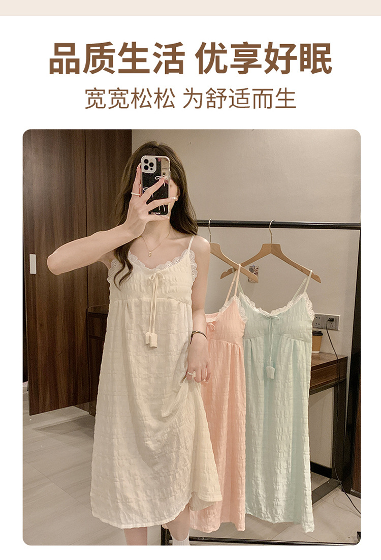 夏季性感带胸垫睡裙女士吊带云朵棉薄款清新可爱公主风睡衣家居服