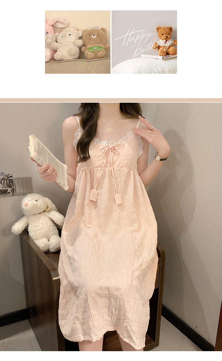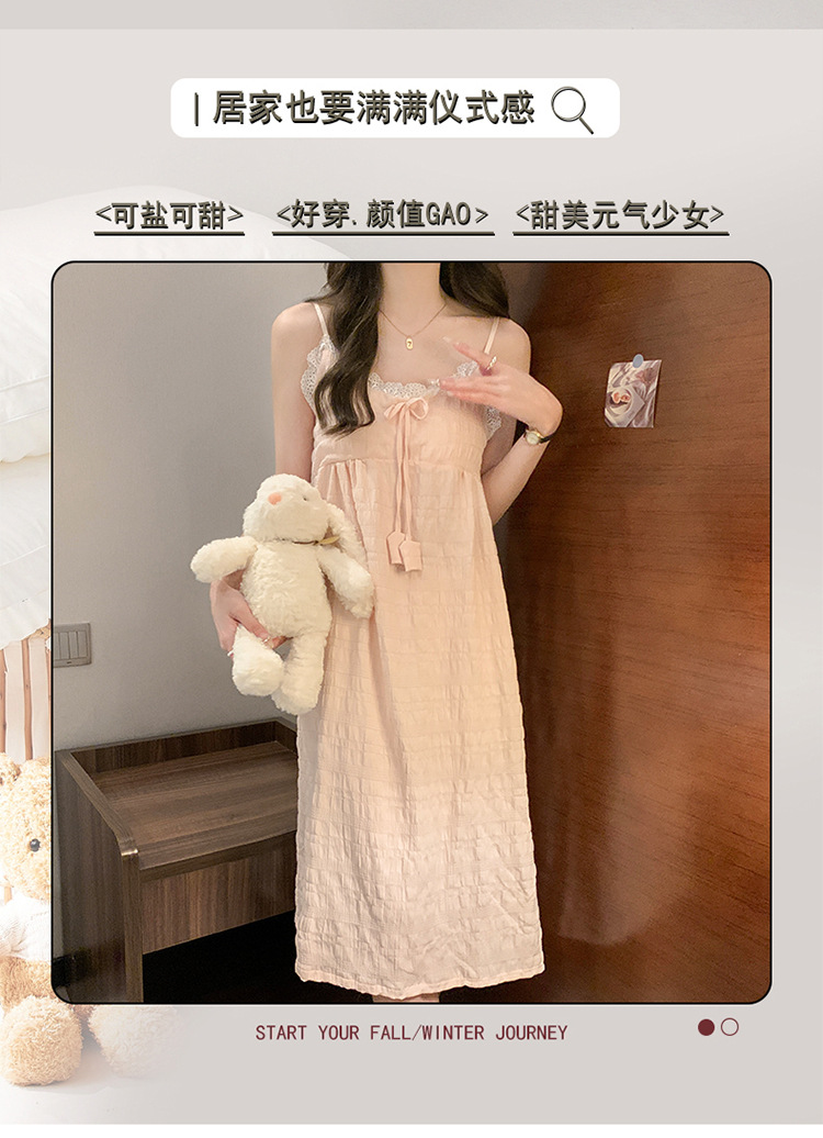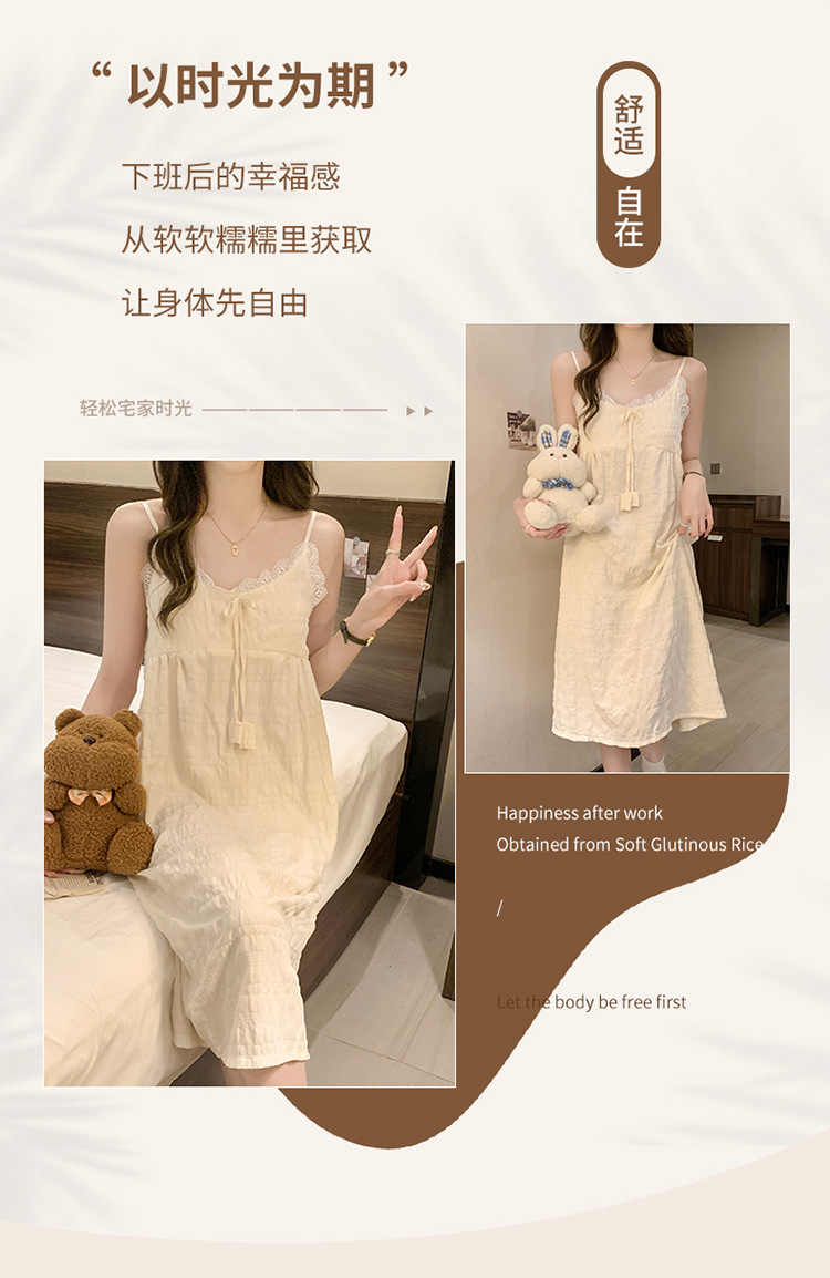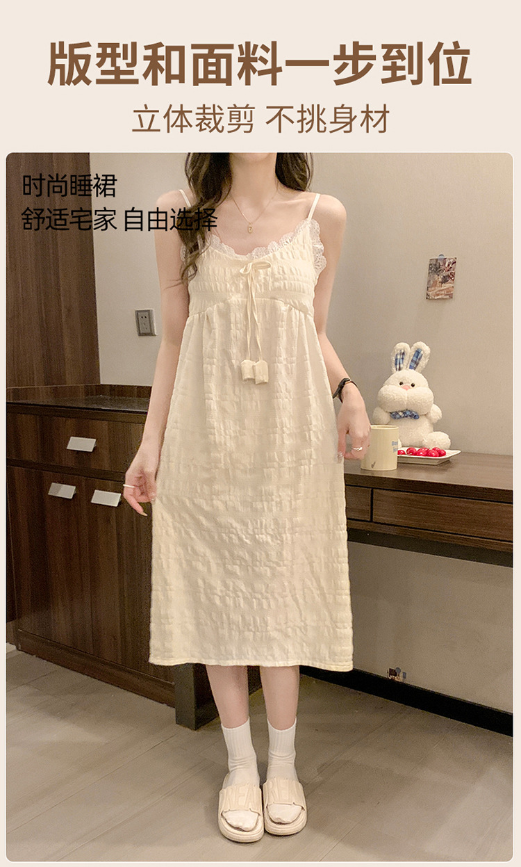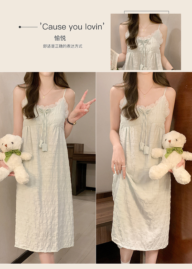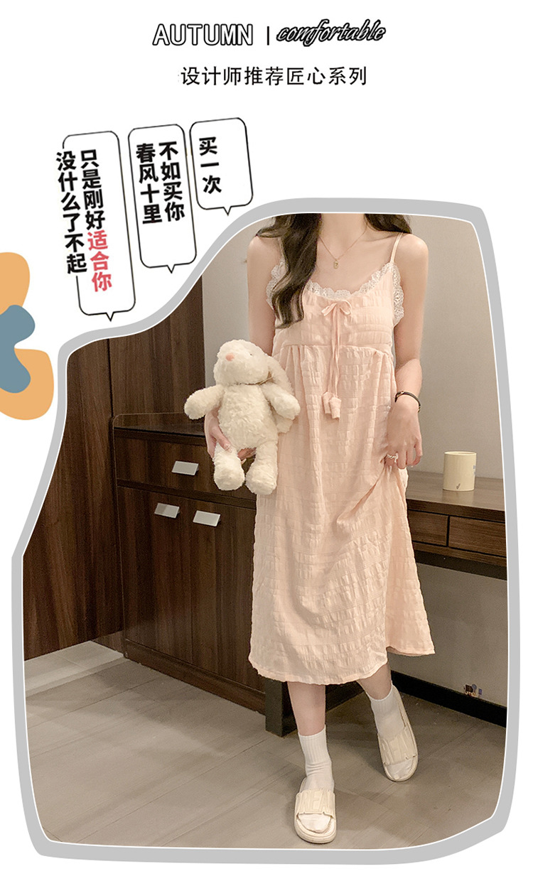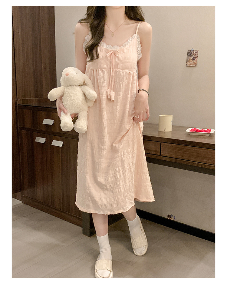 夏季性感带胸垫睡裙女士吊带云朵棉薄款清新可爱公主风睡衣家居服