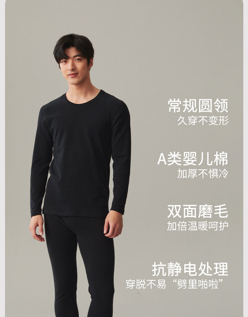 A类婴儿棉双面磨绒保暖内衣套装250g保暖内衣情侣纯棉女秋衣秋裤男套装加厚全棉打底裤