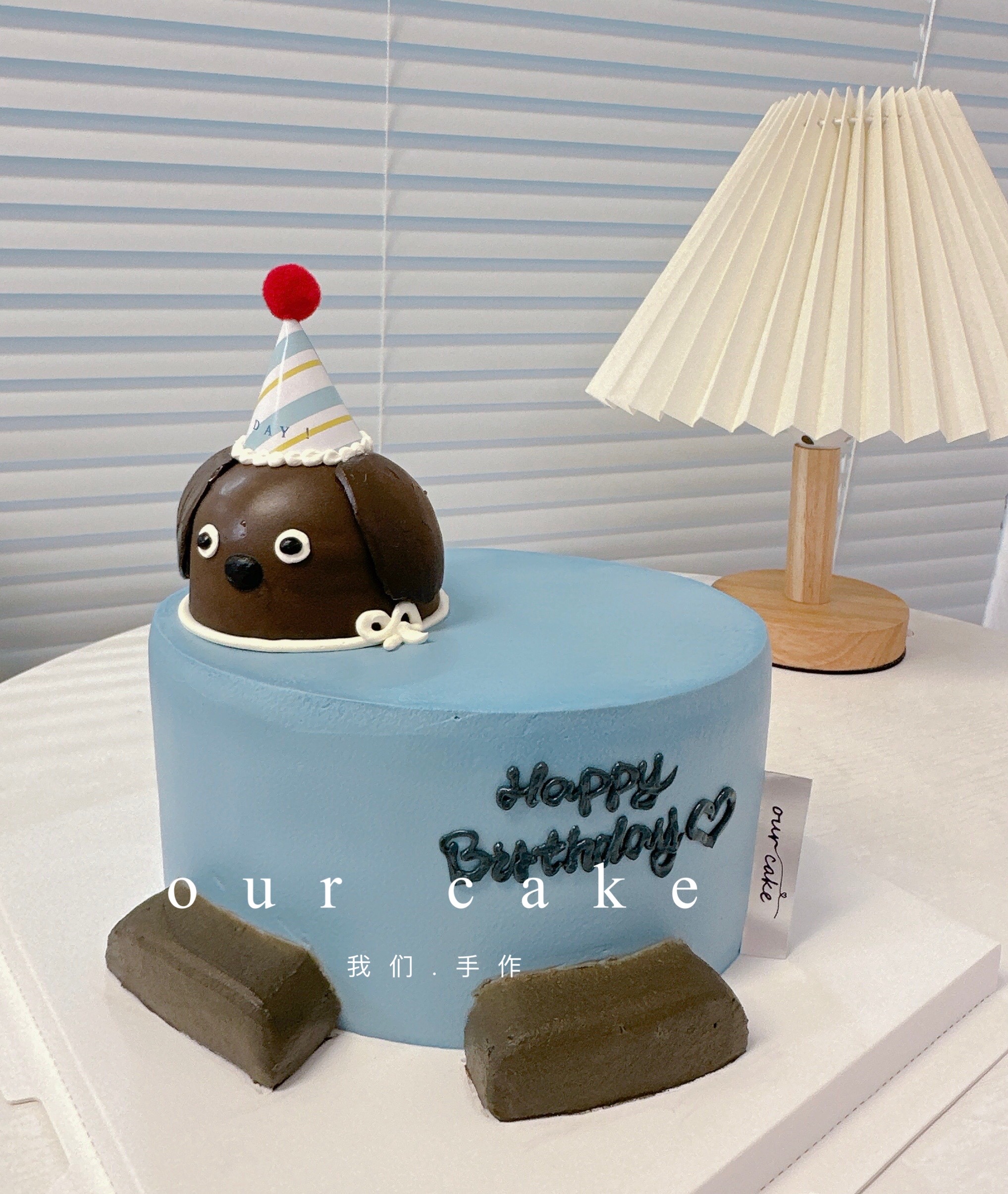 腊肠犬小动物卡通手绘蛋糕(小动物可换)-低糖处理无添加