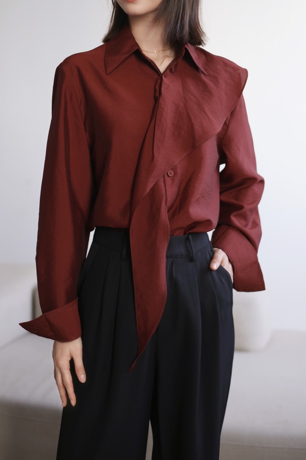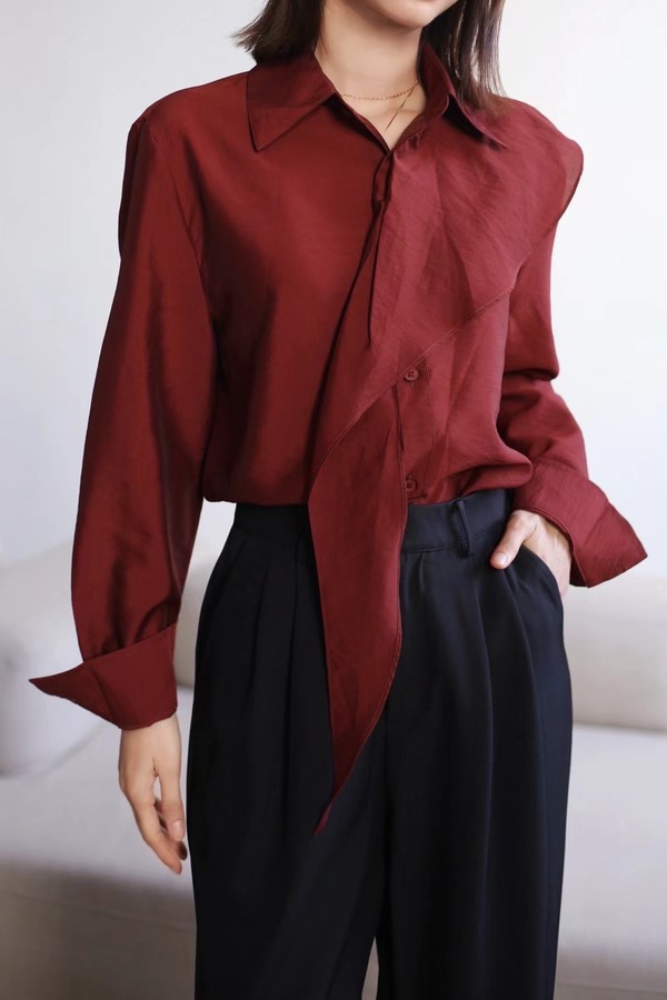 ESTELLICA 红色法式复古港风通勤高级感衬衫 21468