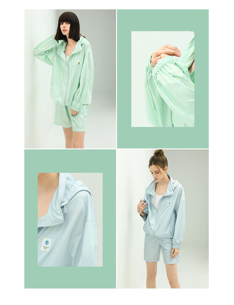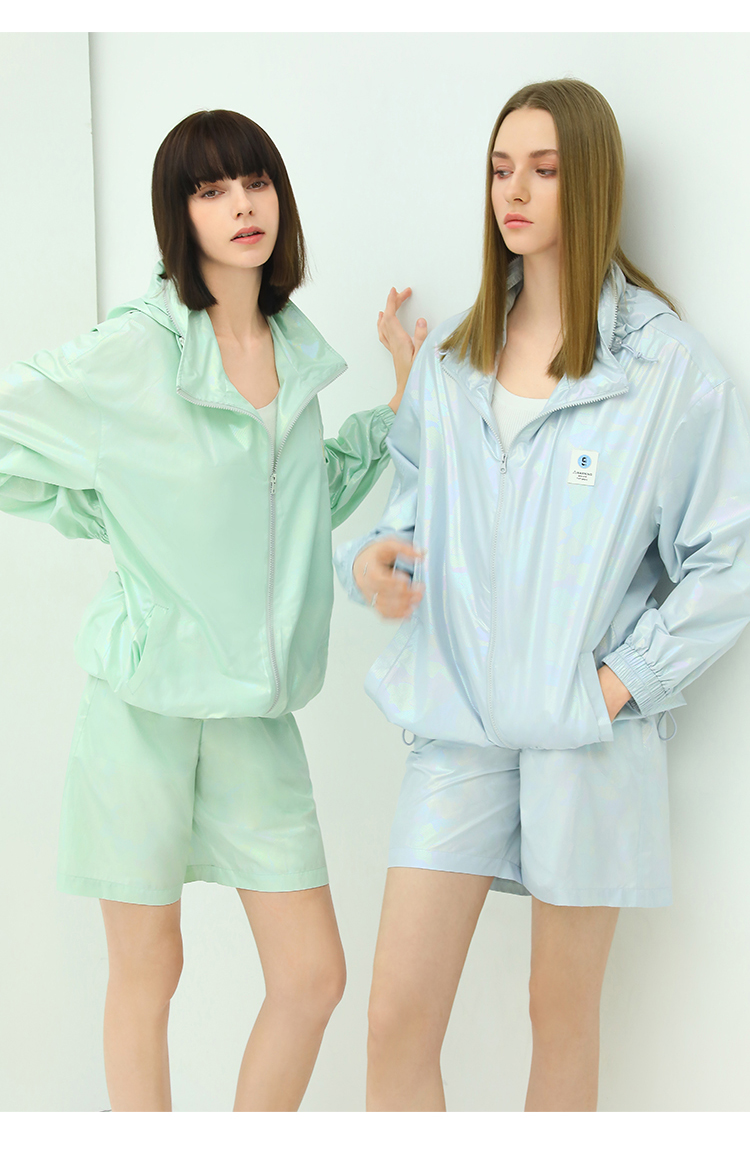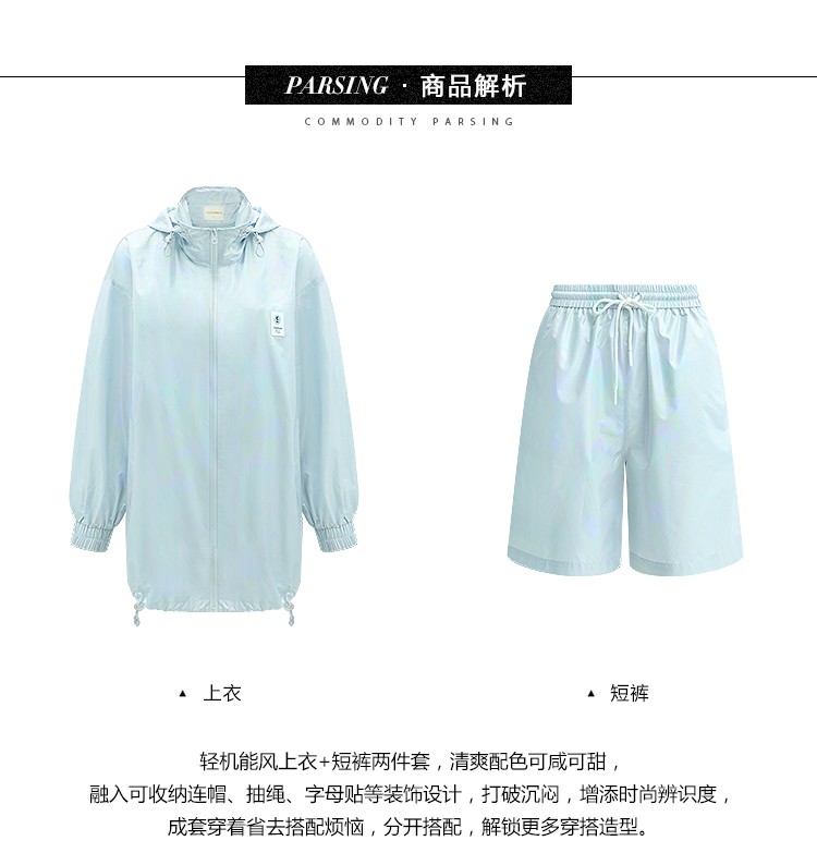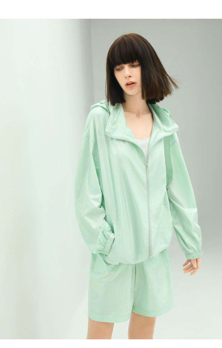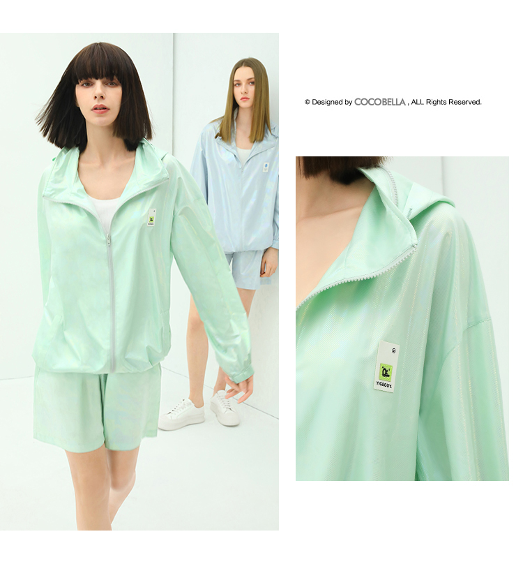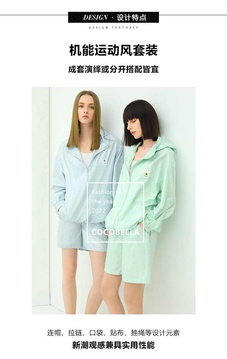COCOBELLA幻彩连帽遮阳衫外套短裤两件套女轻薄休闲套装FS600