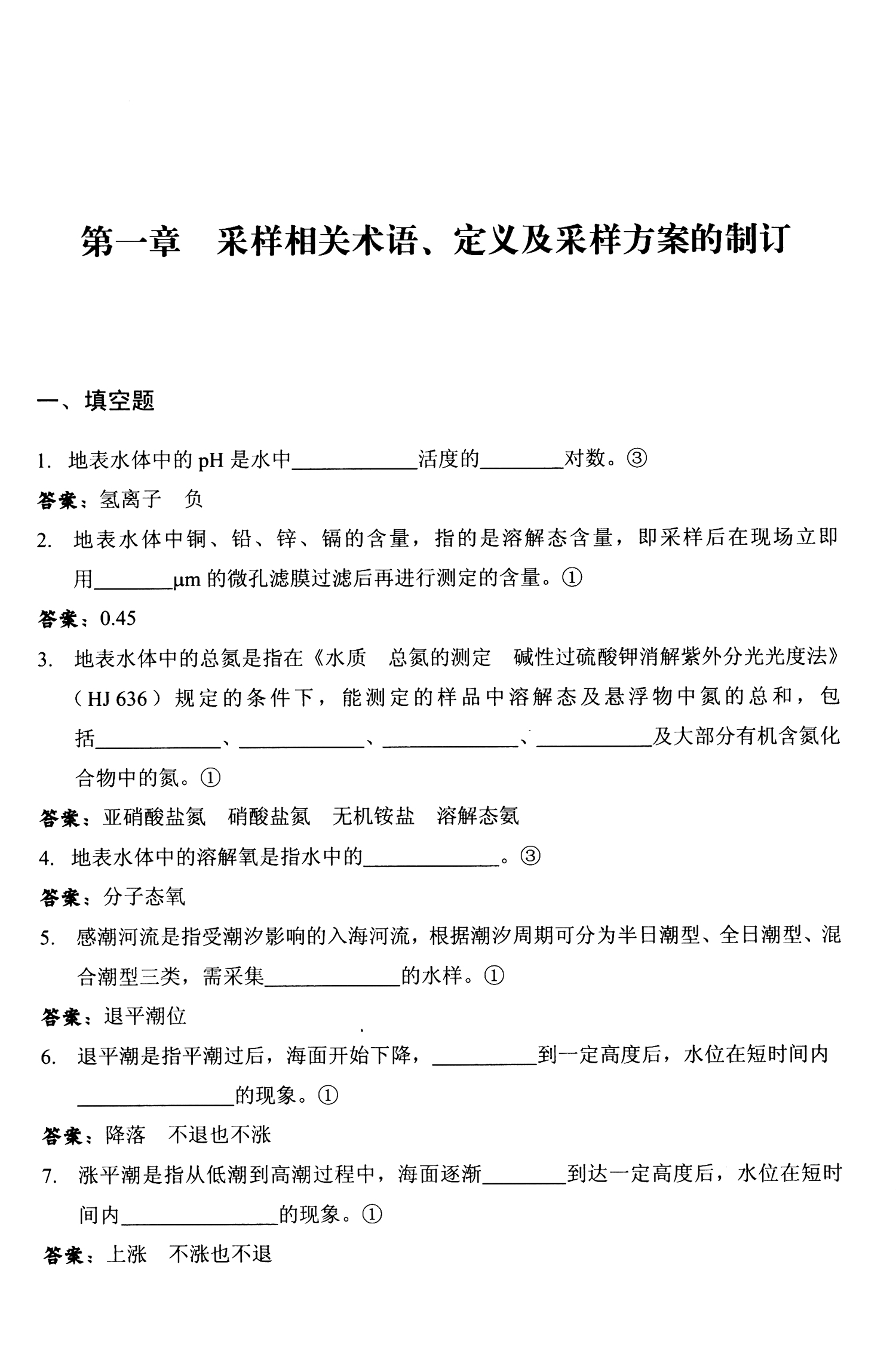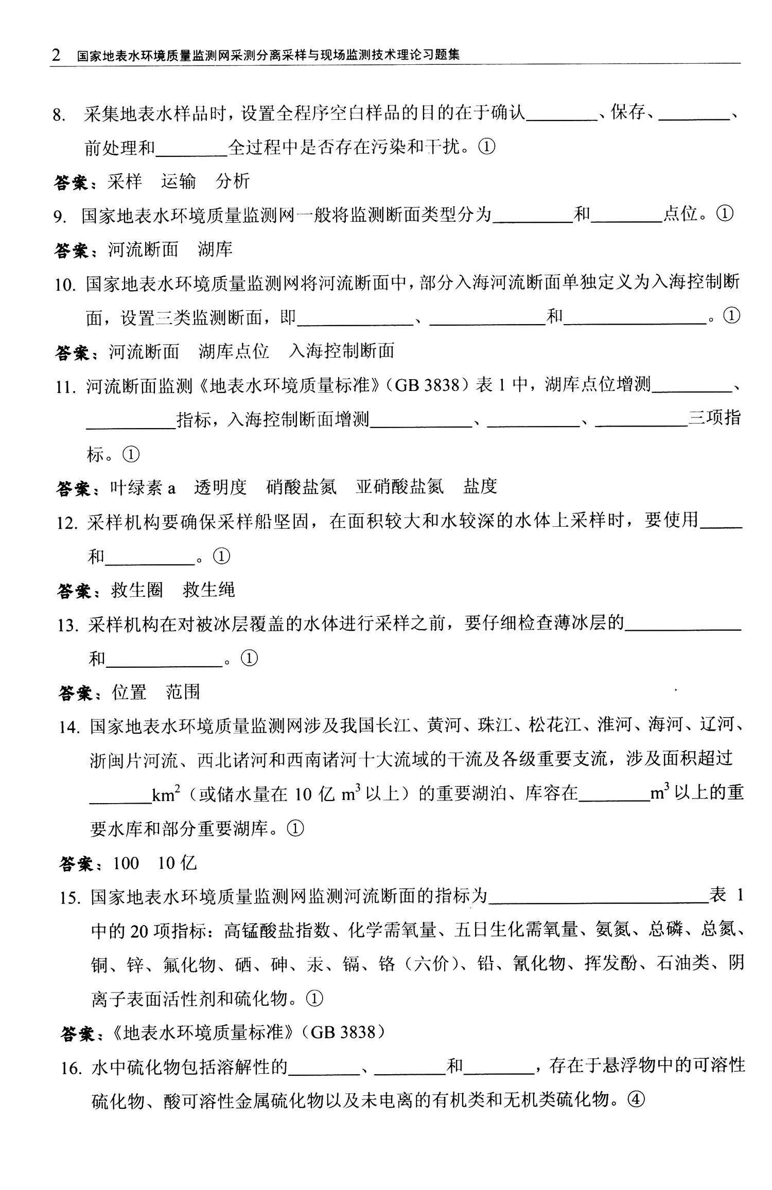 书名:国家地表水环境质量监测网采测分离采样与现场监测技术理论习题集