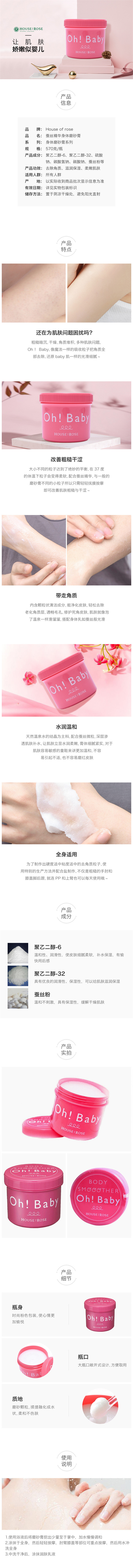 日本Ohbaby [本土版] 玫瑰身体去角质蚕丝精华磨砂膏570g