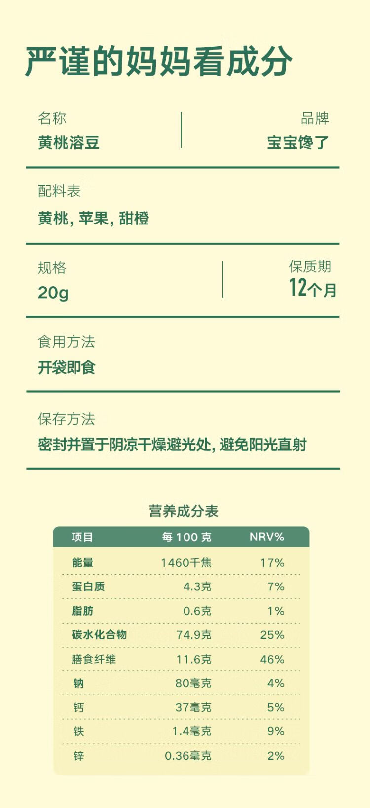 宝宝馋了 黄桃溶豆24g(4g*6)/盒