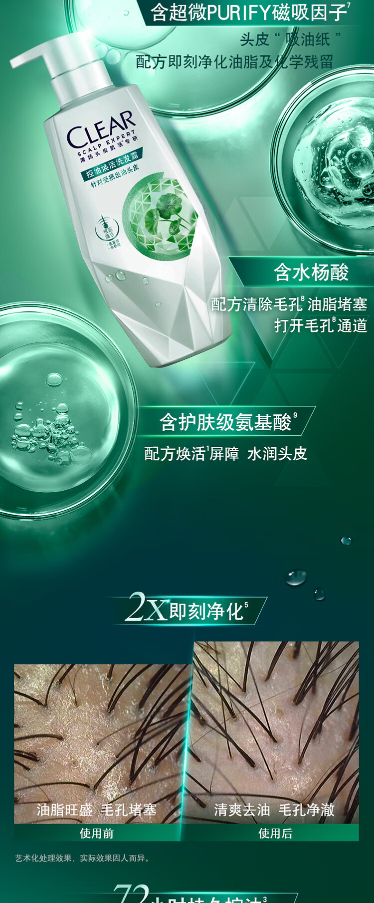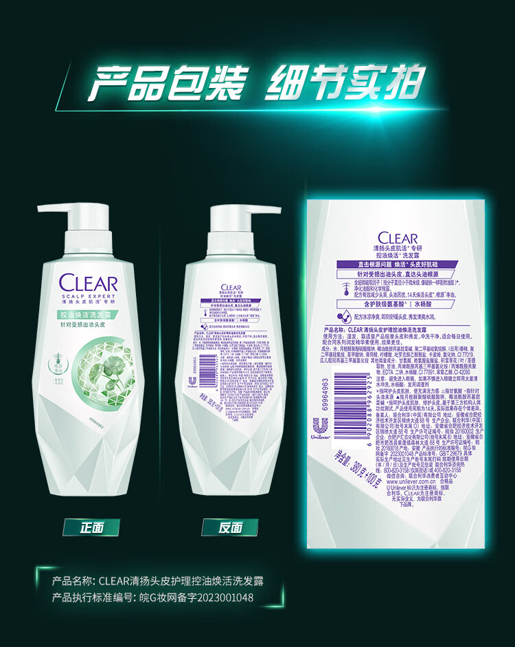 清扬头皮护理控油焕活洗发露480G