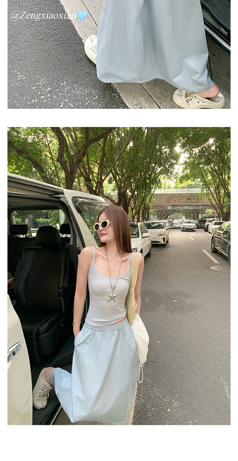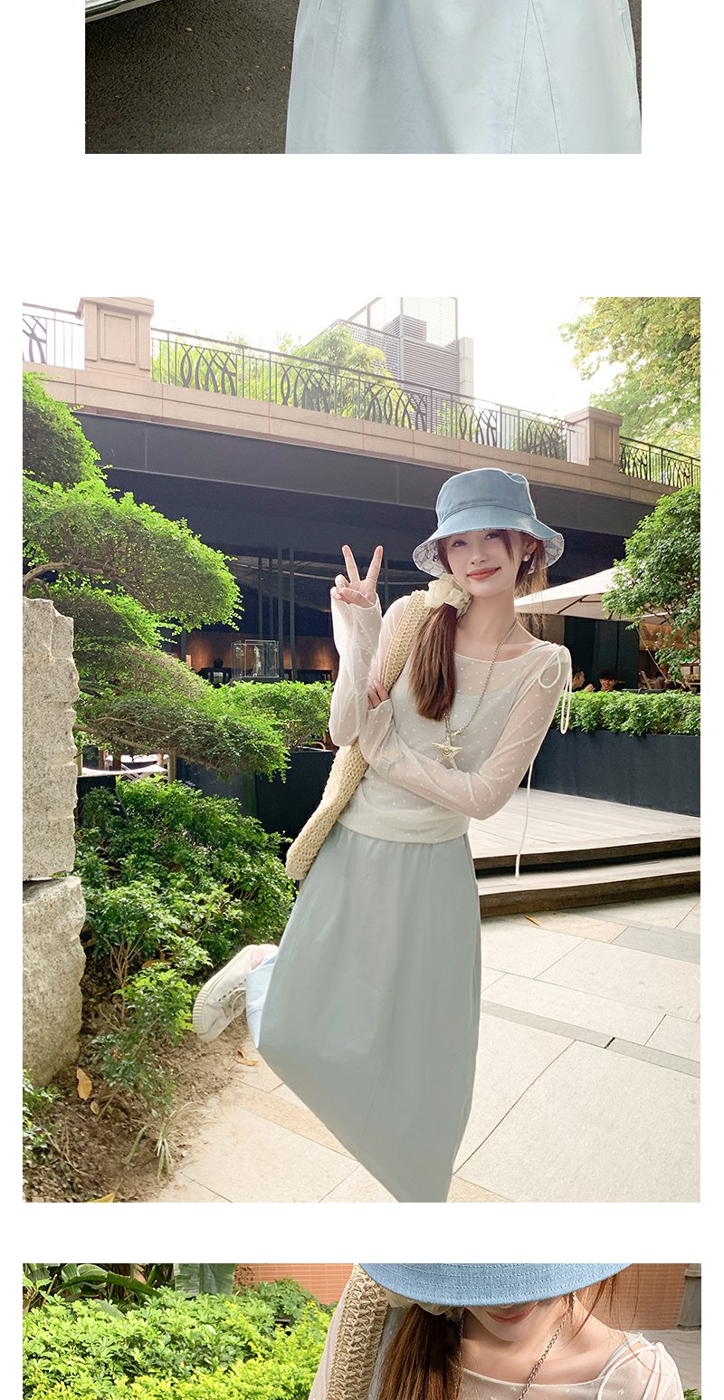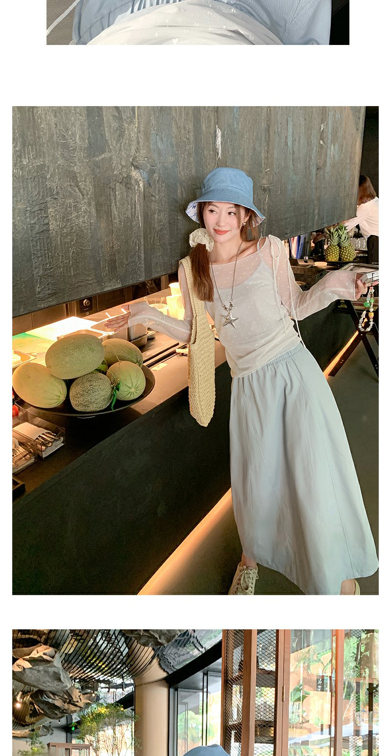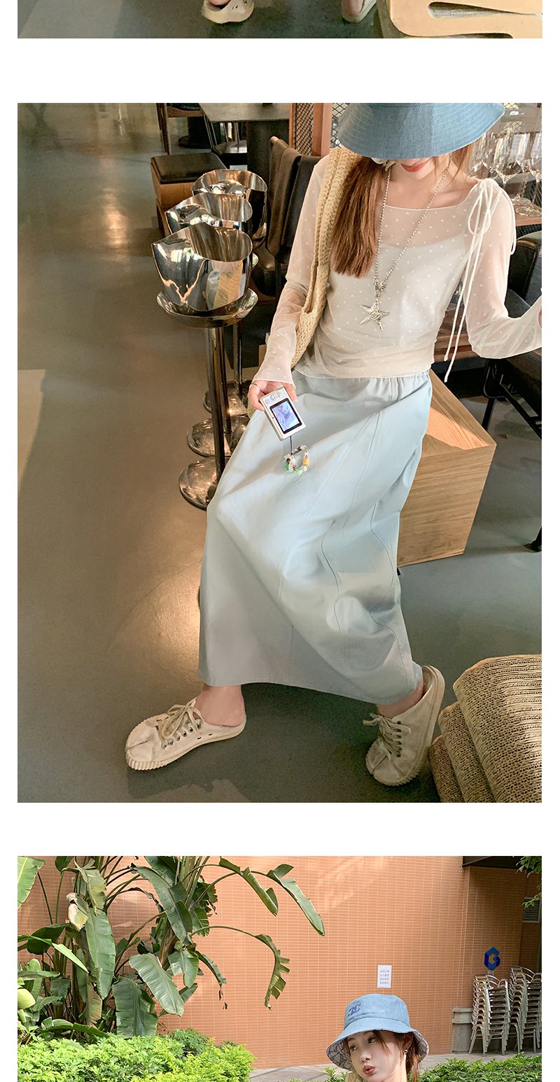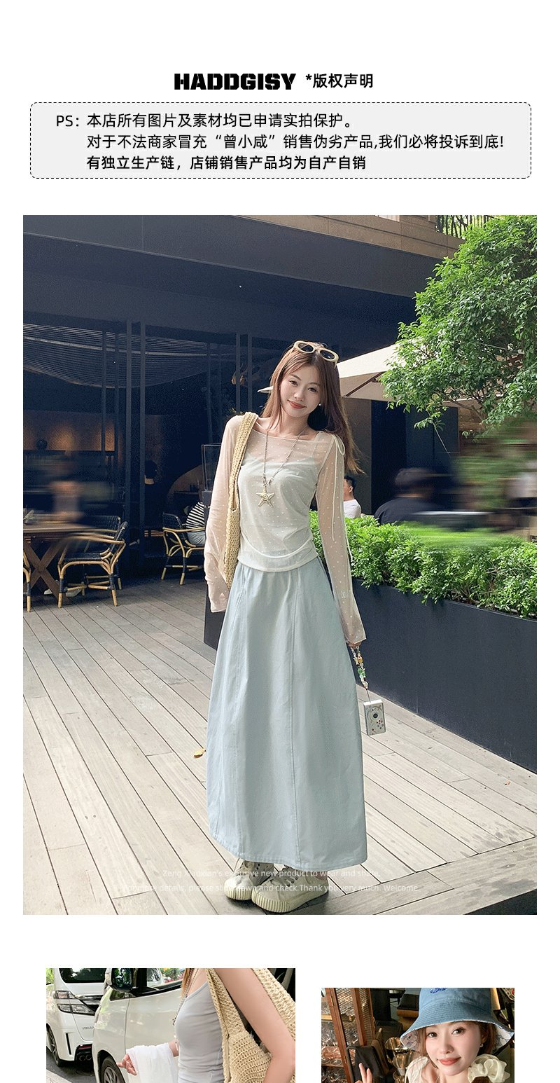 【149元任选2件】现货!韩系温柔蓝色松紧腰宽松A字半身裙or罩衫2件套