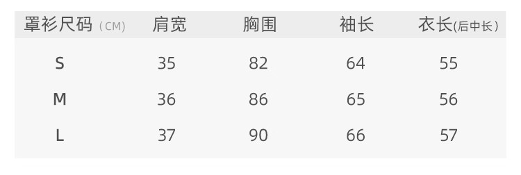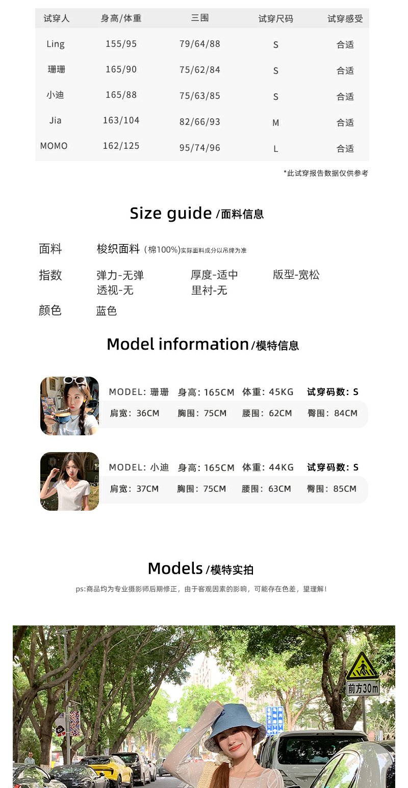 浅蓝(罩衫+背心)尺码: