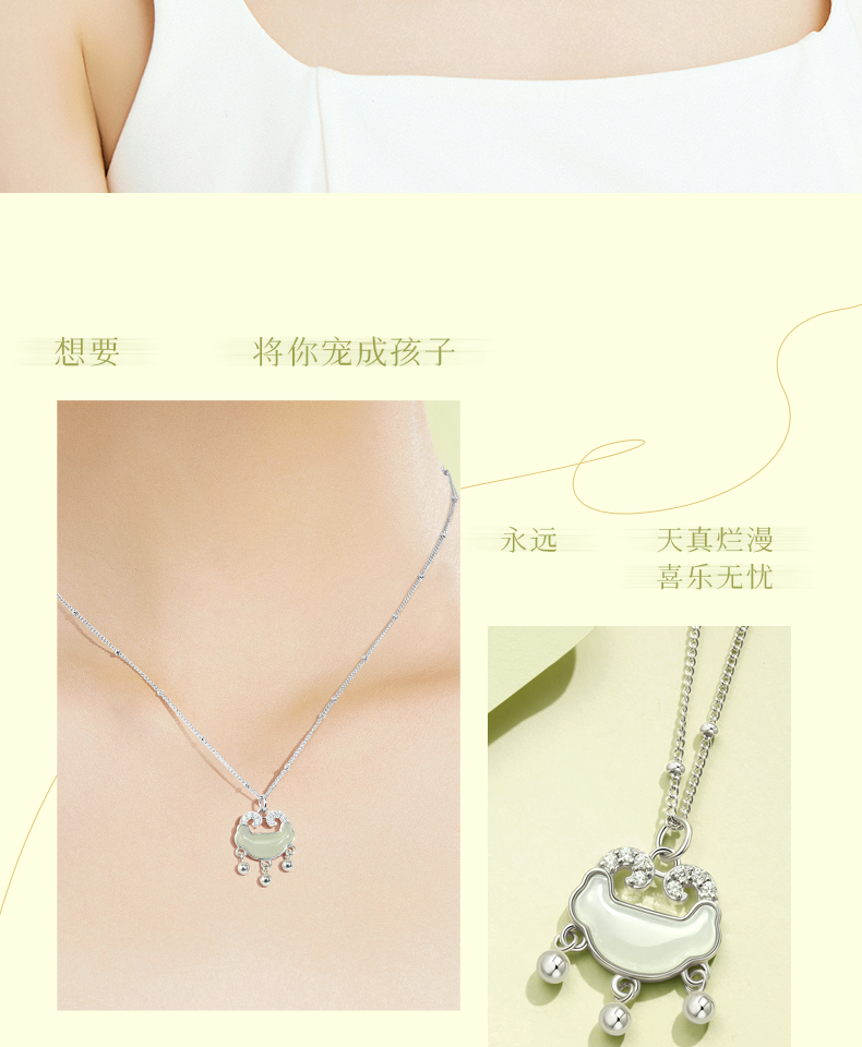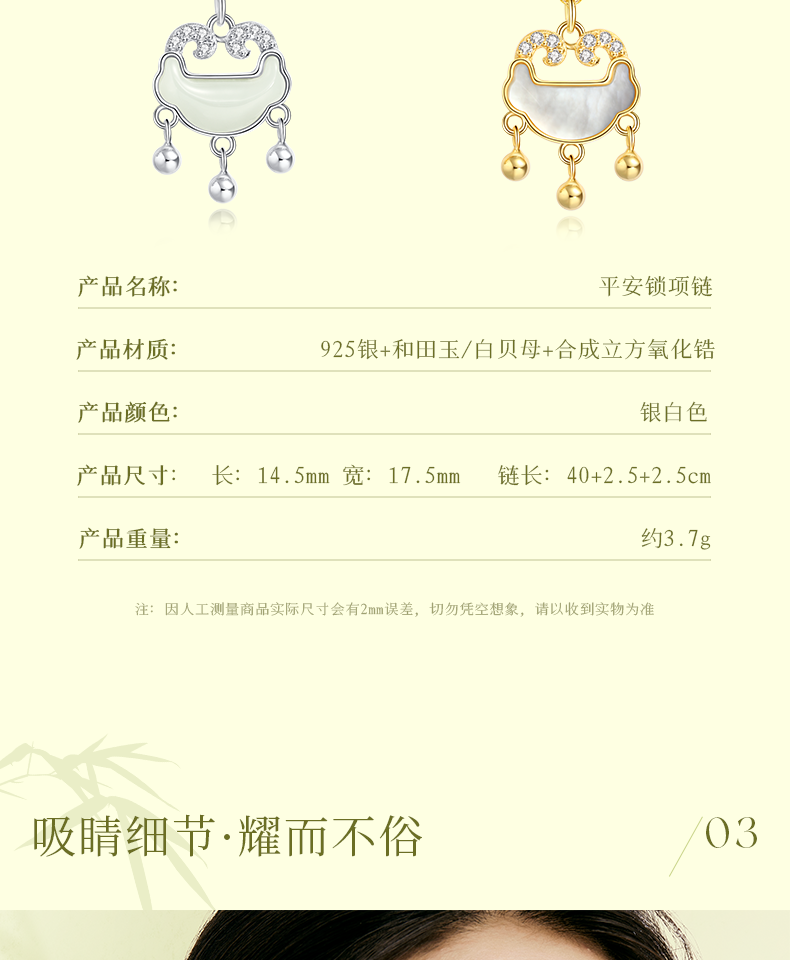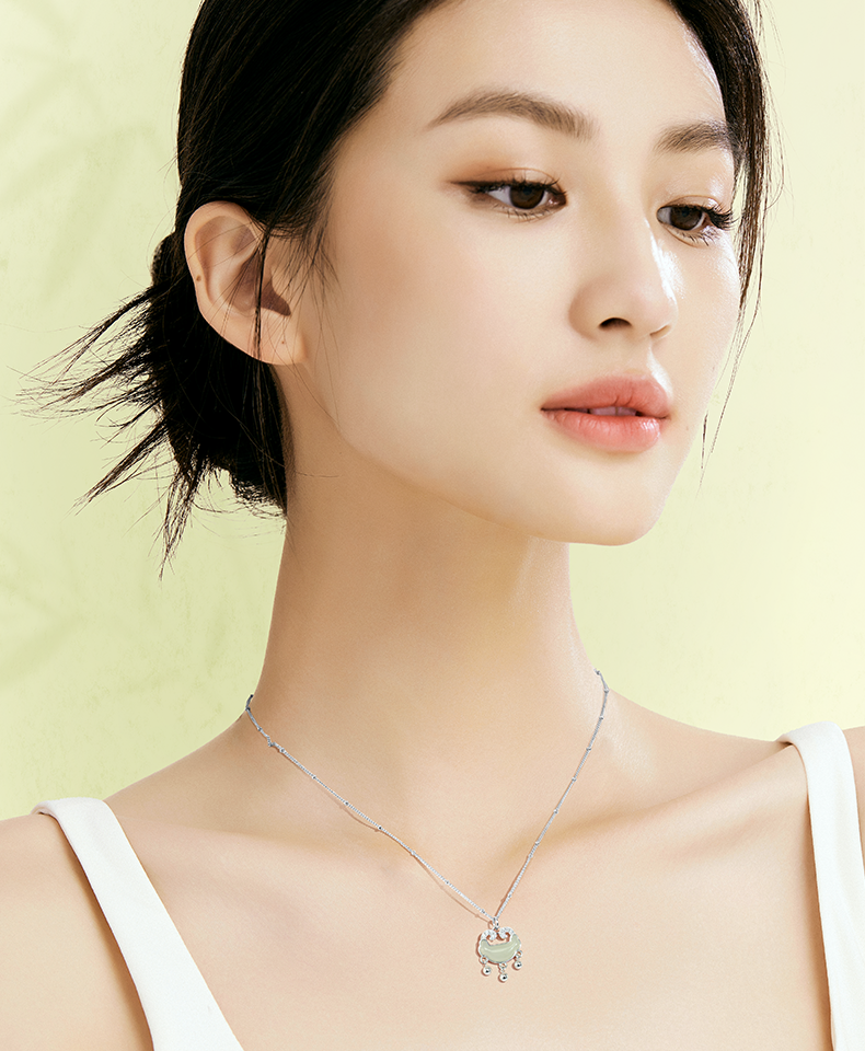 Fanci范琦×宫主平安锁项链女s925银和田玉长命锁小众轻奢高级生日礼物送女友