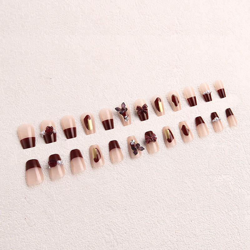 【穿戴式美甲!美甲贴】抖音爆款穿戴甲酒红乌梅子酱山茶花穿戴式指甲片成品美甲