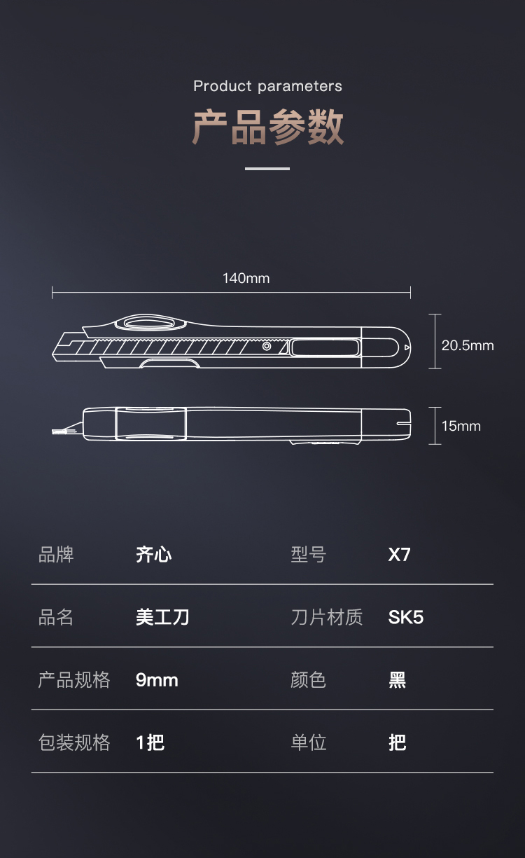 齐心 X7 随心裁美工刀 1把 小号裁纸刀刻刀小刀办公美术手工锋利工具