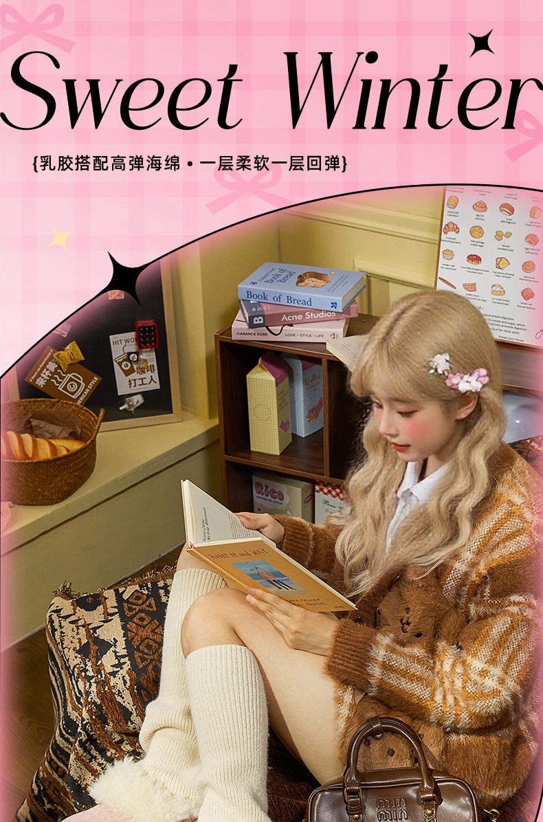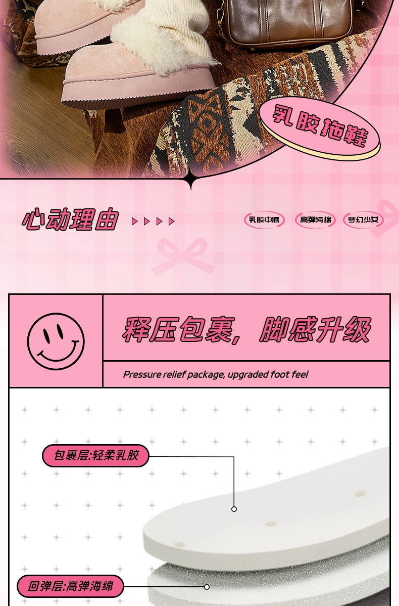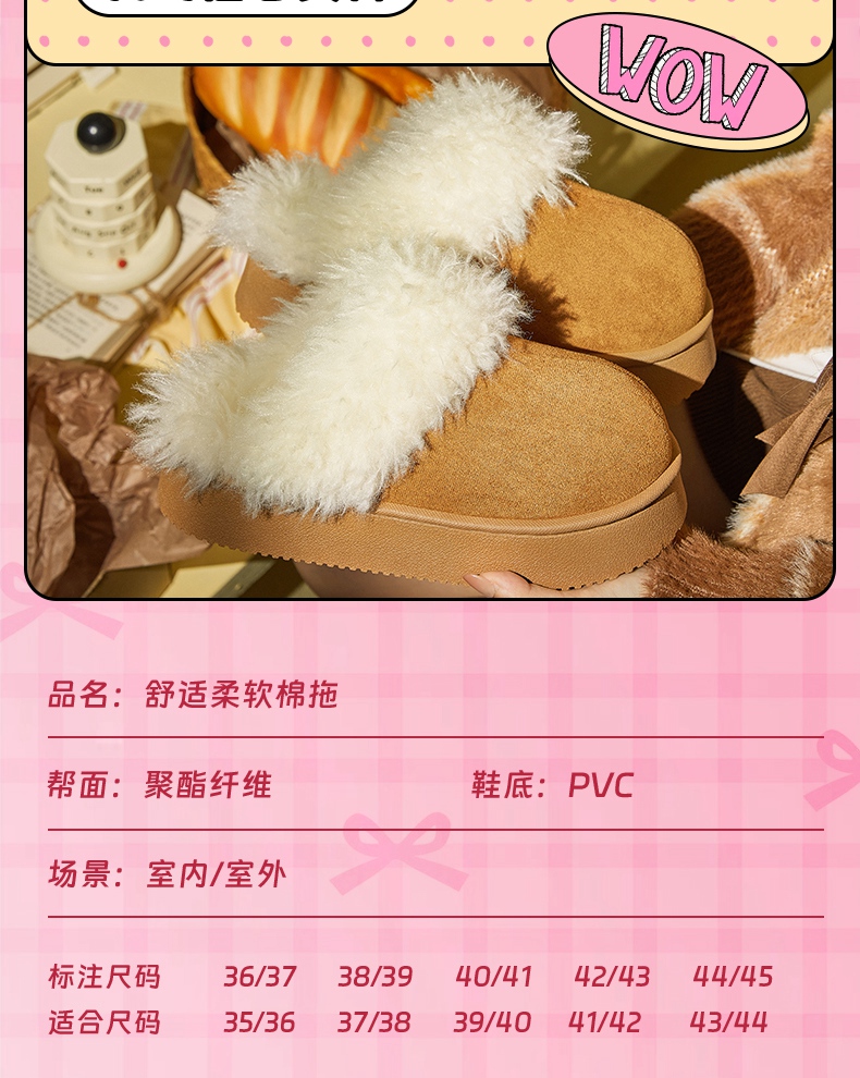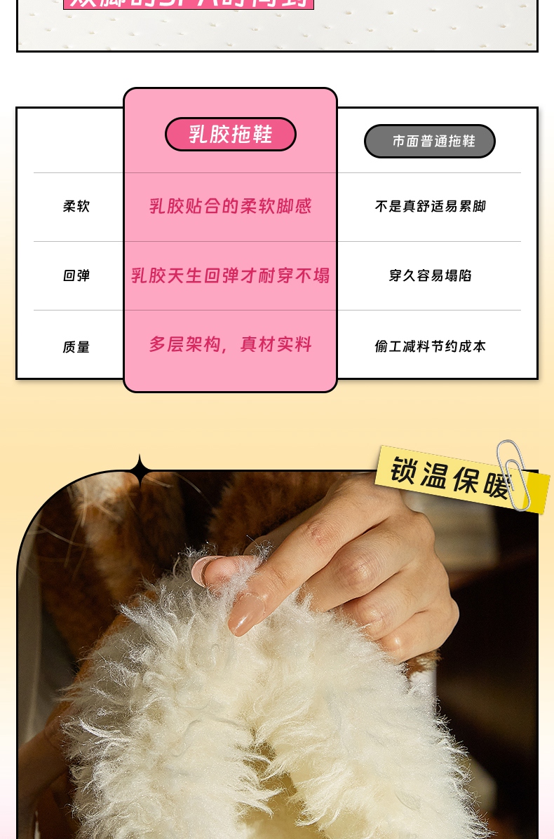 SHEGOTO秋冬新品保暖舒适柔软棉乳胶拖鞋毛毛鞋加绒室内外穿女【福利品】
