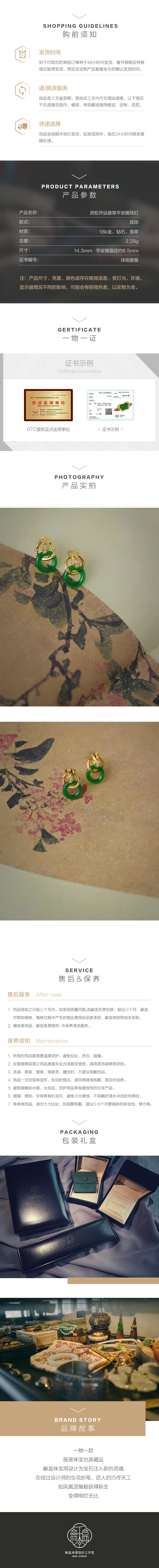 龢盒原创 18k金镶冰绿葫芦翡翠伴钻耳线 耳环
