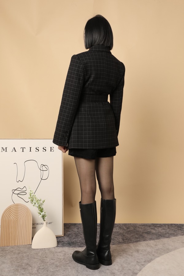 LNNNS 黑蓝格纹收腰西装外套 15514