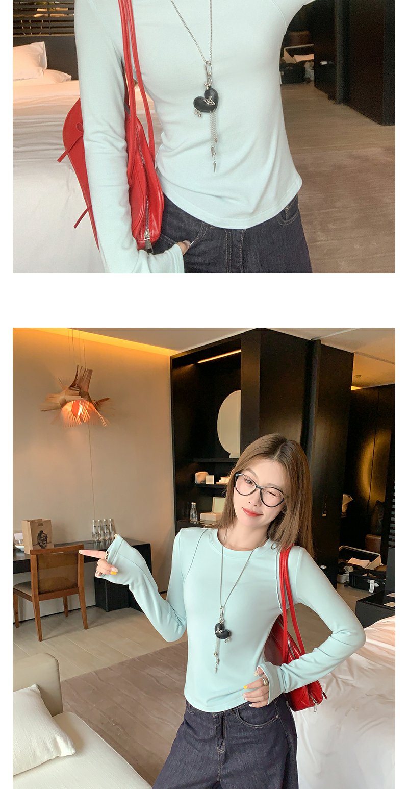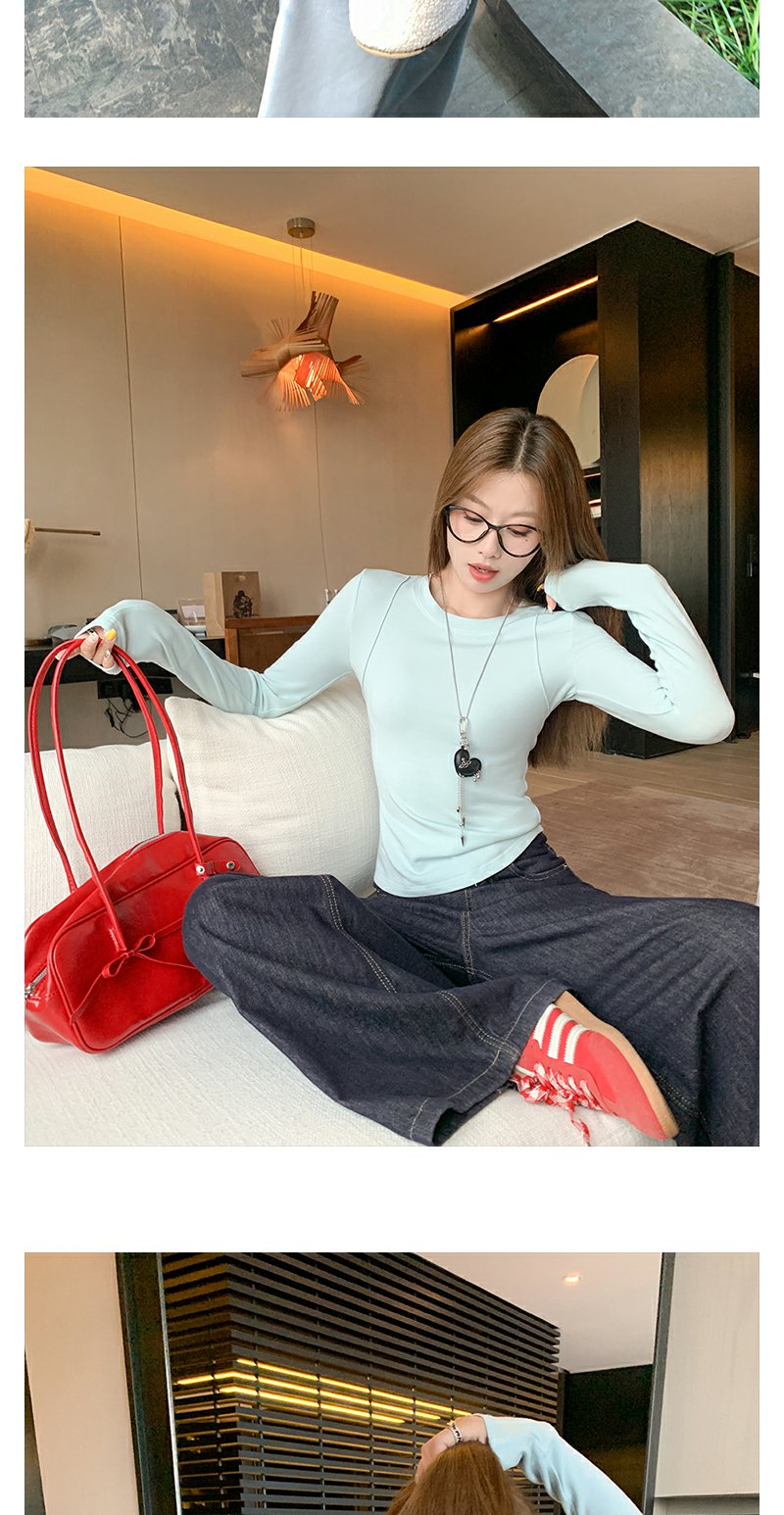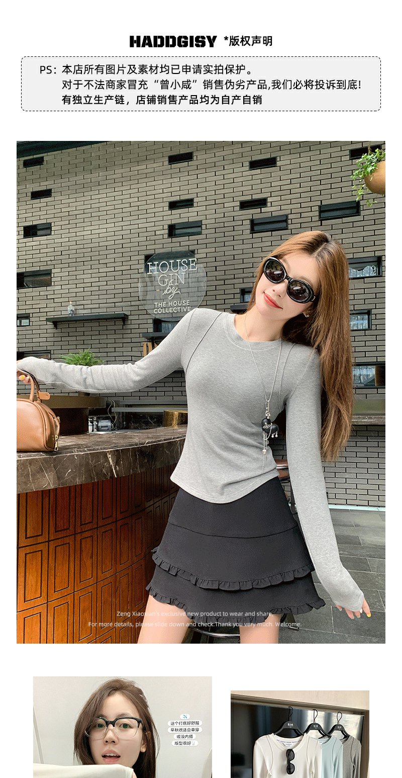 <曾小咸推荐>韩系简约百搭修身女长袖T恤打底