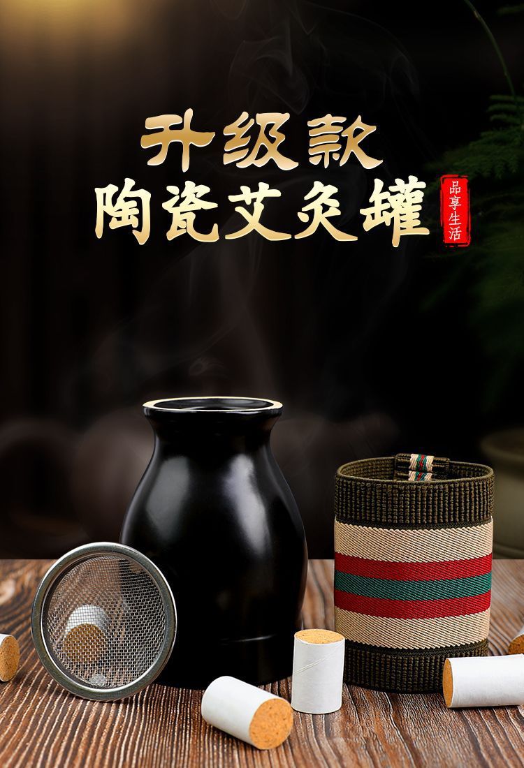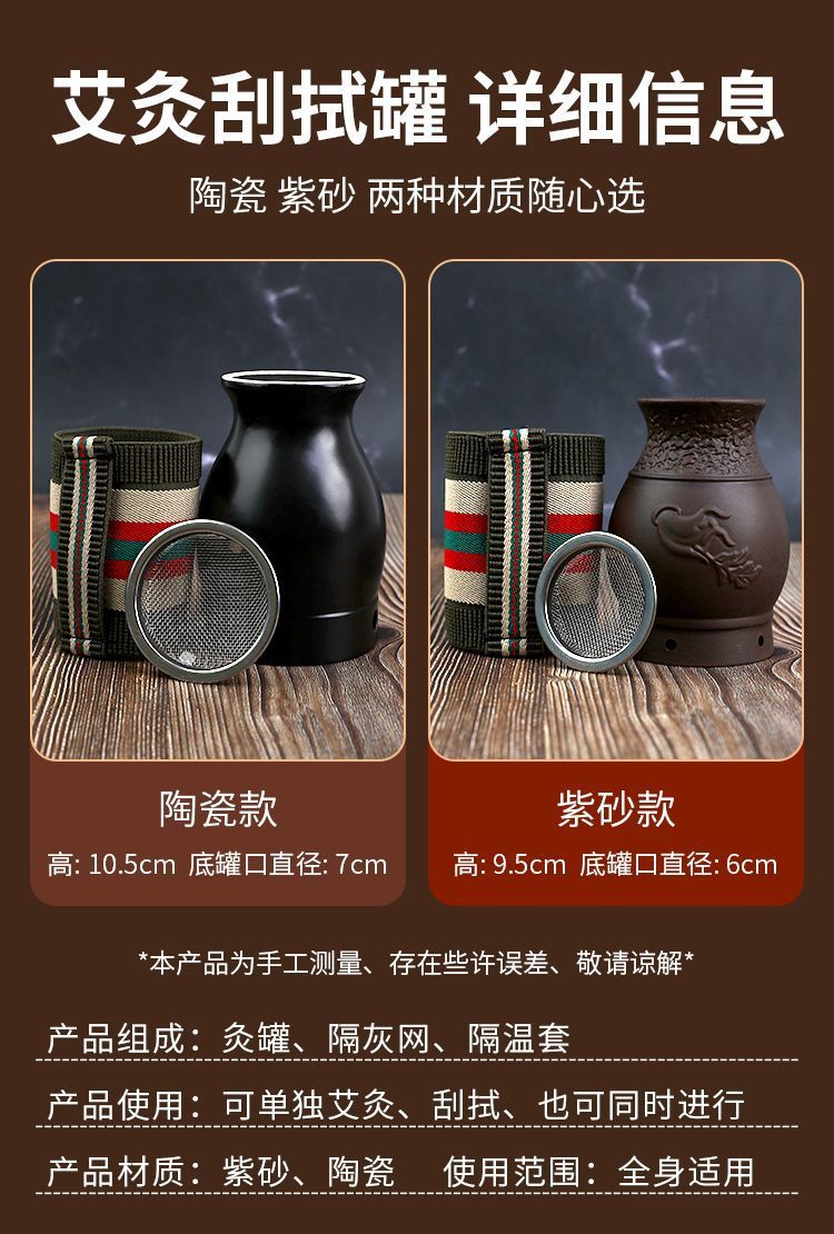 紫砂艾灸罐家用陶瓷罐刮痧多功能随身双层美容院艾灸盒仪器艾柱