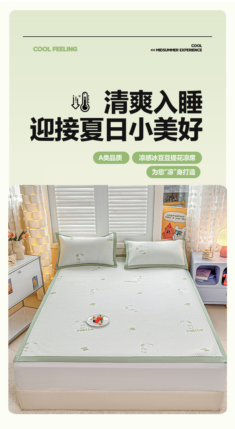 新品【A类母婴品质】凉感裸睡 冰丝豆豆凉席 母婴品质可机洗夏空调软席子