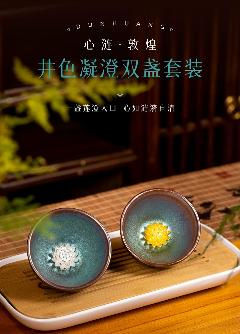 敦煌研究院 心涟·敦煌井色凝澄双盏套装 新款家用茶具套装礼品