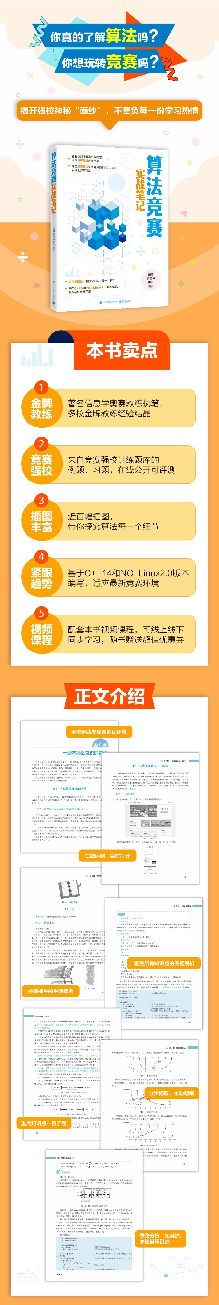 1.**名信息学奥赛教练执笔,多校金*教练经验结晶2.来自竞赛强校训练题库的例题、习题,在线公开可评测3.近百幅插图,带你探究算法每一个细节4.基于C++14和NOI Linux2.0版本编写,紧跟*新竞赛环境5.配套视频课程,赠送*值优惠券