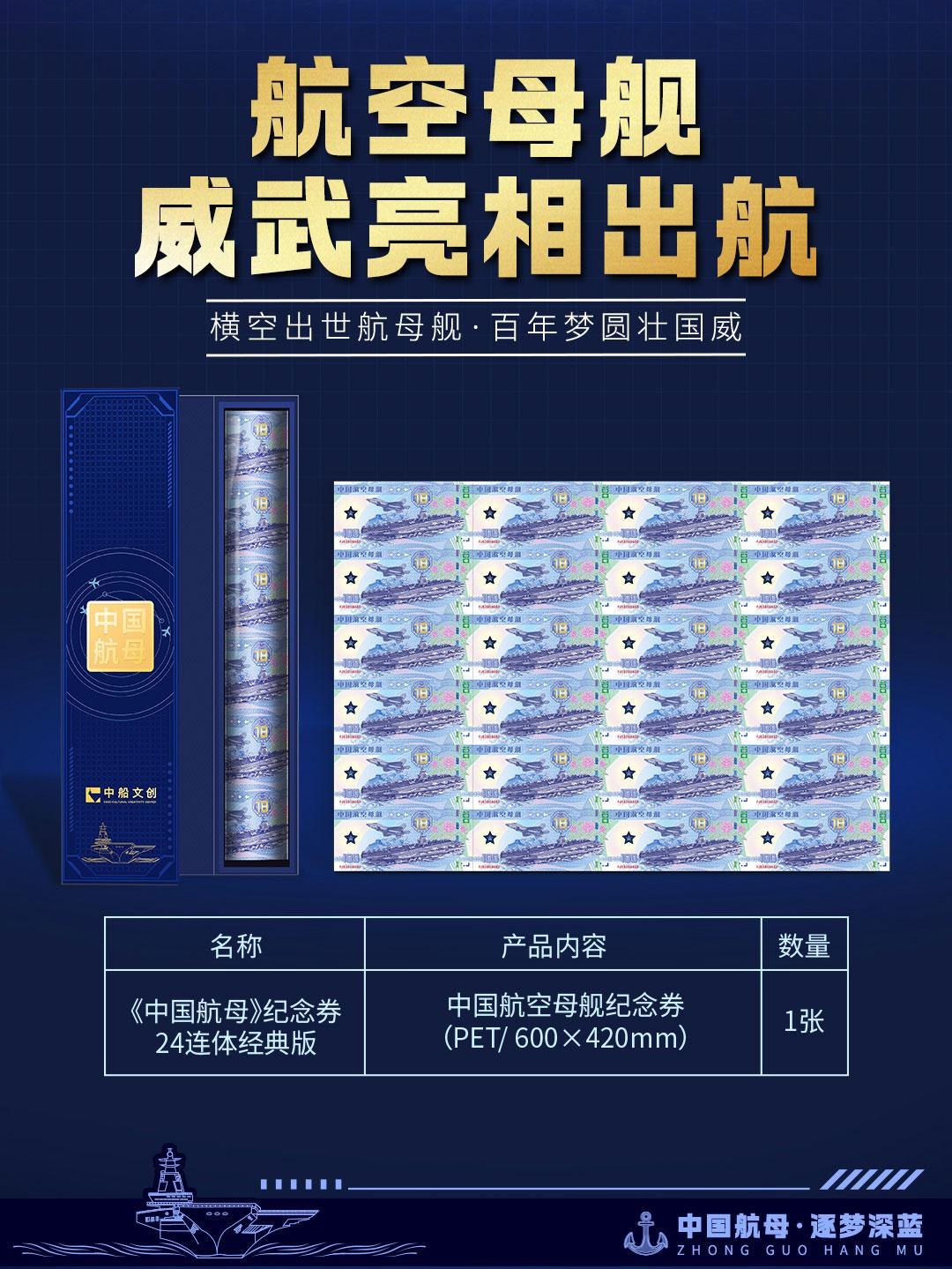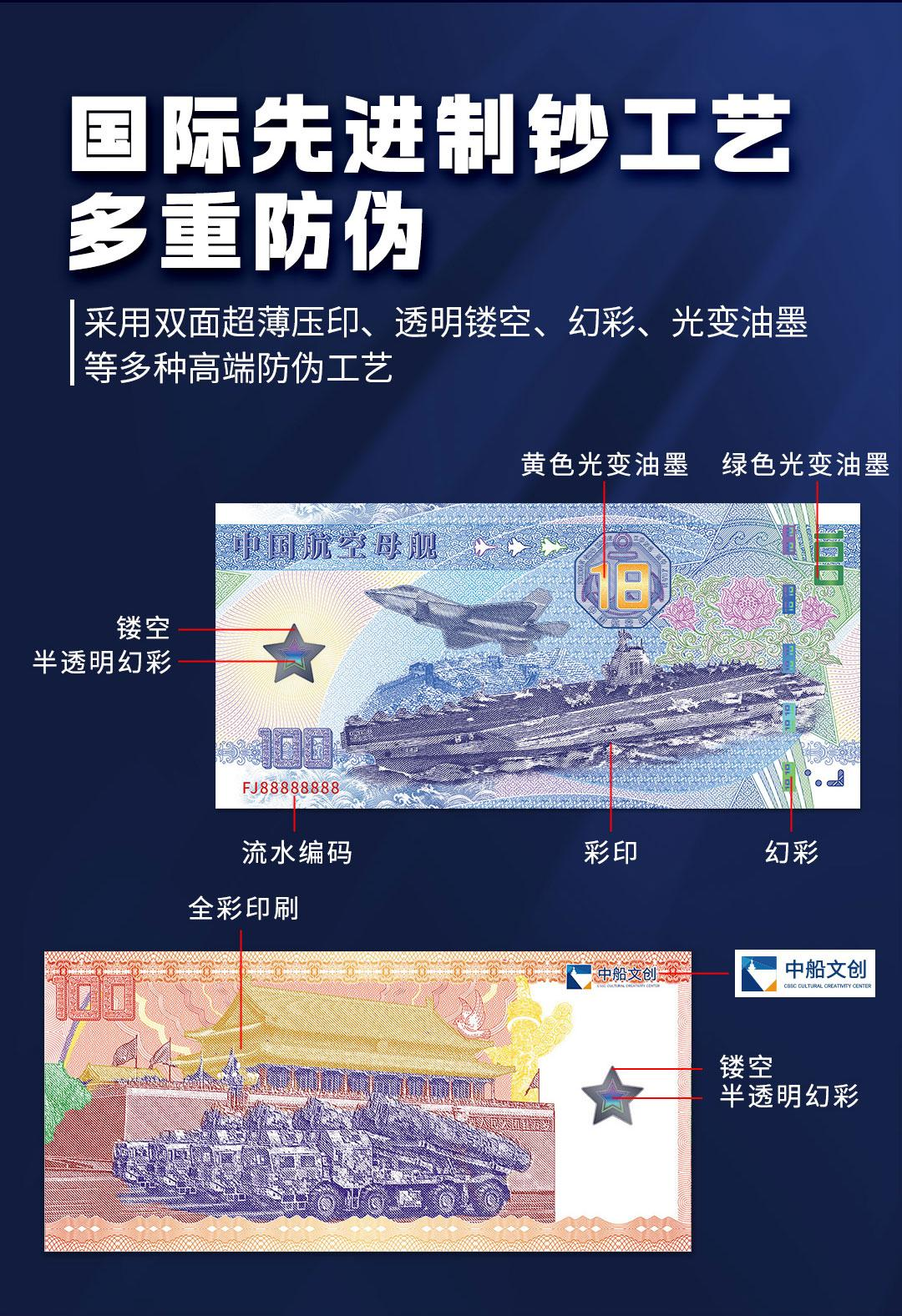 【臻品靓号】中国航母福建舰二十四连体大炮筒荧光纪念钞艺券带礼盒