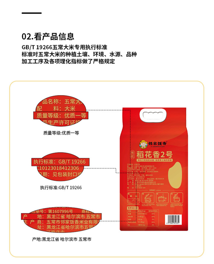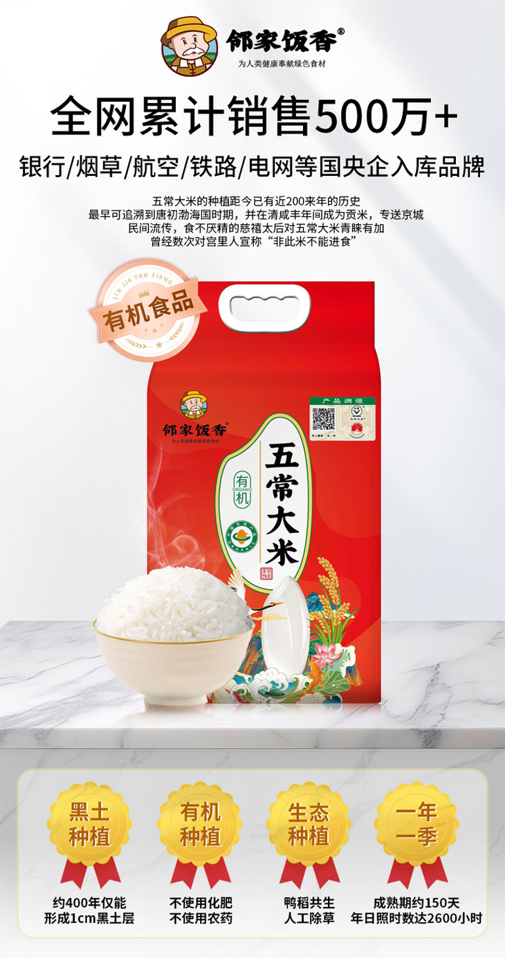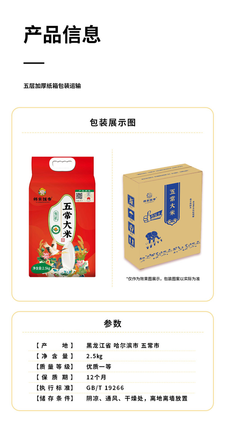 邻家饭香绿色有机五常大米【稻花香2号】