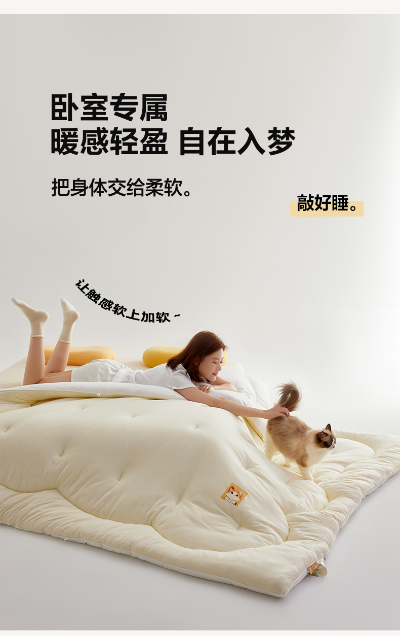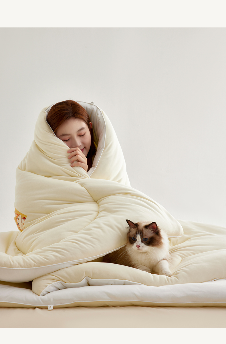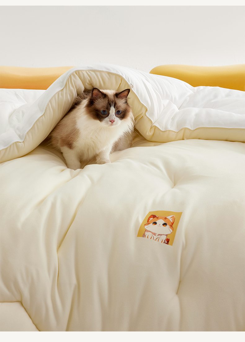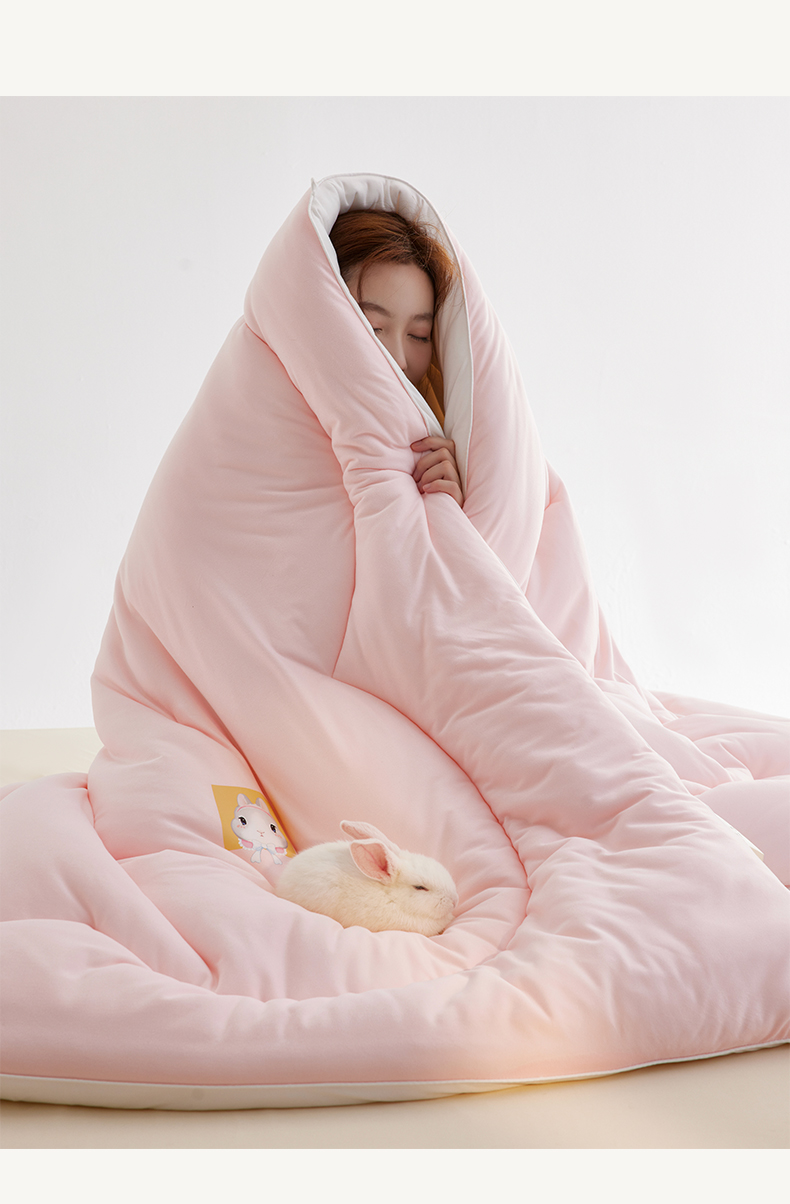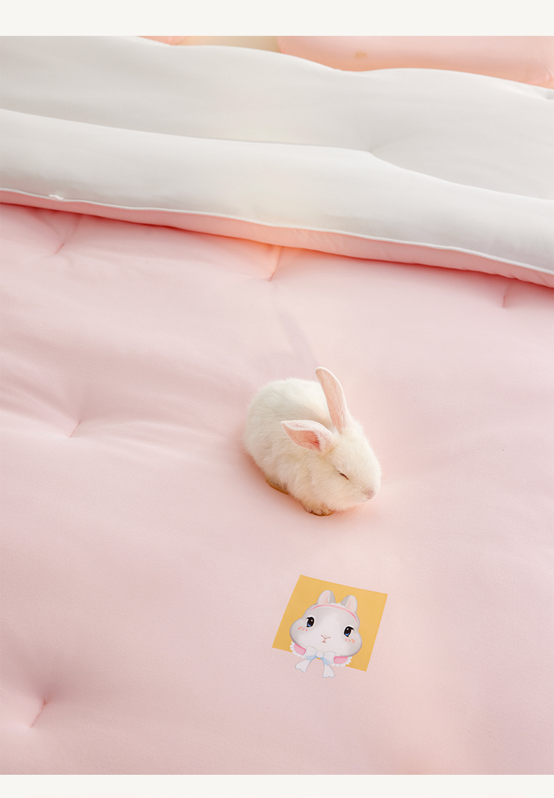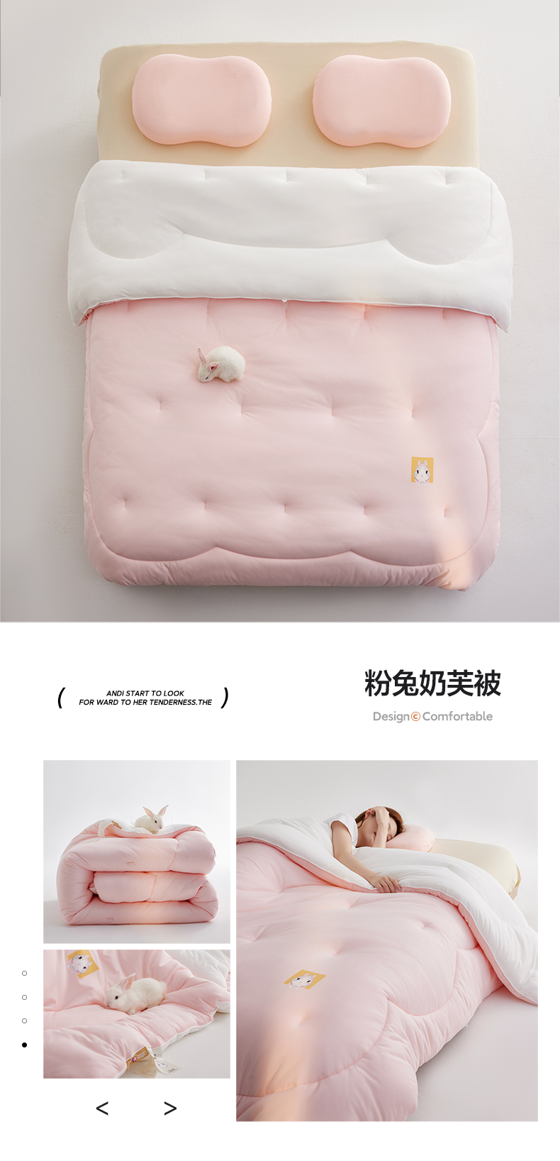 自然醒粉兔奶芙被橘猫贴贴被超柔针织棉抗菌纤维被子春秋被芯加厚冬被TD